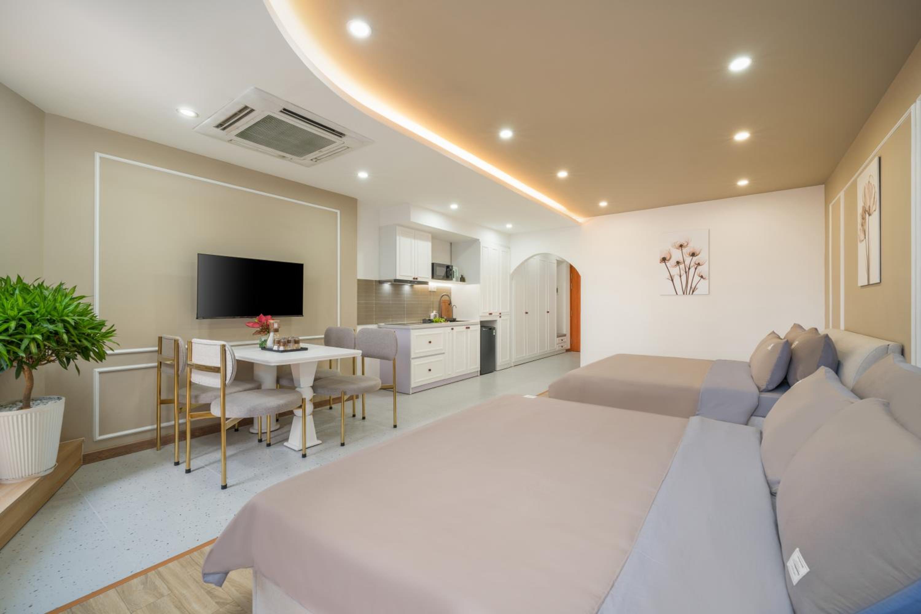 phòng rộng, đủ cho 1 gia đình lưu trú tầm 1 tuần hoặc hơn. wc chia khu khô và ướt rõ ràng. staff thân thiện, nhiệt tình