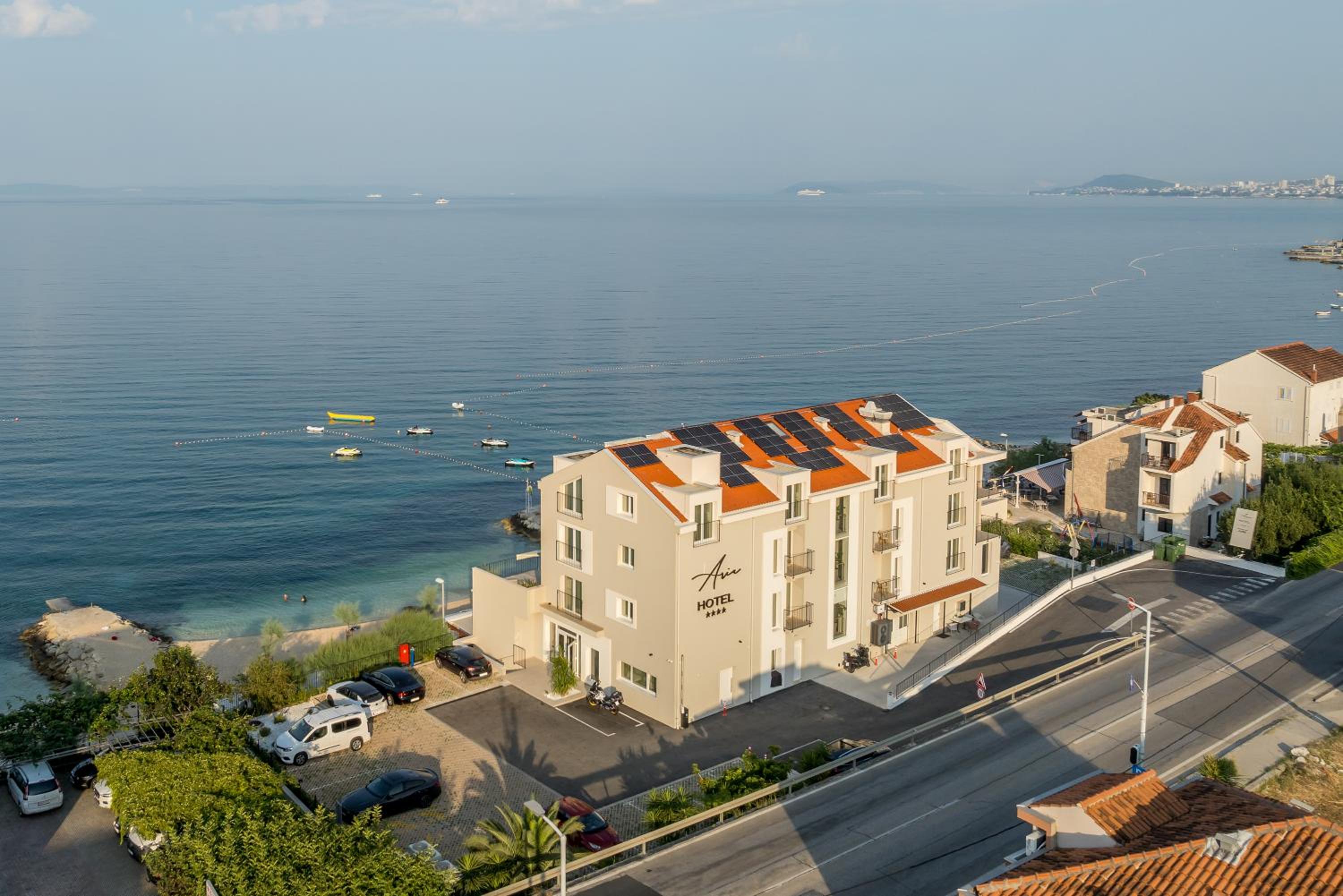 Hotel na samoj obali. Odlican restoran. Ispred hotela je setaliste uz more,mir i uzivanje. Do Splita ste za 10minuta, Ako se uzelite gradske vreve, ljudi i guzve.
