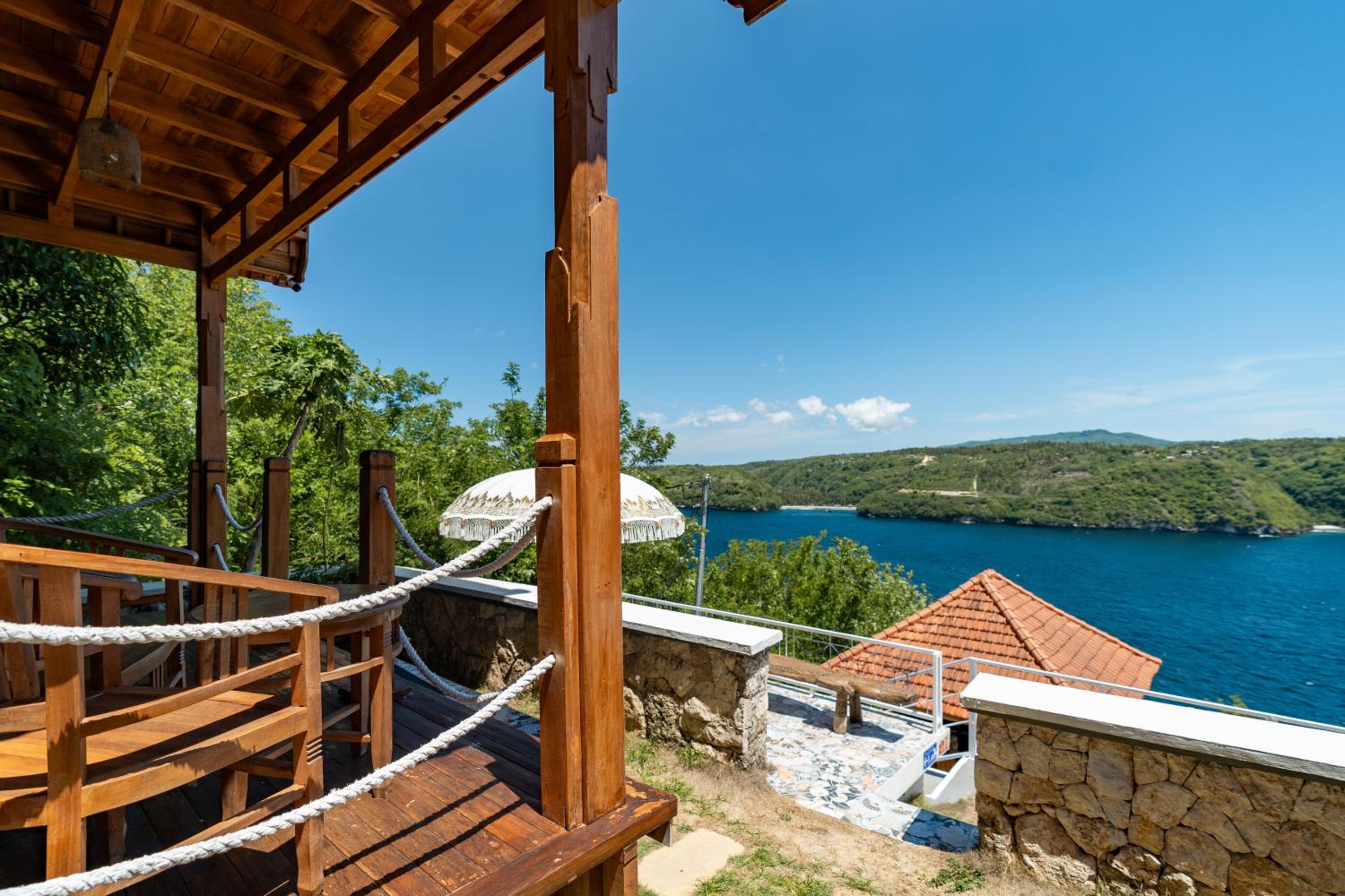 Very friendly staff, helped us arrange a pickup, snorkling, scooter... very helpful and convenient. Offer great food and bar with nice music available. The villa is off the beaten track on the quiet part of Ceningan, exactly what we wanted. Beautiful sunrise and view from our unit towards Penida.