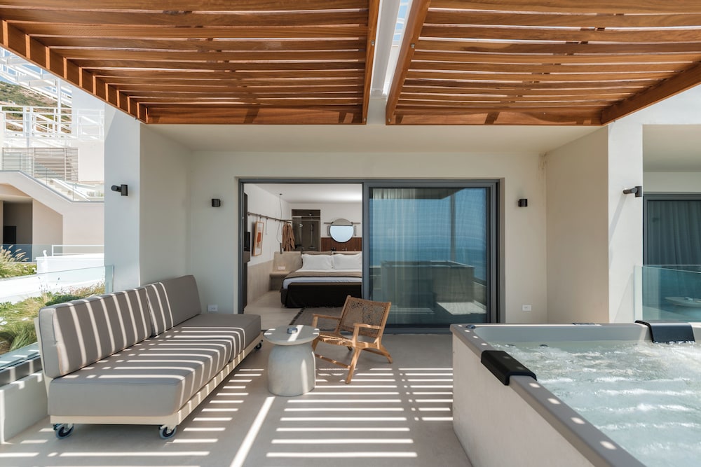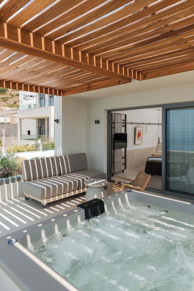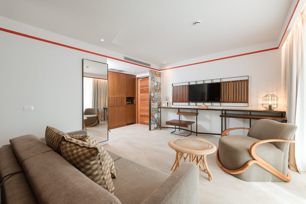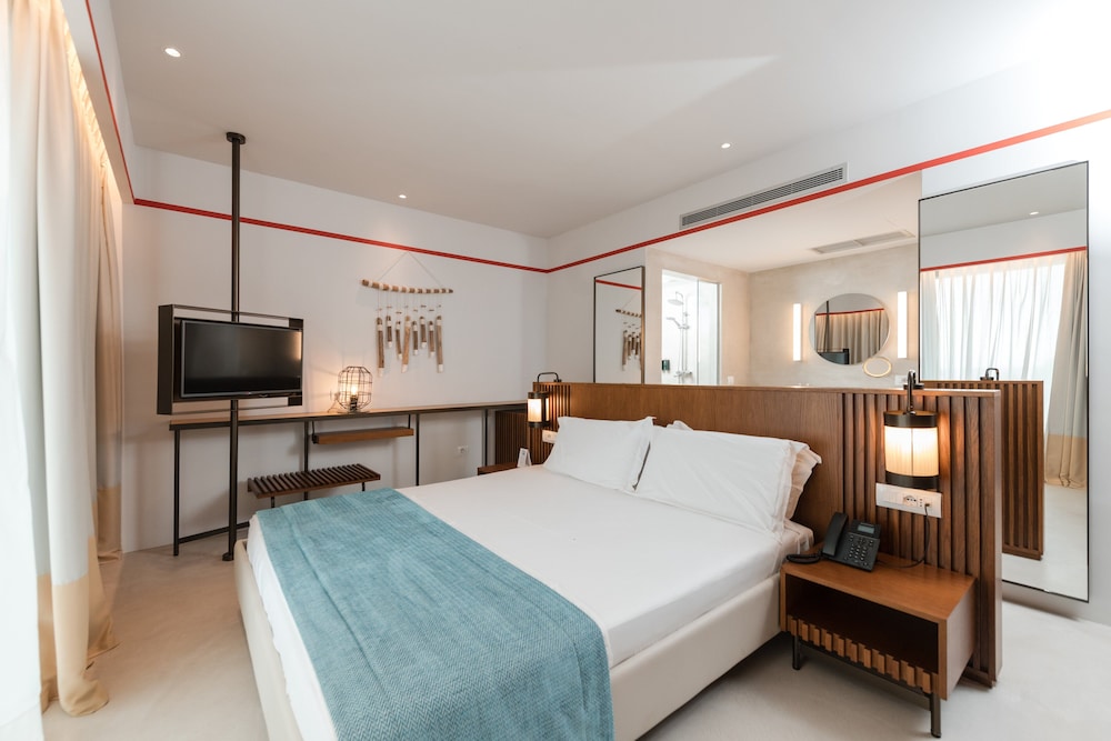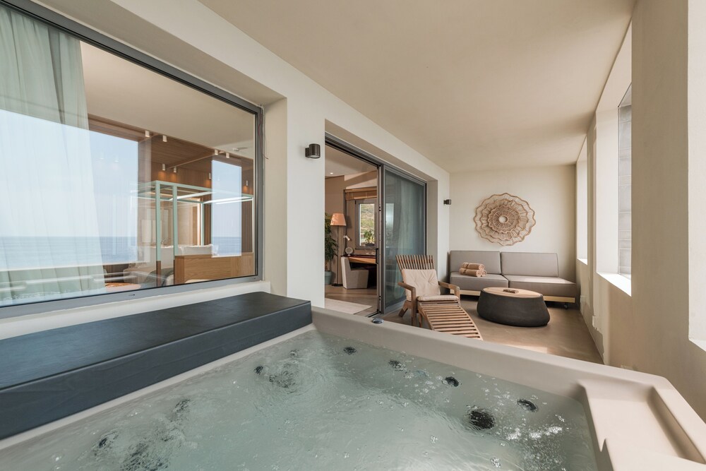 The hotel is a new concept, very modern. The facilities are great, with direct private beach access, a pool, and three small jacuzzis. There is a large restaurant area and a bar zone.