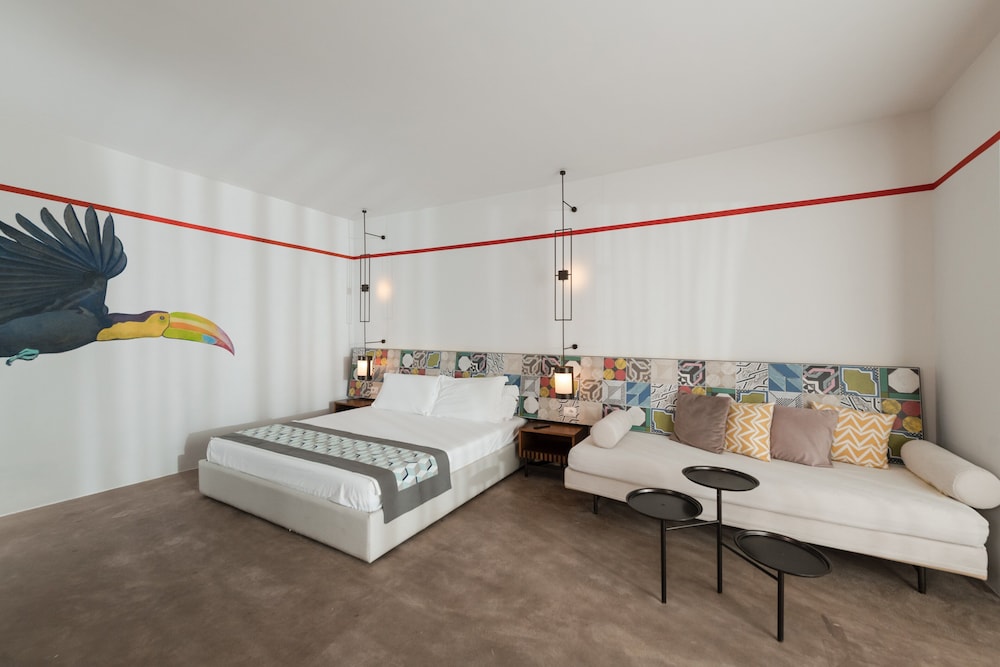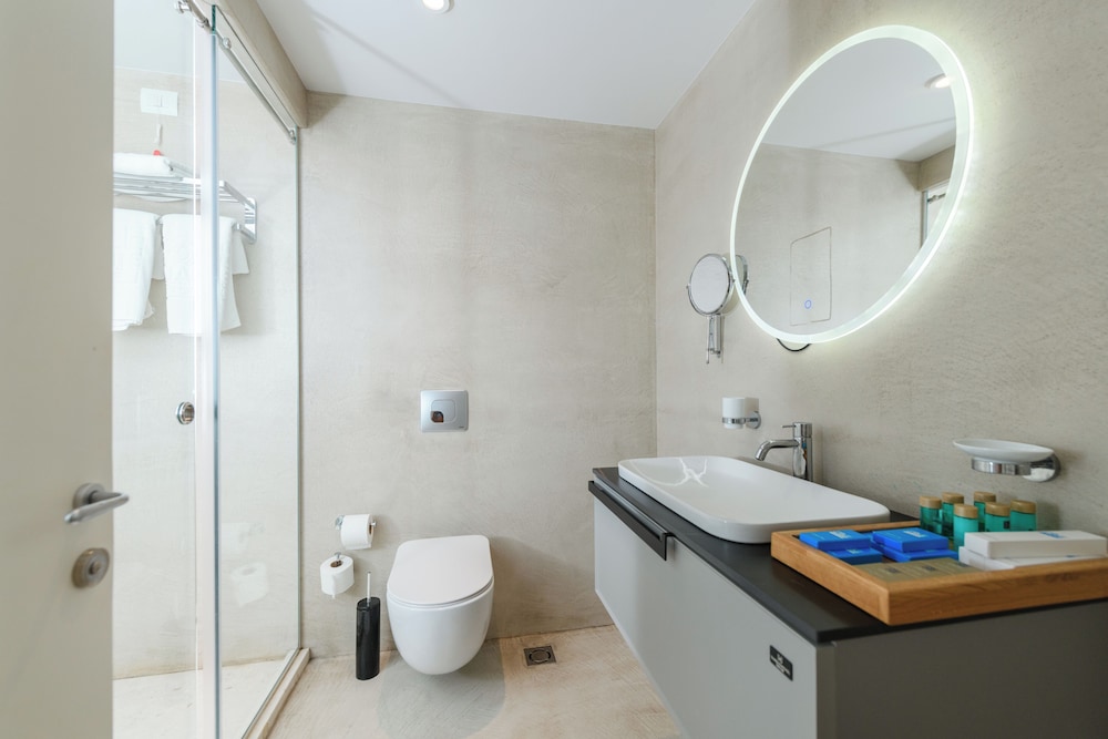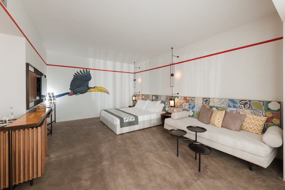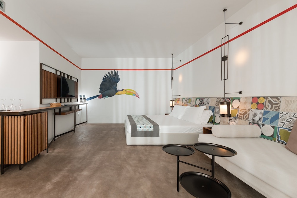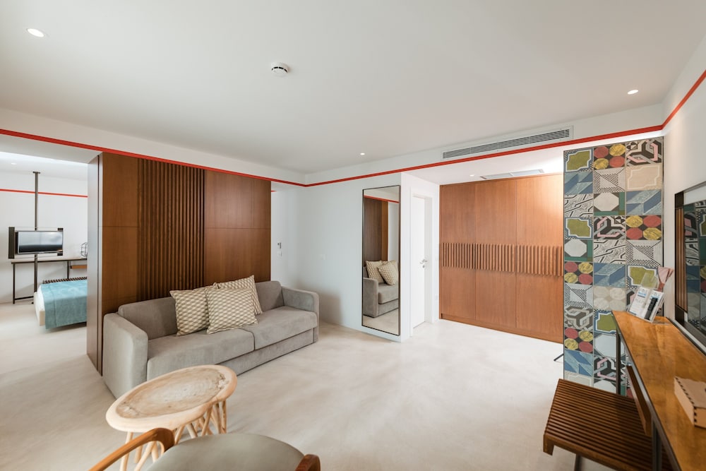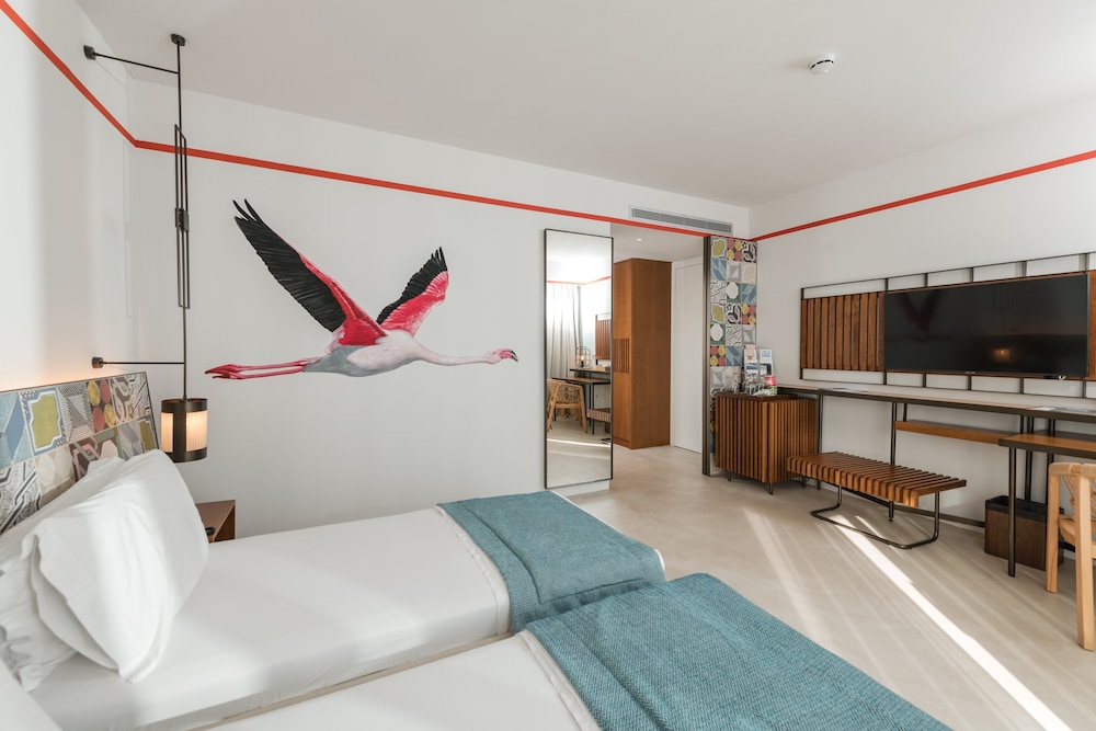 The hotel is a new concept, very modern. The facilities are great, with direct private beach access, a pool, and three small jacuzzis. There is a large restaurant area and a bar zone.