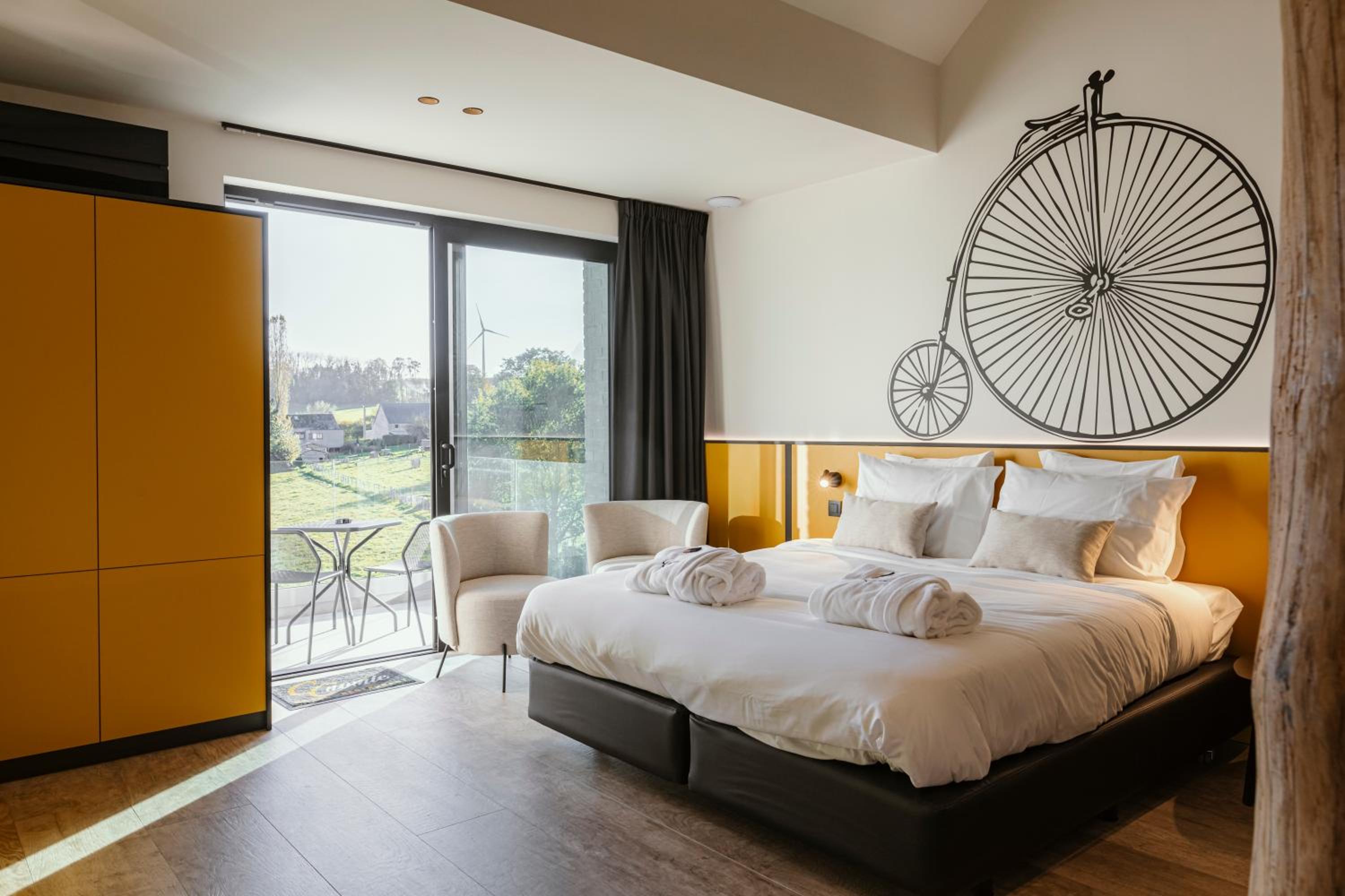 Très belle surprise que ce magnifique établissement familial perdu au milieu de nulle part mais qui transpire la passion pour le métier : tout ici est fait pour mettre les hôtes à l’aise de la première à la dernière minute. Early check-in, accès facile et parking avec borne de recharge : l’arrivée est déjà tout un programme. Nous avons profité de la chambre « Cyclo », hommage au grand oncle qui ouvrit jadis le tout premier musée dédié à la petite reine. On est clairement dans le haut standing : literie quatre étoiles, balcon plein Sud, minibar et immense jacuzzi. Calme total et confort absolu. Un détour par le restaurant s’impose en guise de cerise sur le gâteau. C’est bien simple : on a déjà réservé notre prochain week-end et on a déjà hâte d’y retourner.