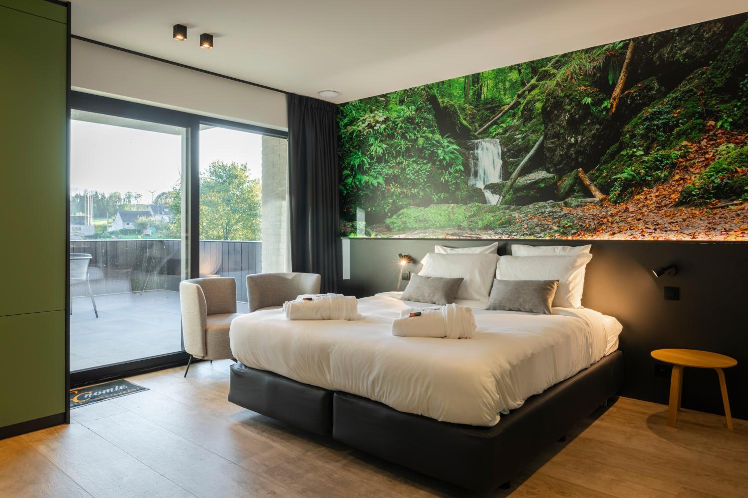Zeer mooie suite met jacuzzi en terras. Perfecte locatie voor een mooie wandeling naar de maasvallei en de rotsen van Freyer. Het restaurant is top en de service uitstekend. Heel gemoedelijk en super vriendelijk personeel en uitbaters. Een absolute aanrader!