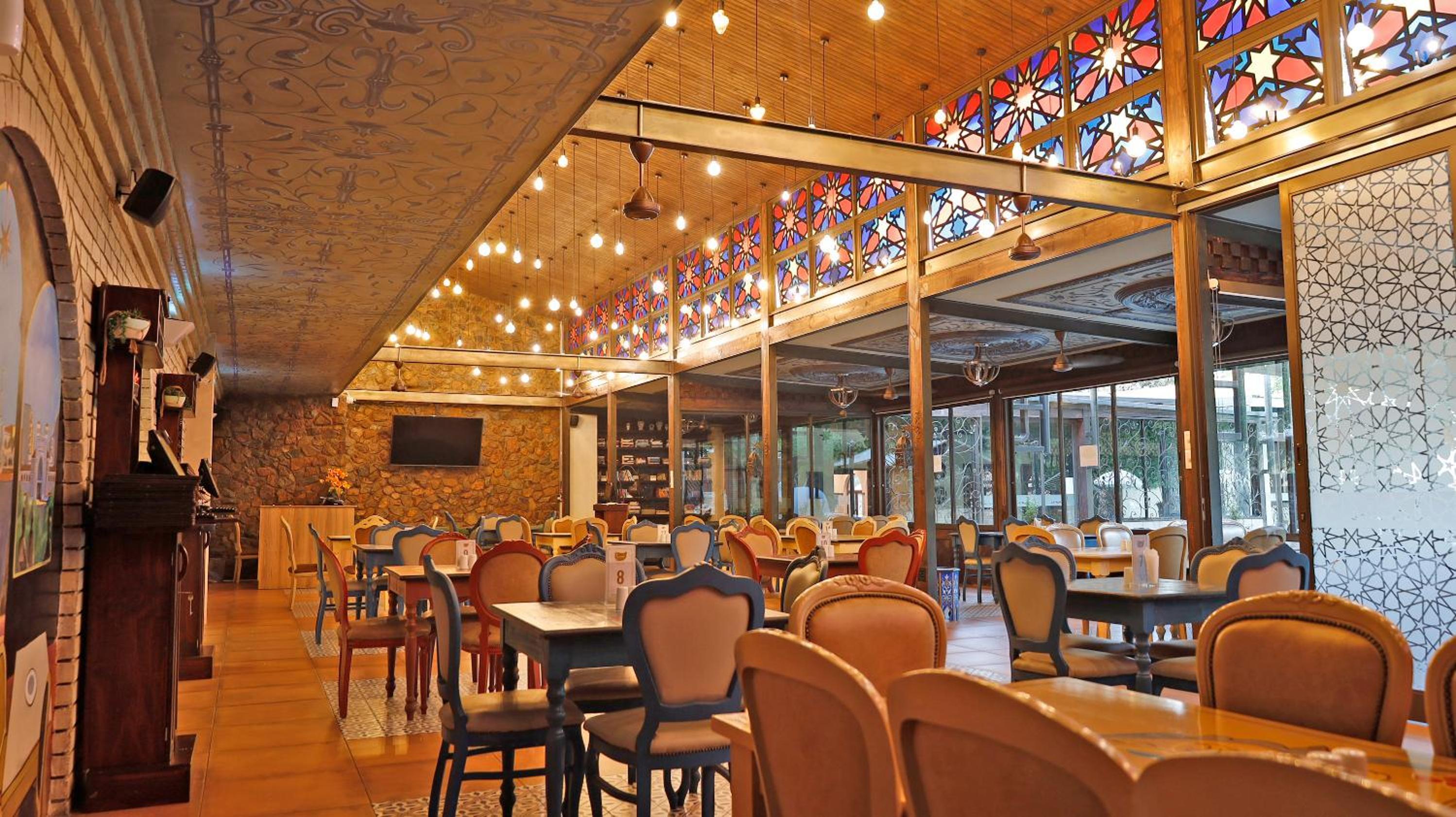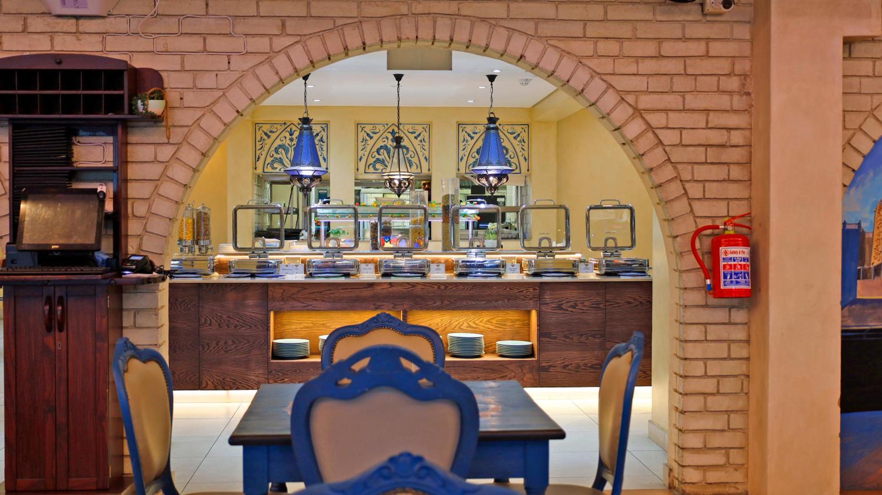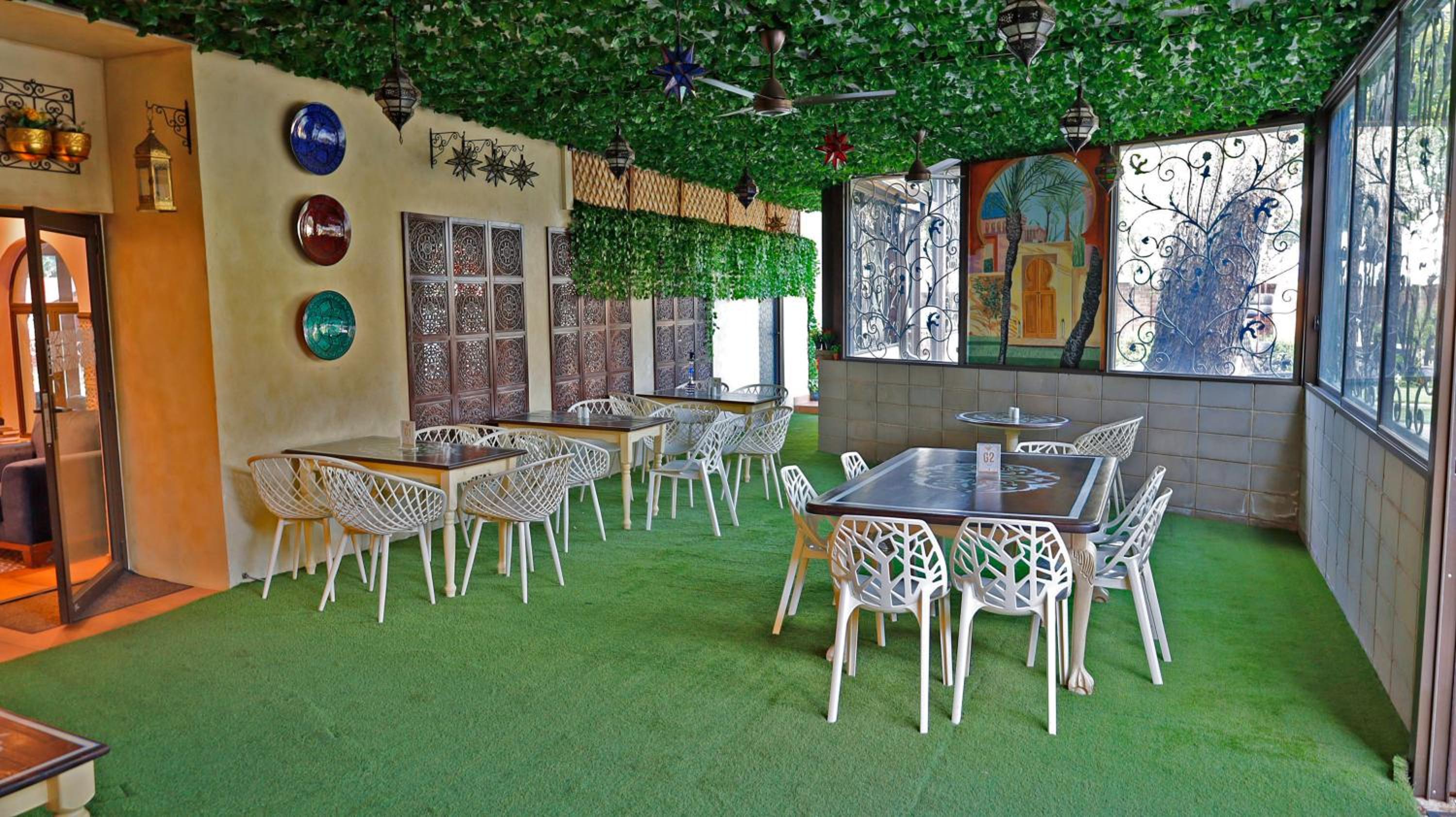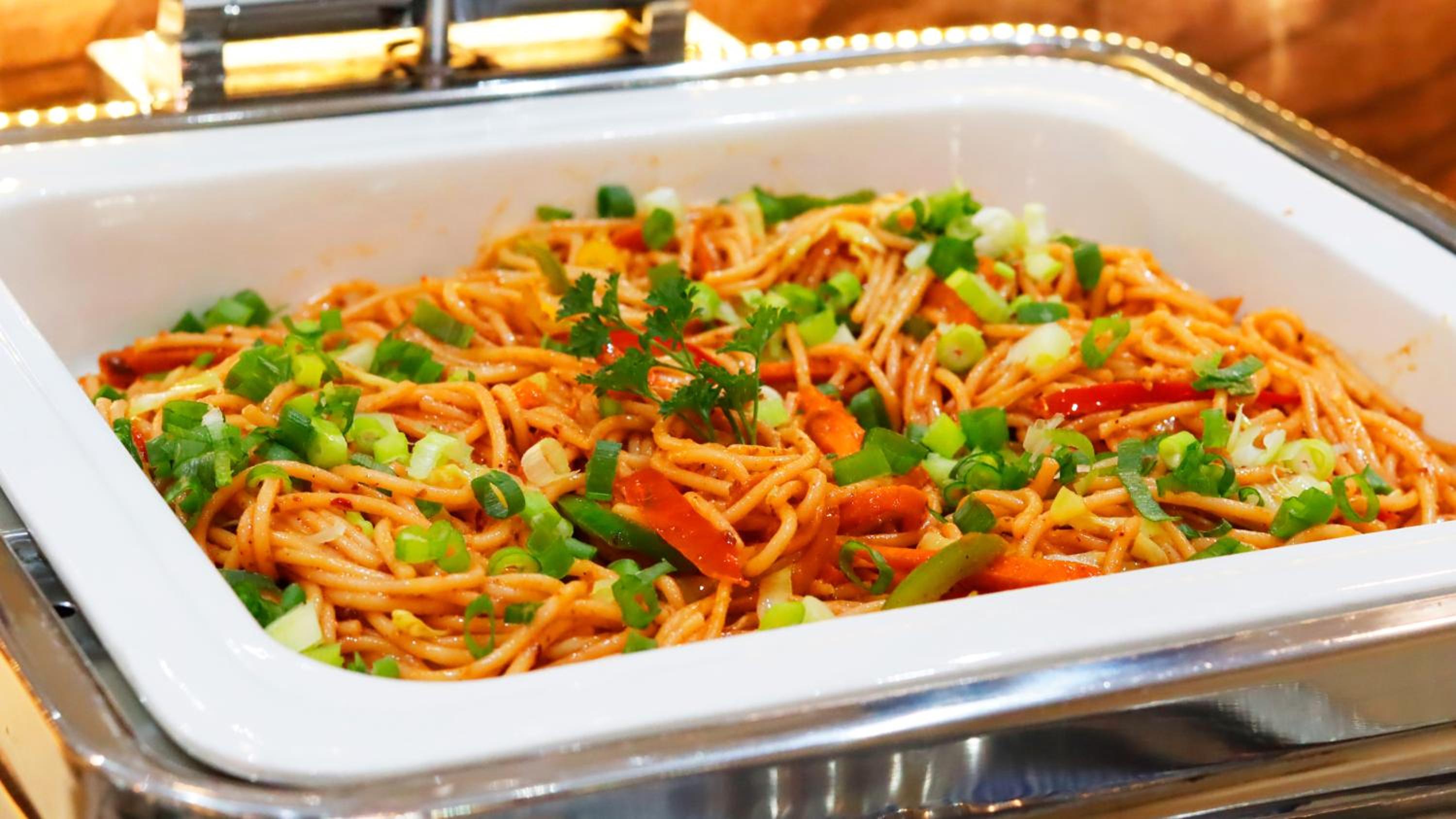 Guests can enjoy a variety of cuisine options, including Indian, Middle Eastern, and Moroccan dishes, with a halal option available upon request.