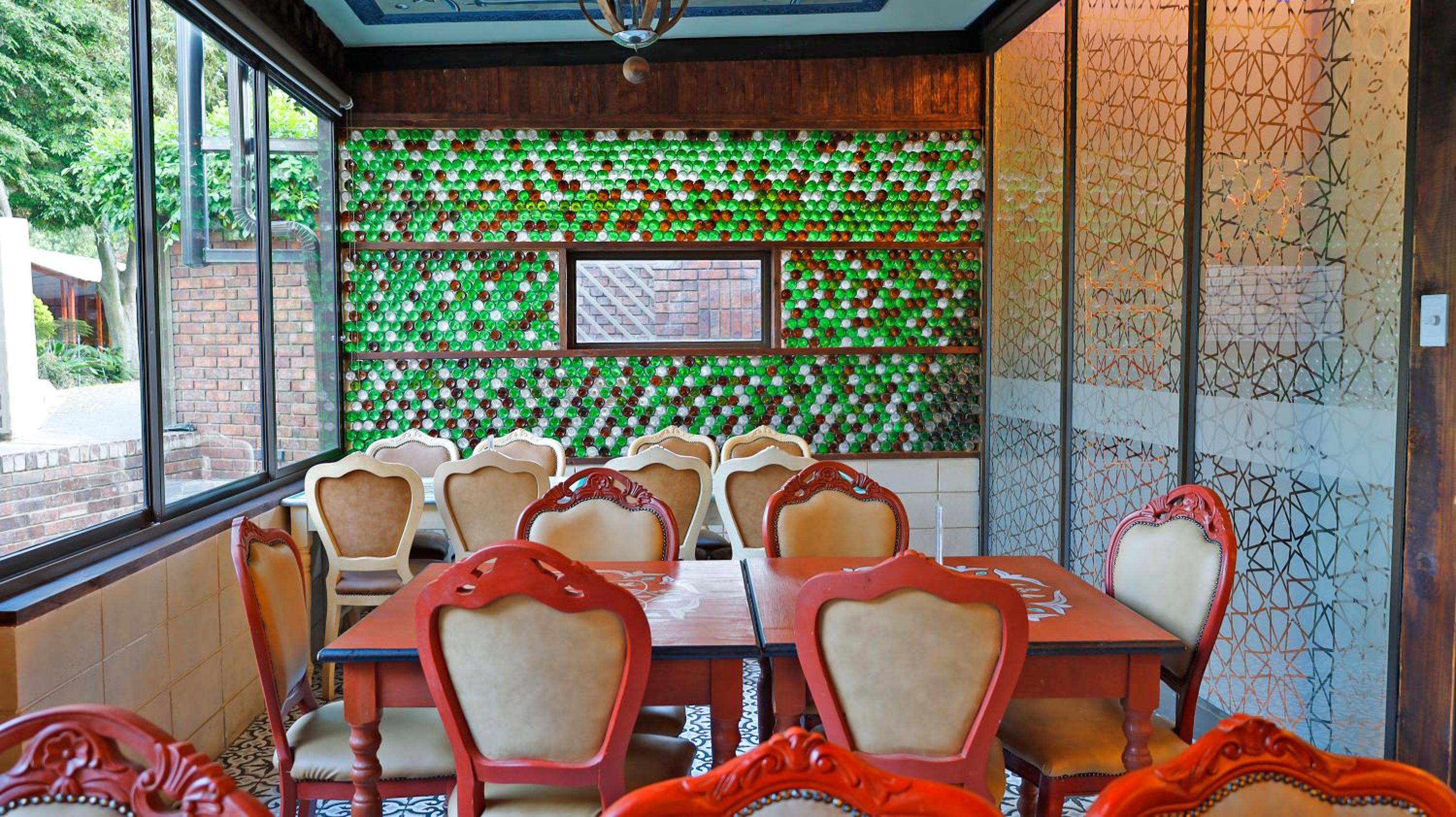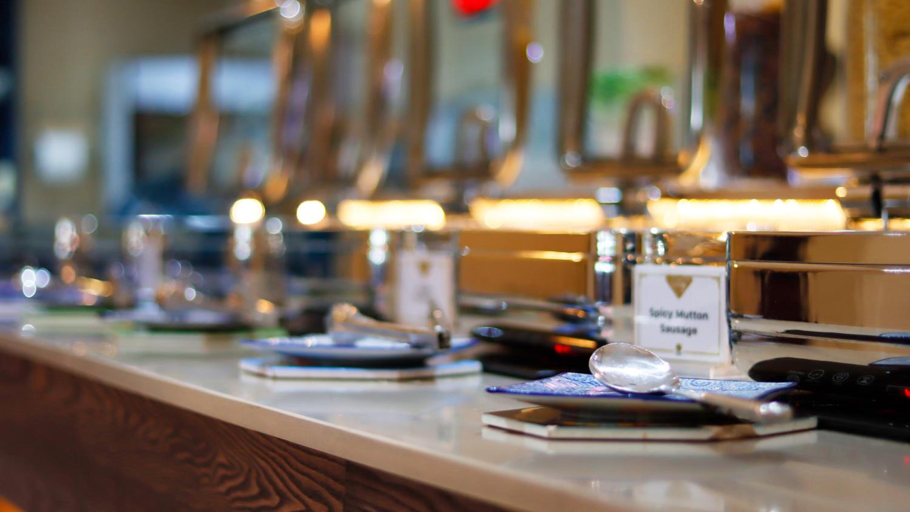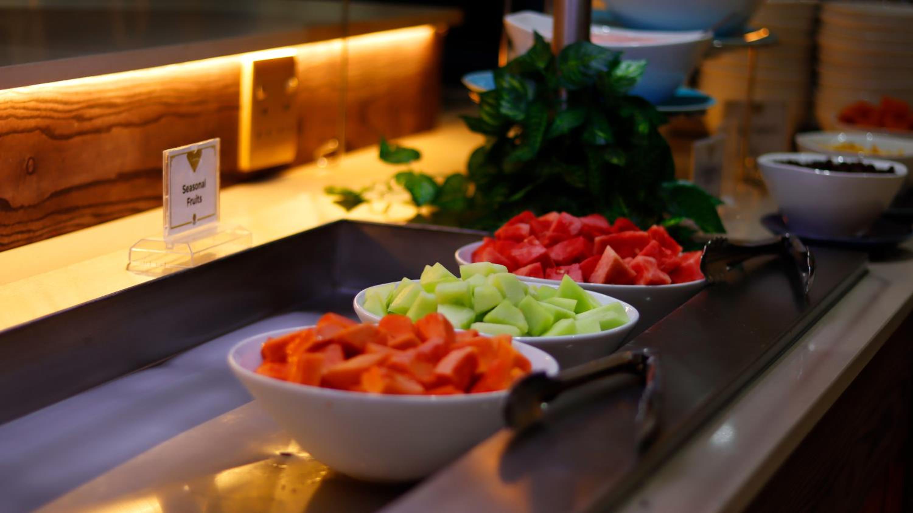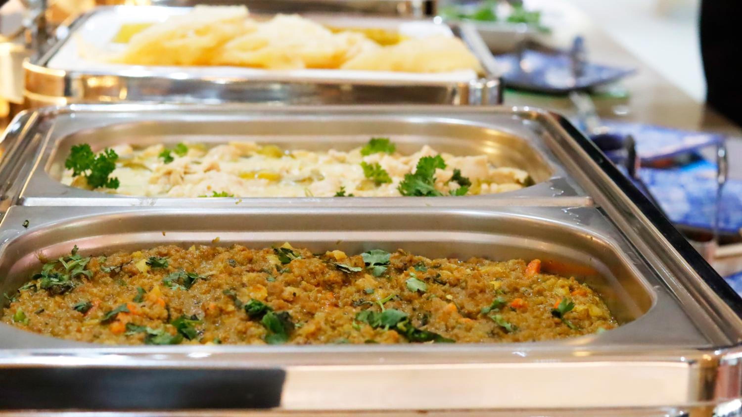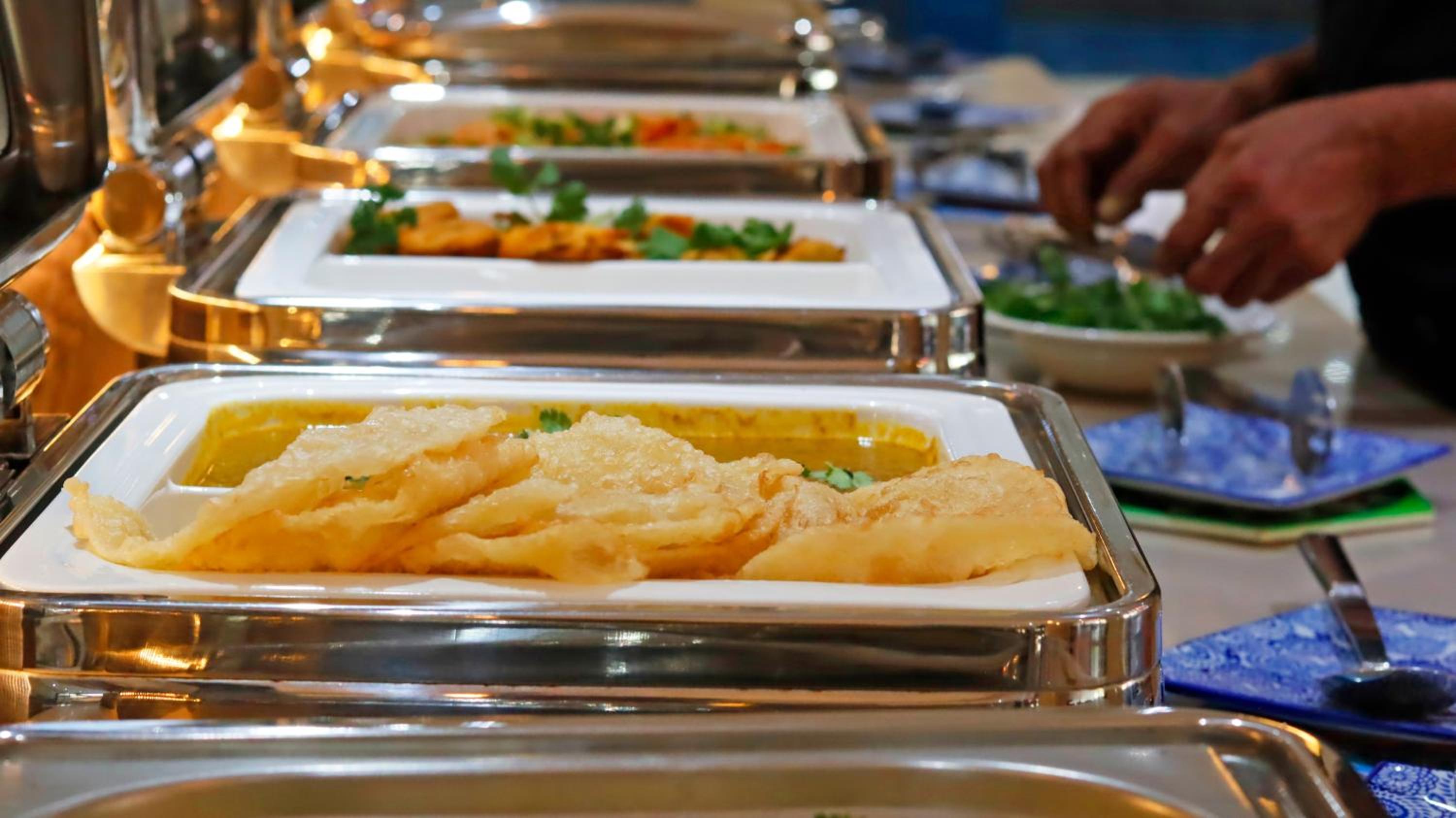 Guests can enjoy a variety of cuisine options, including Indian, Middle Eastern, and Moroccan dishes, with a halal option available upon request.