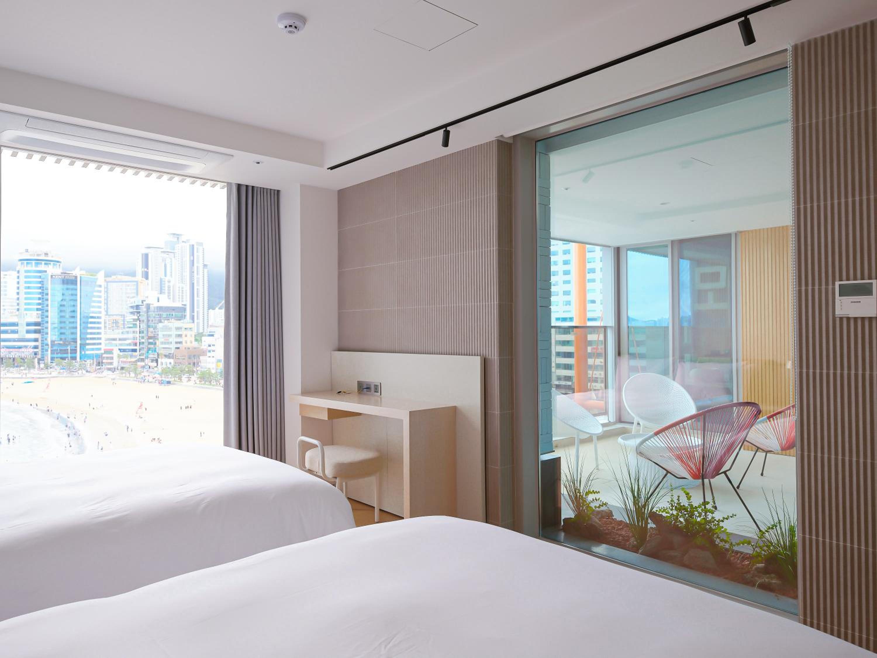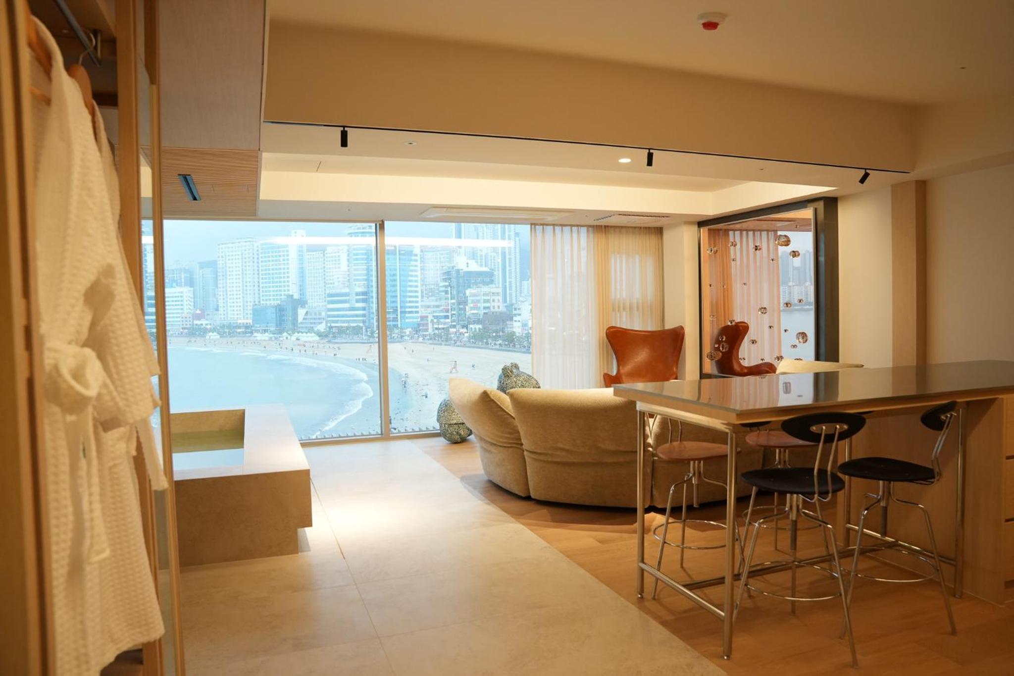 Absolutely amazing hotel.. we travel ALOT and this hotel, despite it is not super big, was just one of our top 5 experiences.. super friendly staff, good english speakers.. everything is new in the Hotel.. great rooms.. especially the rooms with beach view is top view rooms.. just at the most populær beach in Busan..