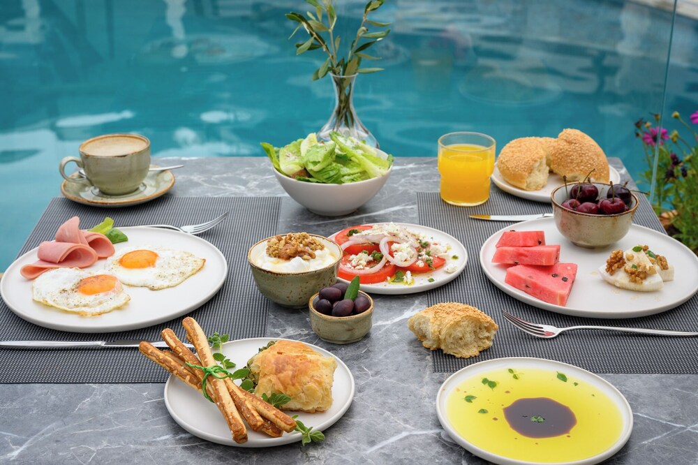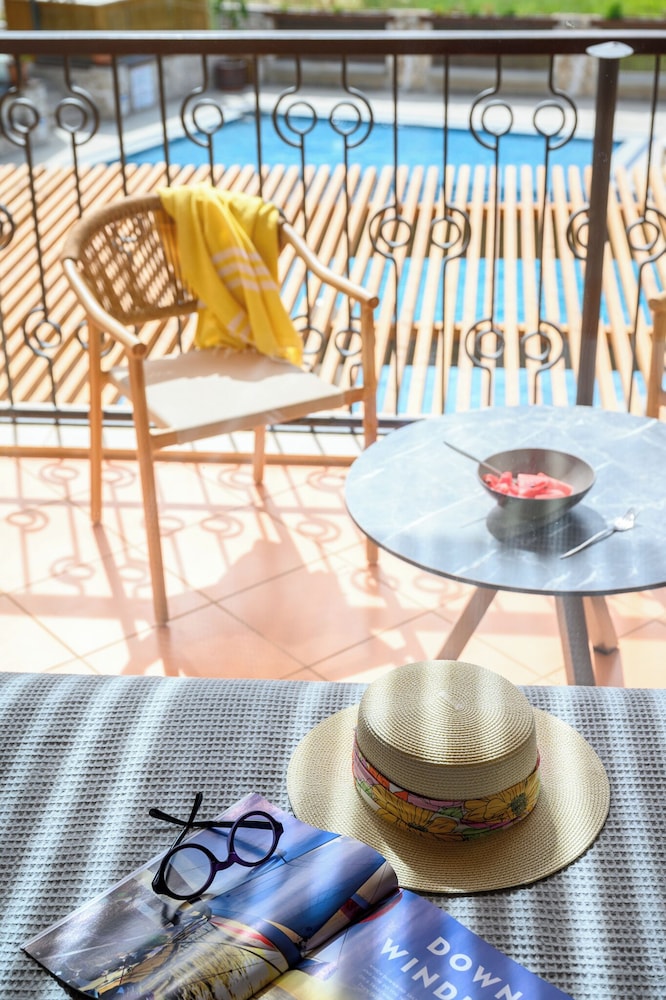 Experience relaxation by the outdoor pool or enjoy the tranquil garden view at Elisso Hotel.