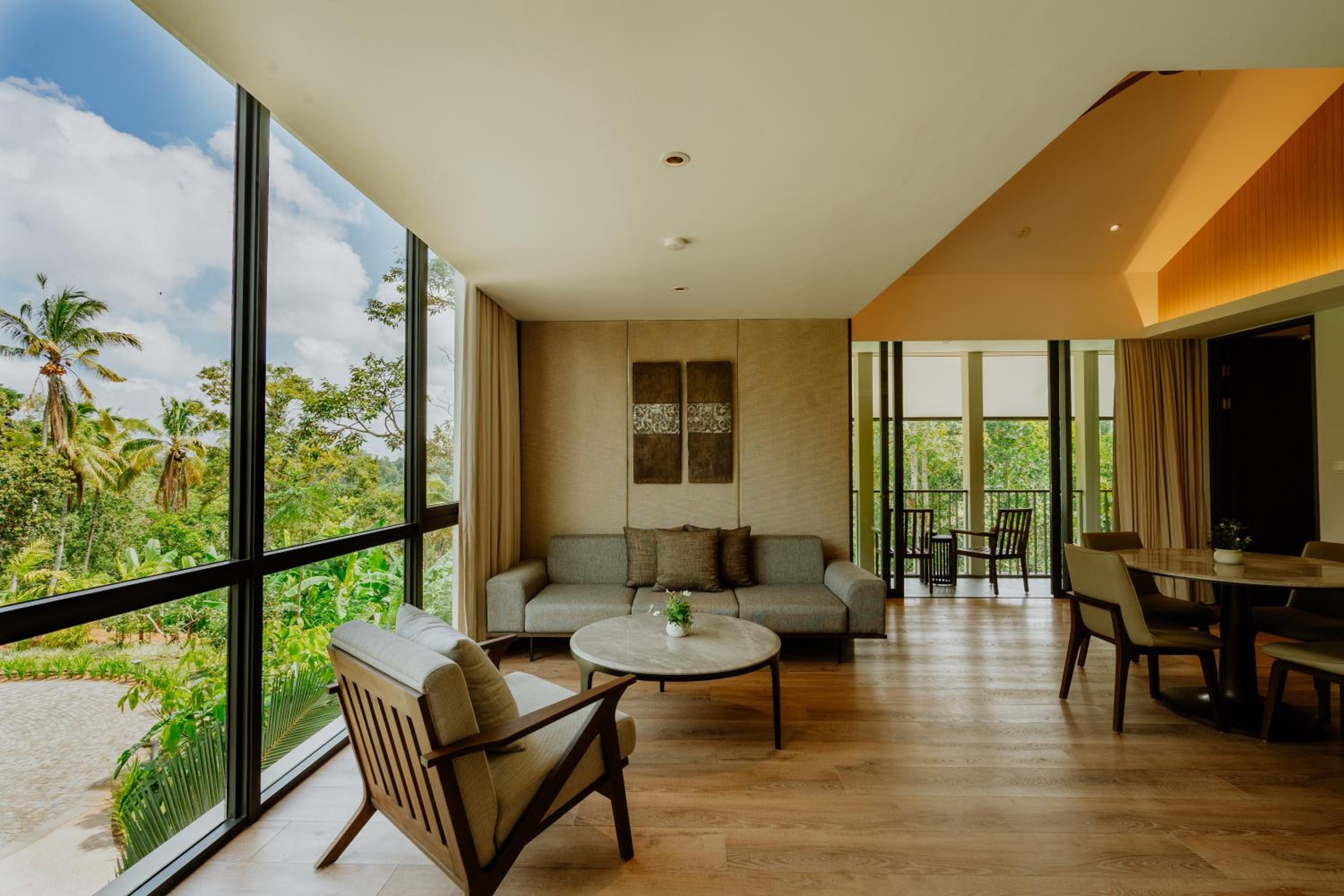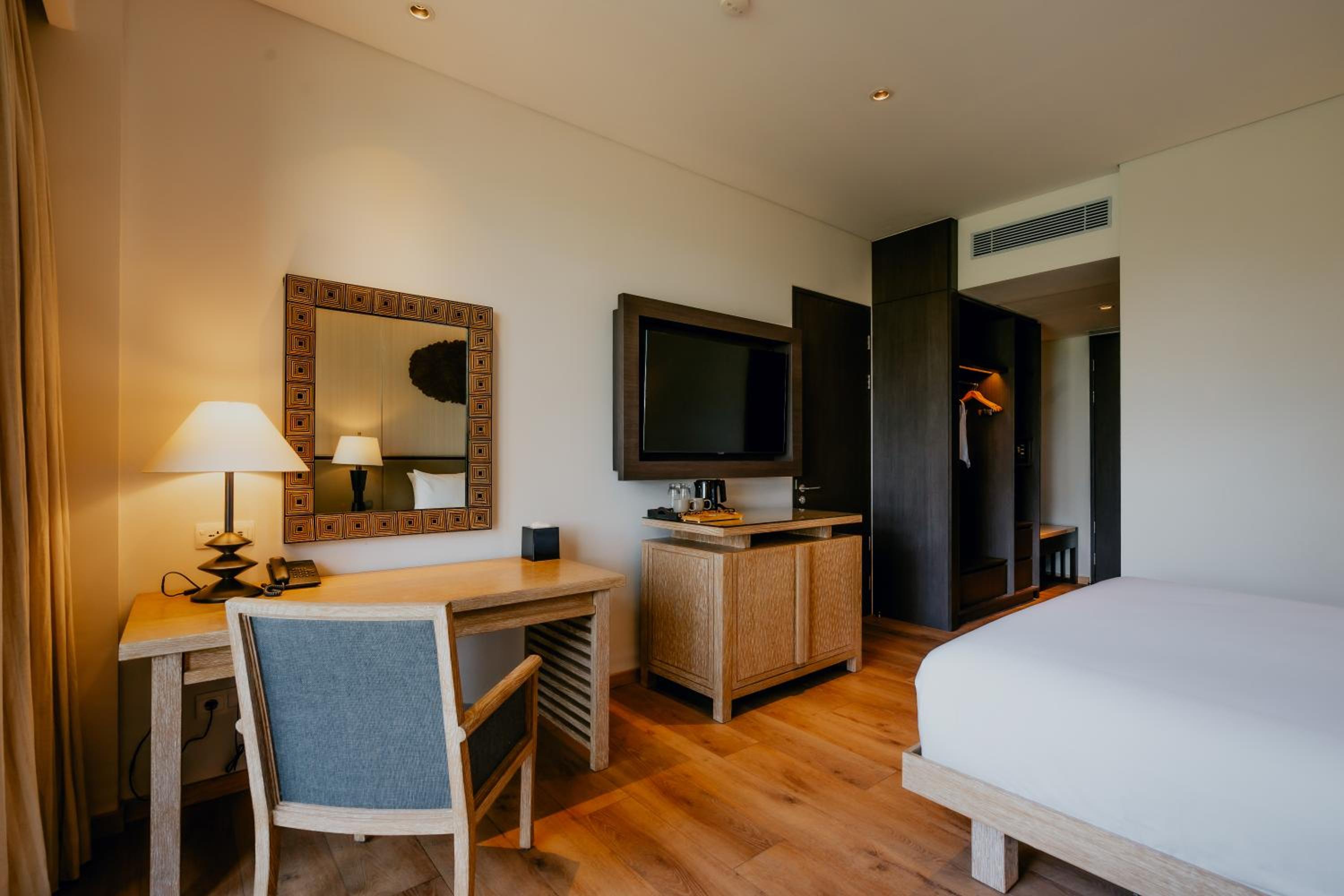 Experience comfort and style in each room featuring air conditioning, a private balcony with stunning mountain views, and modern amenities including a flat-screen TV and a safety deposit box. Select rooms even boast a charming patio for a touch of outdoor relaxation.