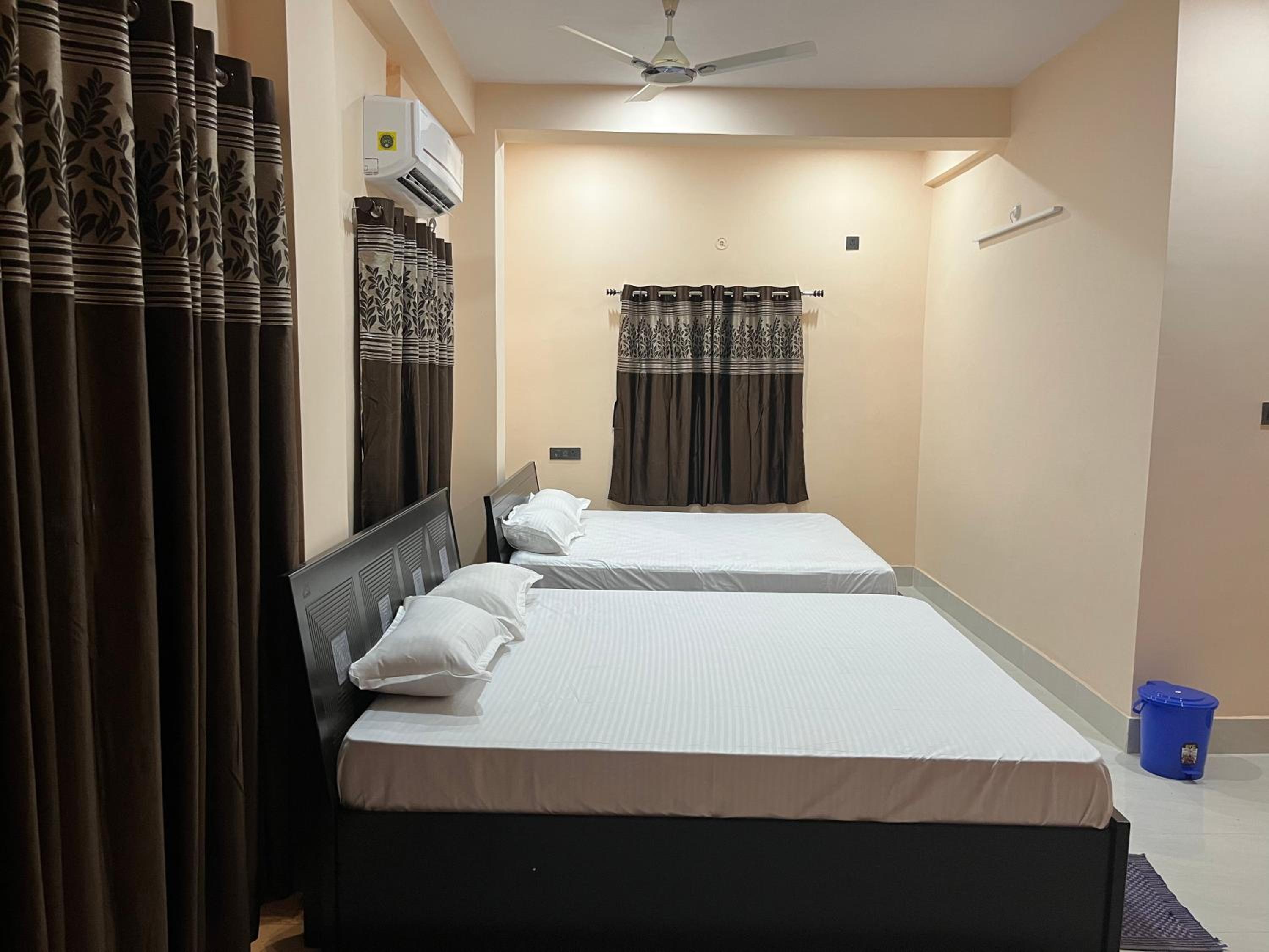 The room is spacious, well-maintained, and comfortable, with two air conditioners available in the room. The location is also convenient, with a temple situated within 1 km, making it easily accessible. Overall, it offers a pleasant and comfortable stay.