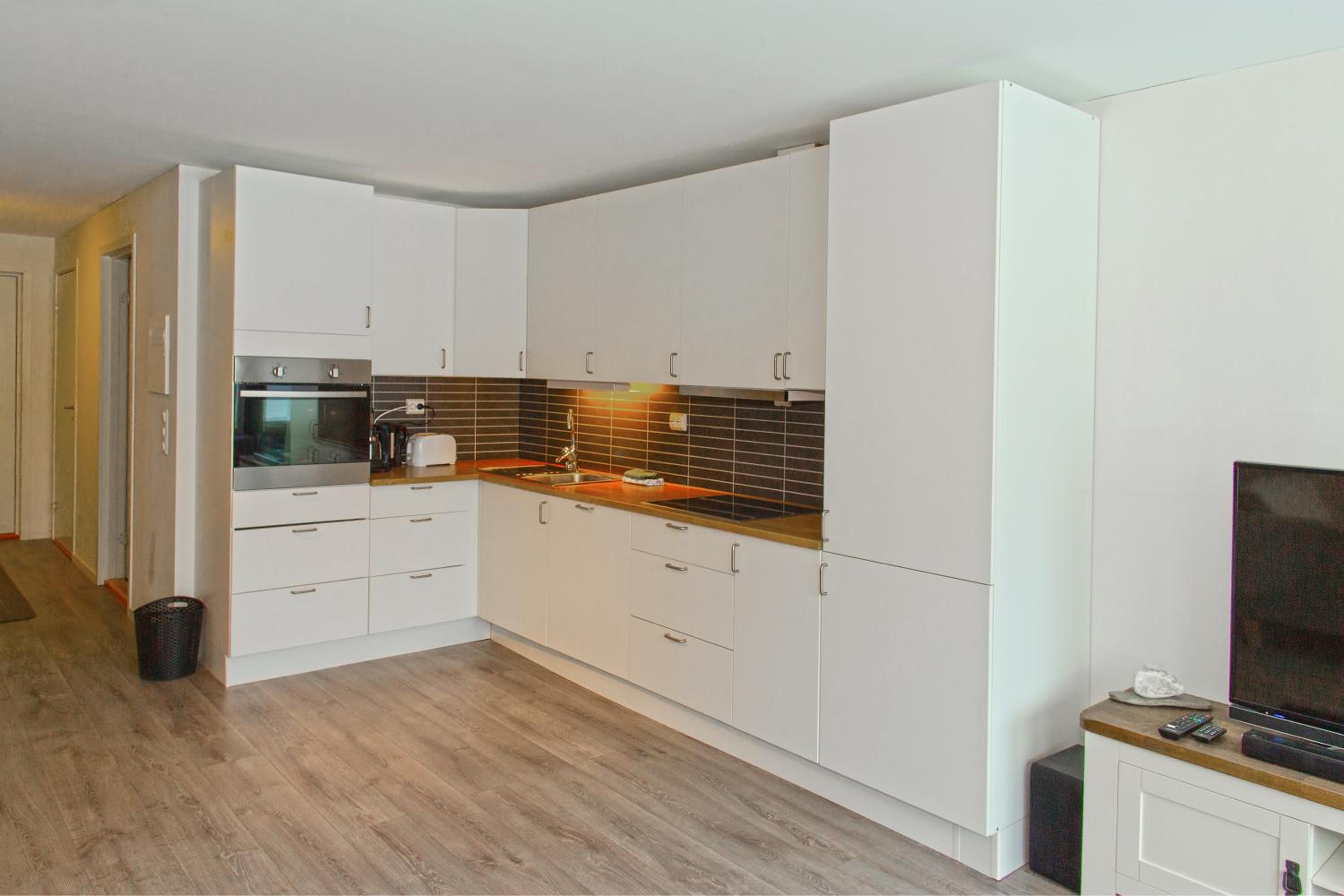 It was a really nice and spacious apartment, with a great view of the bay and the mountains. The sauna and the drying room for our skiing equipment were just another perfect addition.