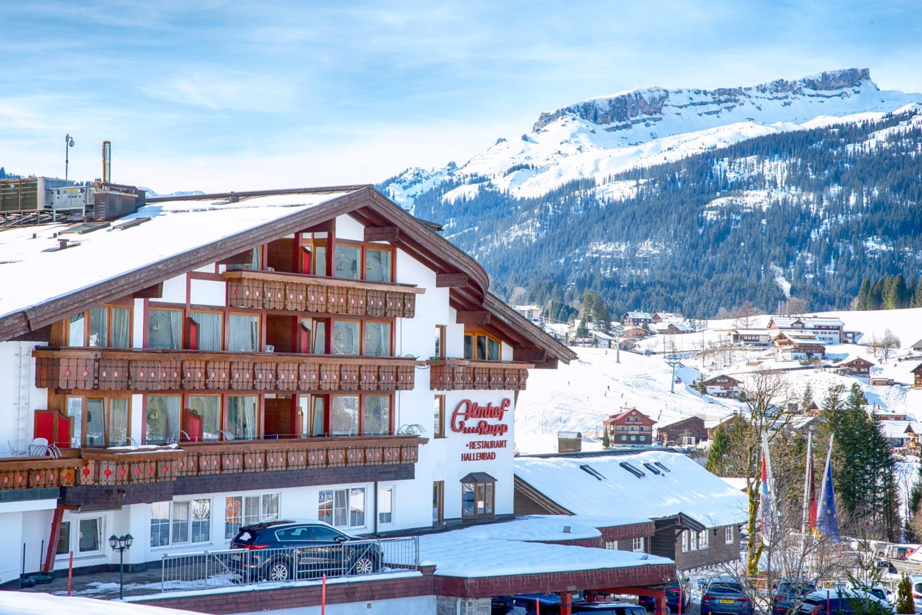 Hotel Rupp Almhof, nestled by the Kanzelwand-Fellhorn ski trail, offers the perfect winter escape with its convenient ski-in/ski-out access.