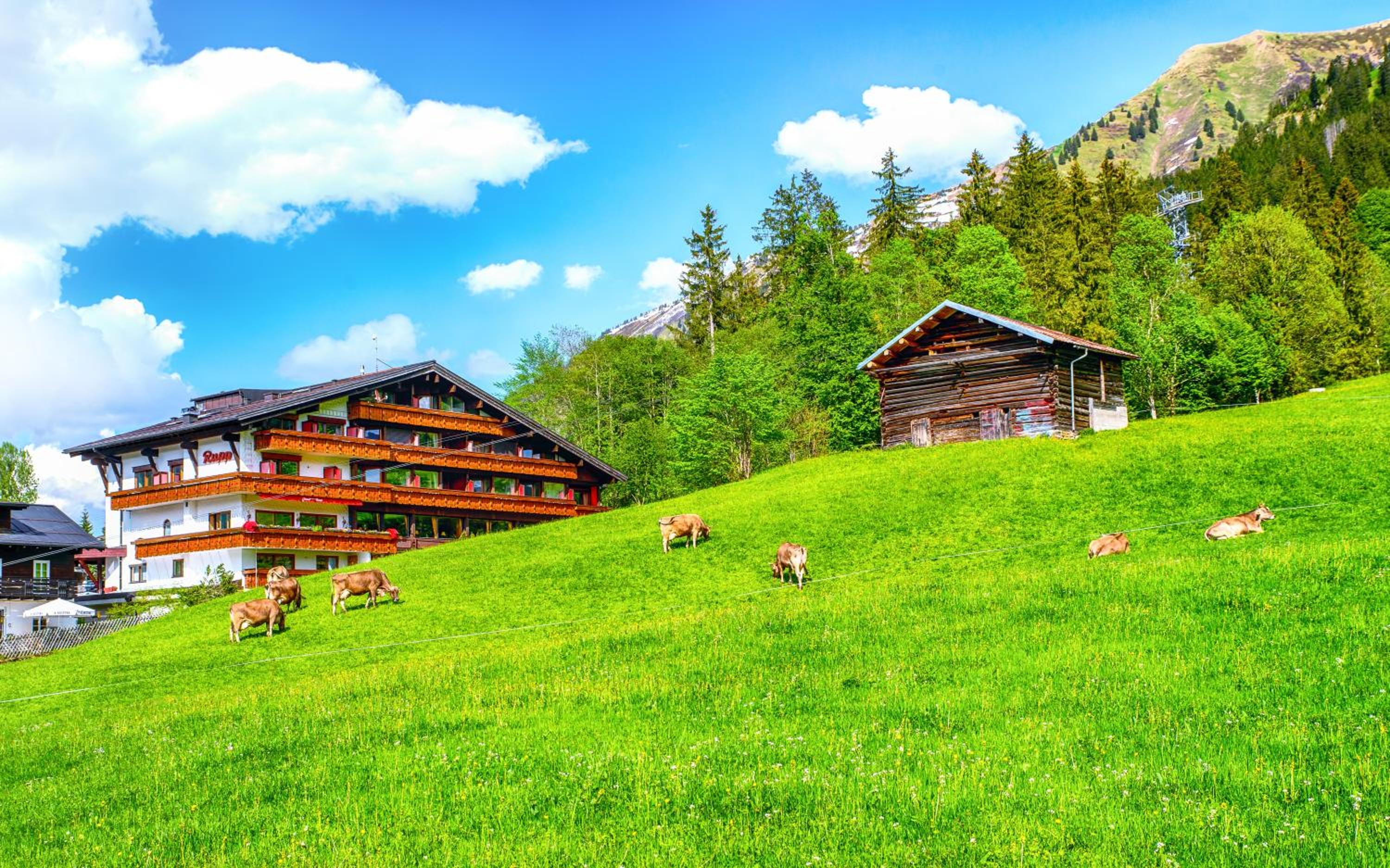 Just a 3-minute walk from Riezlern's center, the 4-star hotel also provides easy access to the Kanzelwandbahn Cable Car and ski bus stop. During the summer, guests can enjoy complimentary access to the public outdoor pool and all lifts and buses nearby.