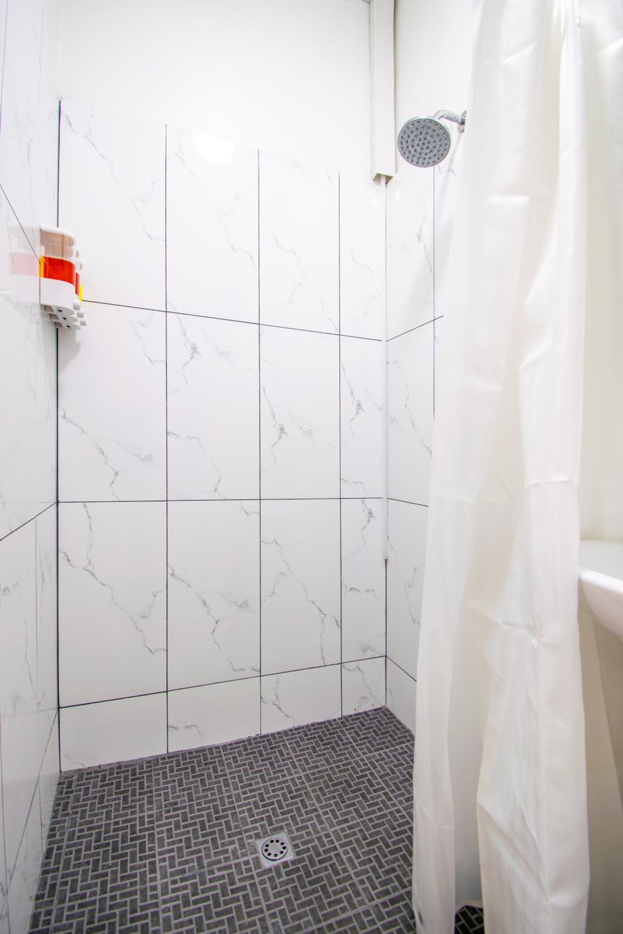 The shampoo and conditioners were empty and attached to the wall. Bathroom had a weird smell