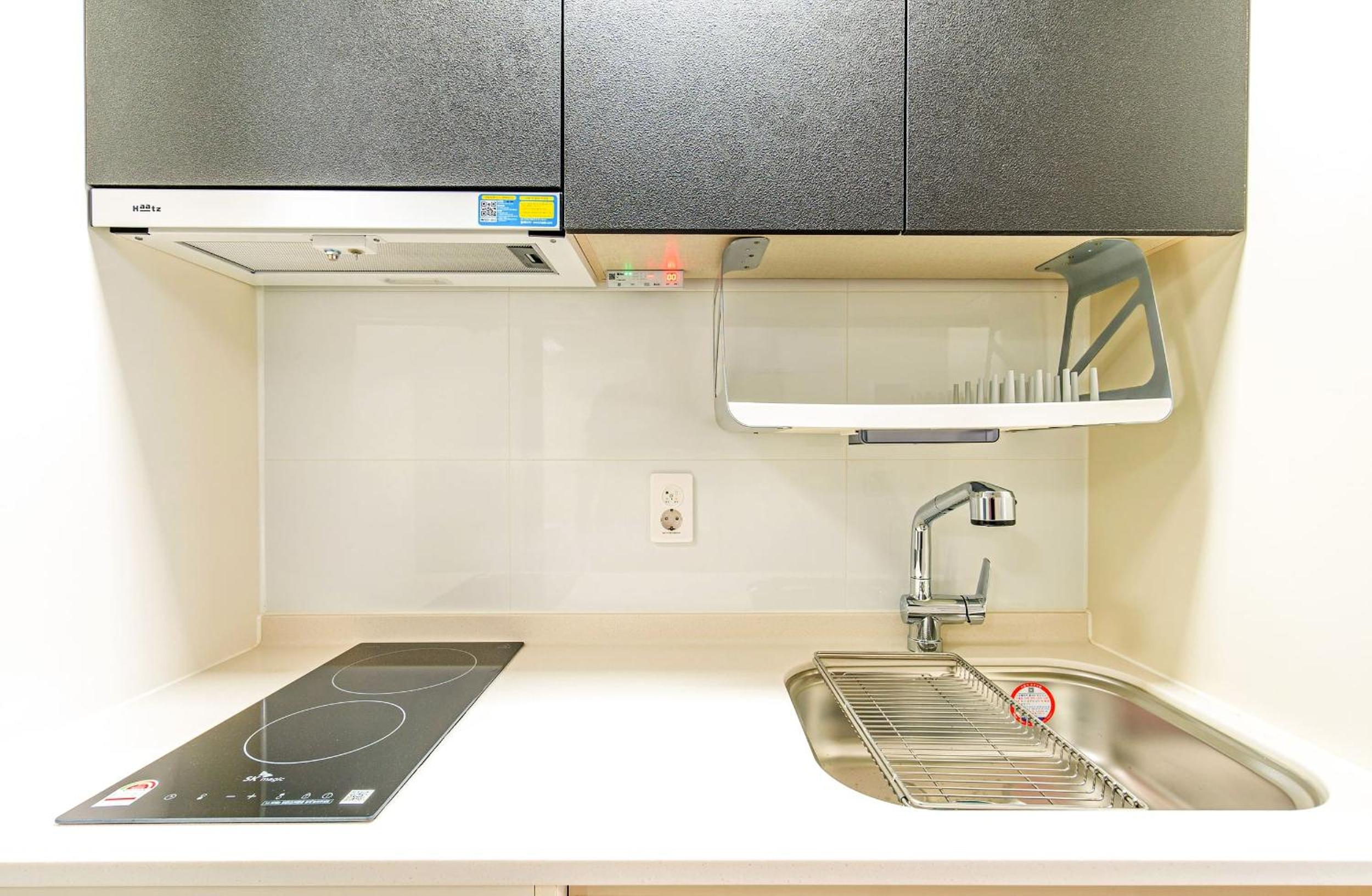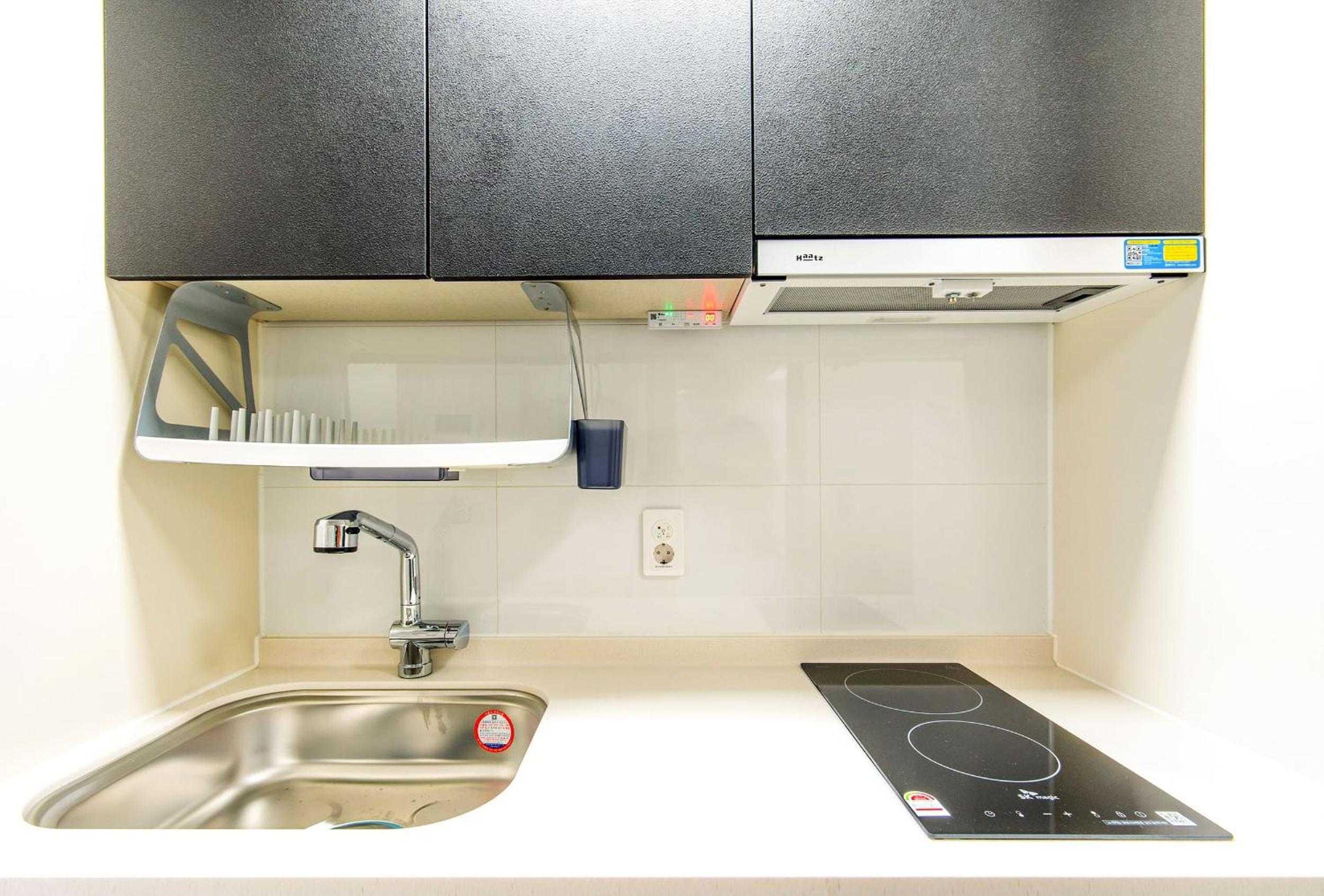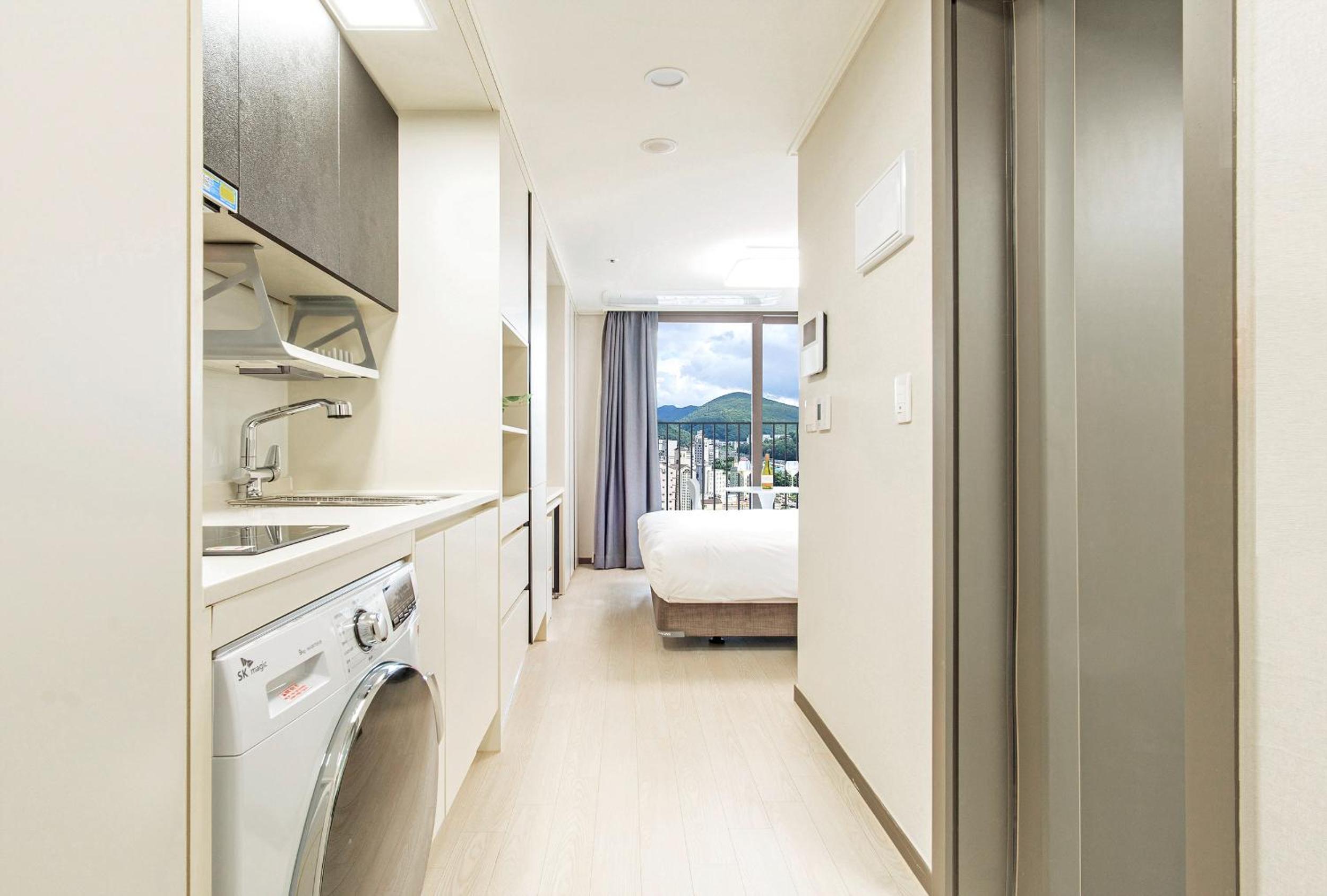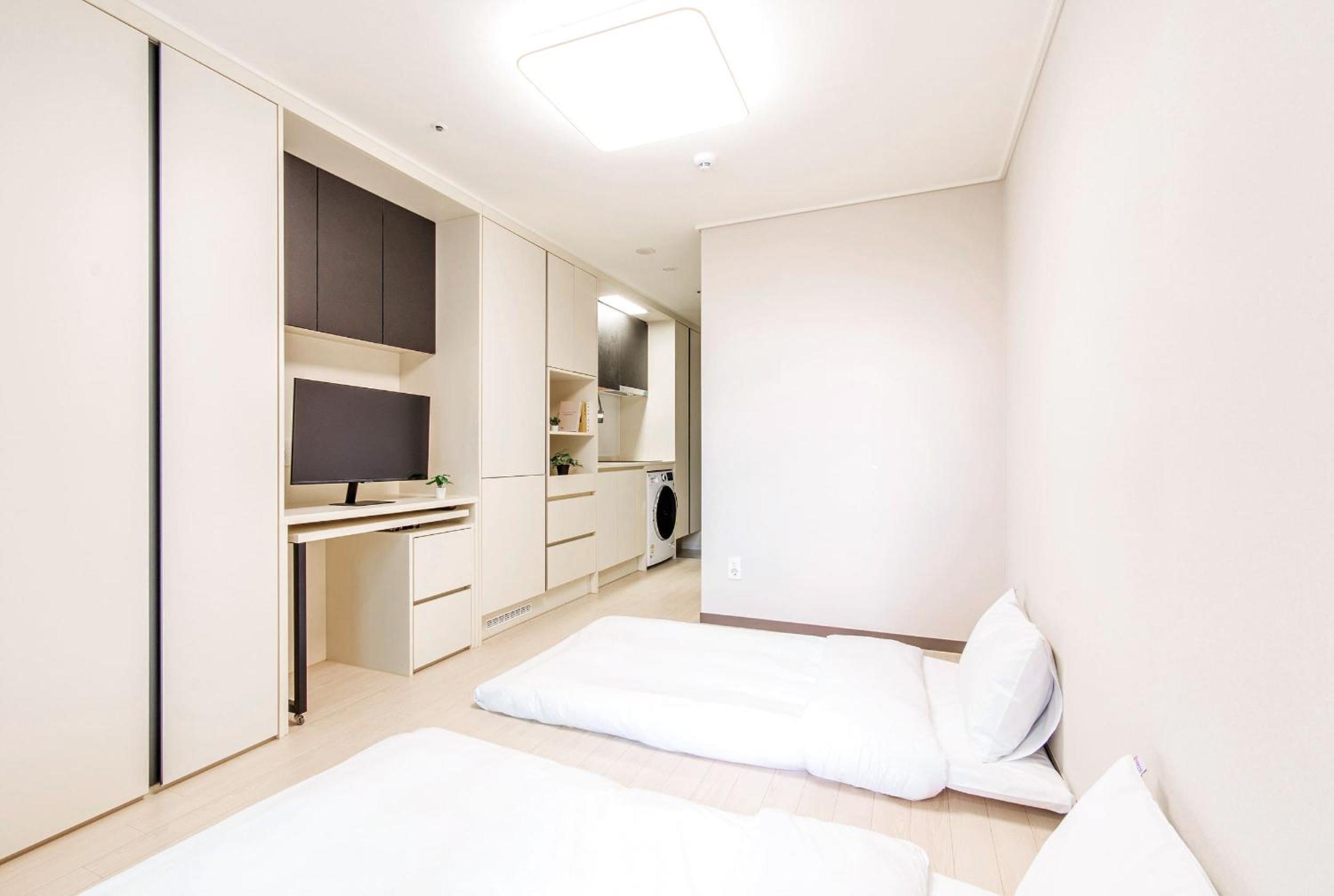 침구와 욕실은 매우 청결하고 프론트 직원들도 아주 친절합니다. 오피스텔 빌딩이라 스탠다드 룸의 크기는 좀 협소한 편이나, 주방시설이 갖추어져 있어 취사가 가능합니다. (식기는 없음)
