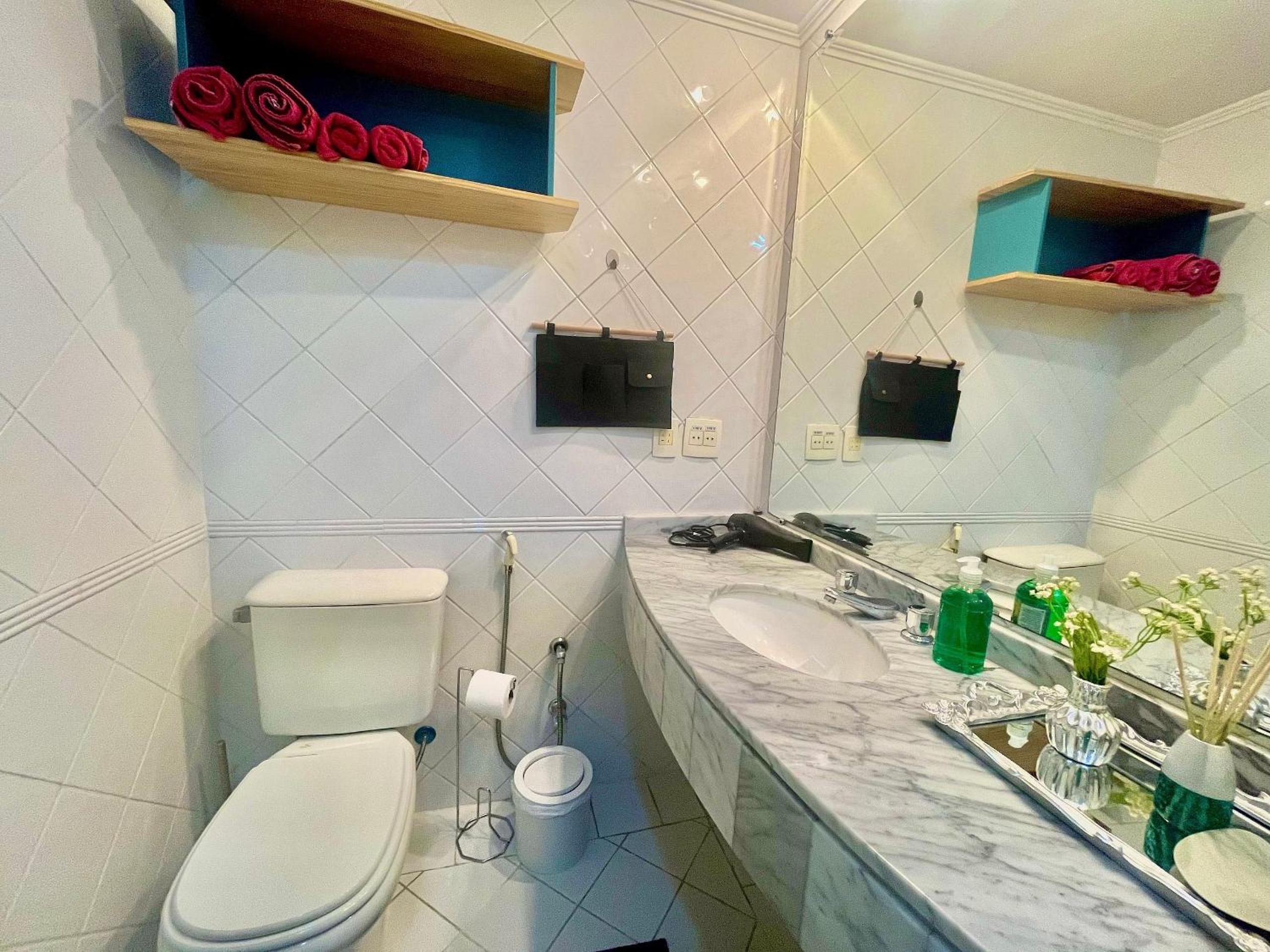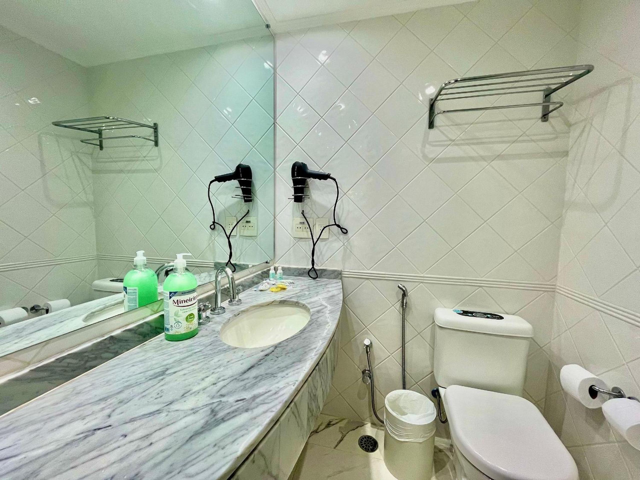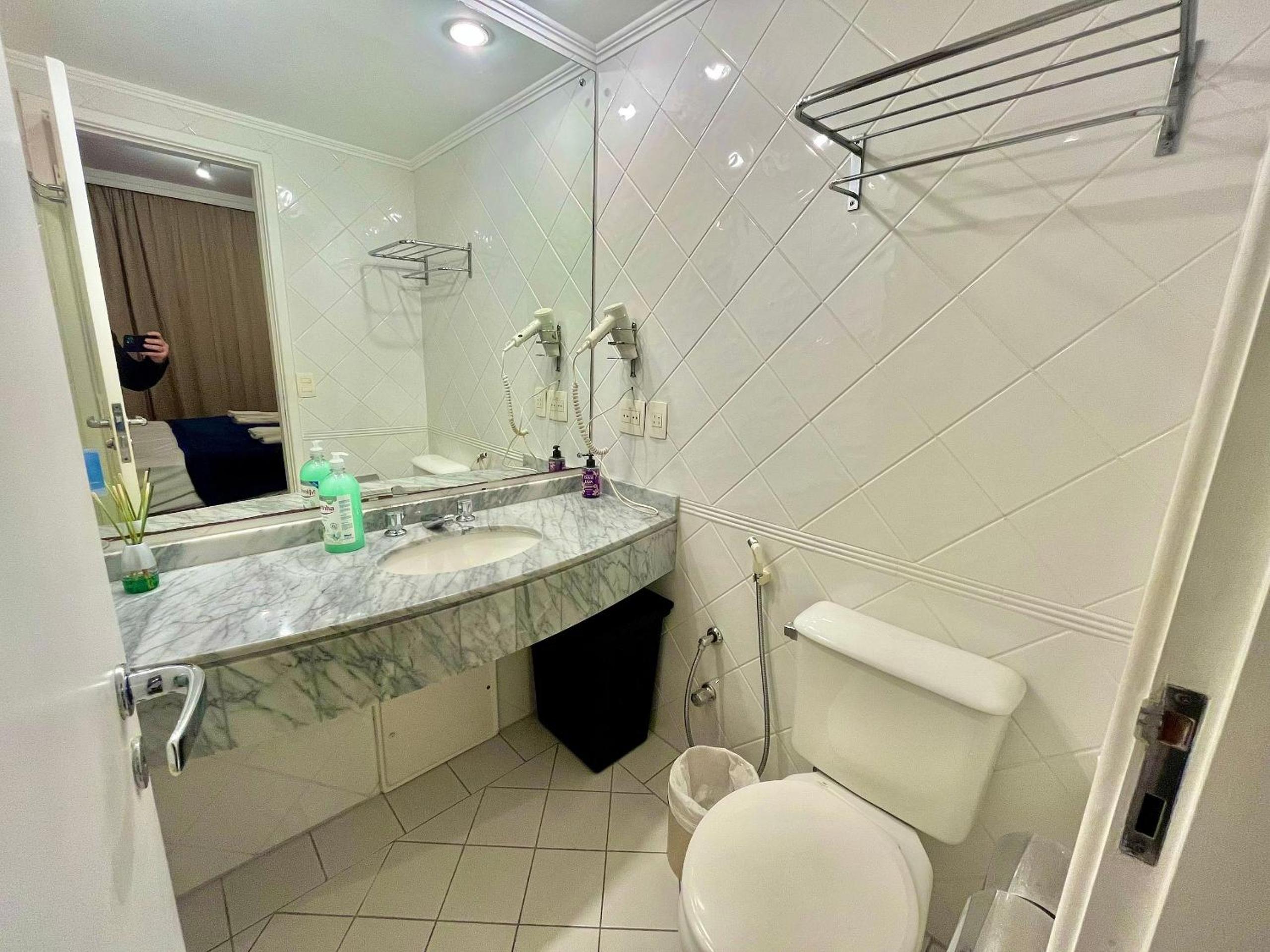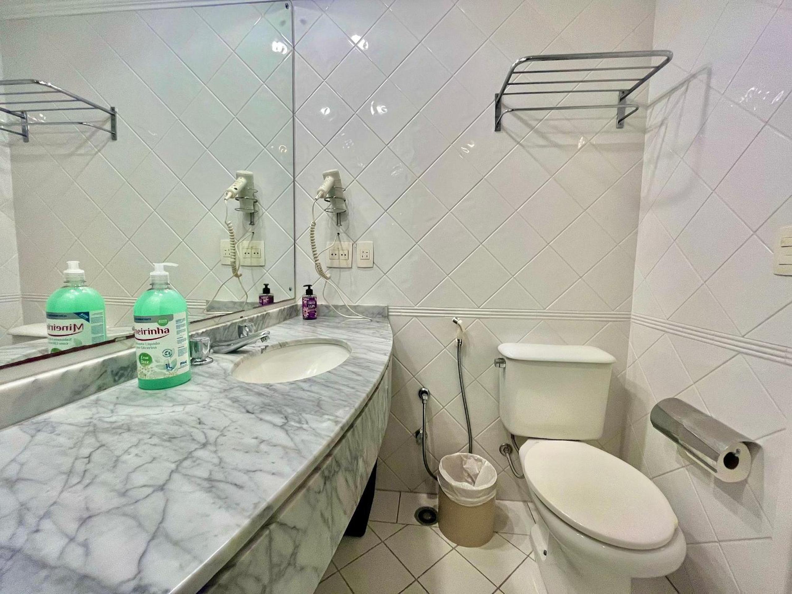 Banheiro nem parecia que foi limpo.