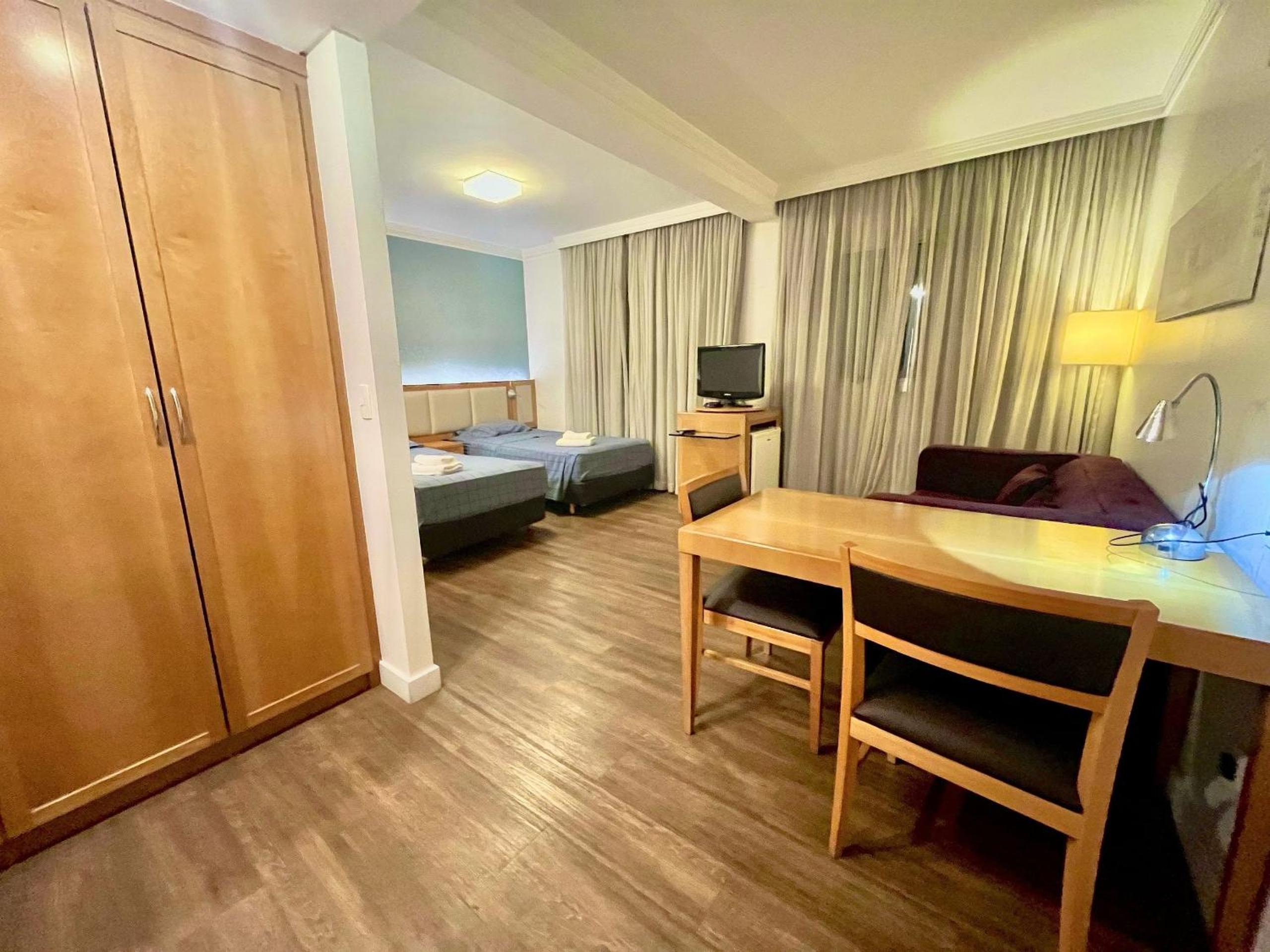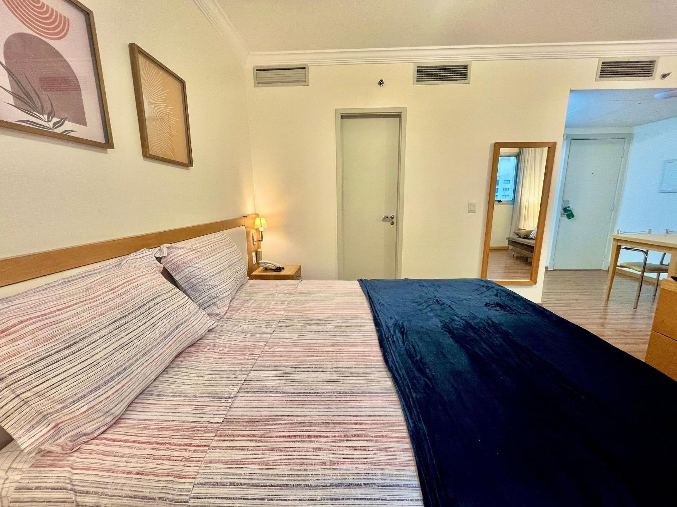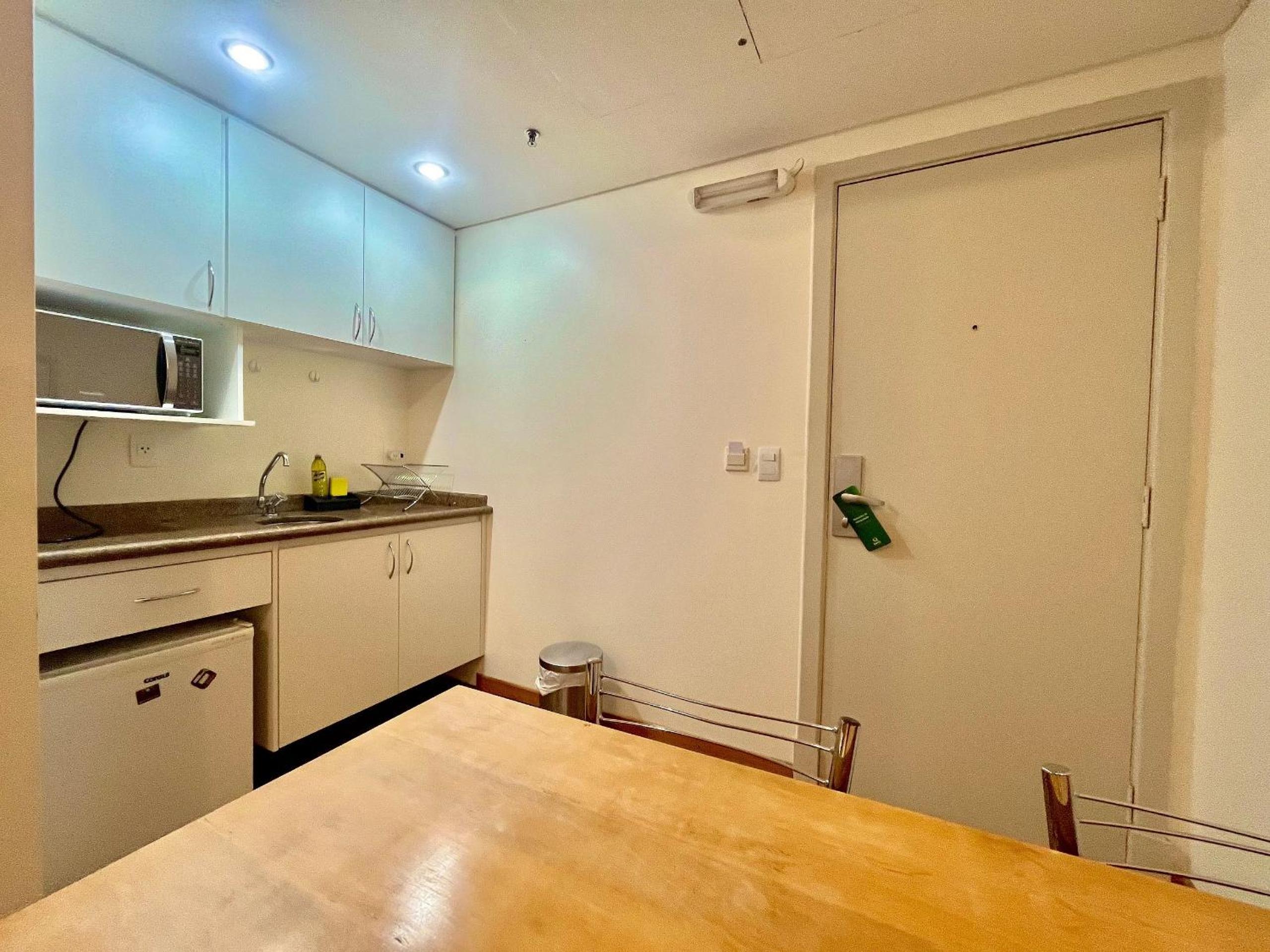 Outra situação que merece atenção é que, como o ar-condicionado não estava funcionando, percebemos que a equipe do hotel não atende diretamente o apartamento como ocorre em um hotel tradicional (hotel/flat). Dessa forma, desde a reposição de roupa de cama — que estava insuficiente para a quantidade de hóspedes — até qualquer outra demanda do apartamento precisa ser solicitada por mensagem pelo aplicativo Booking.