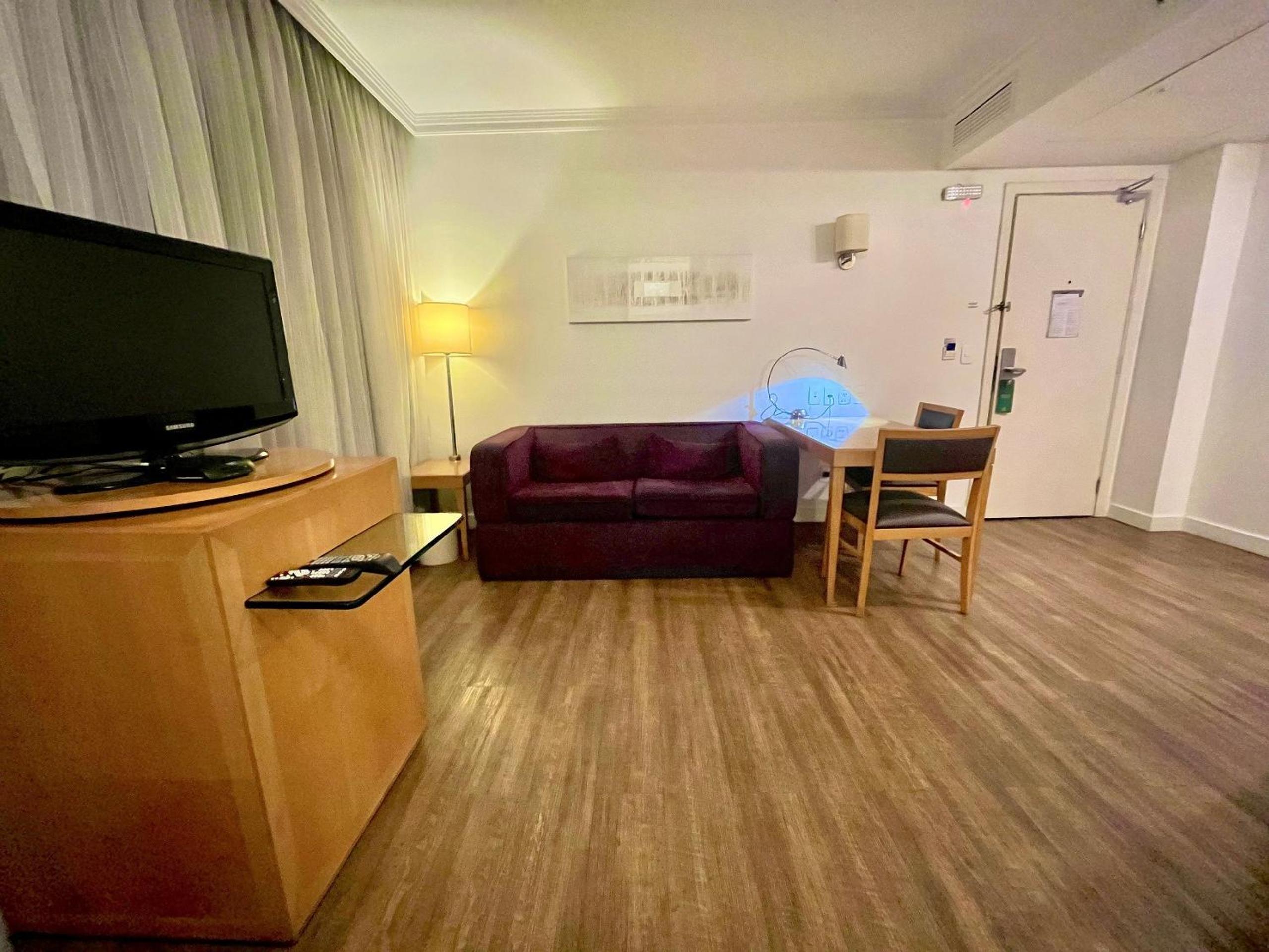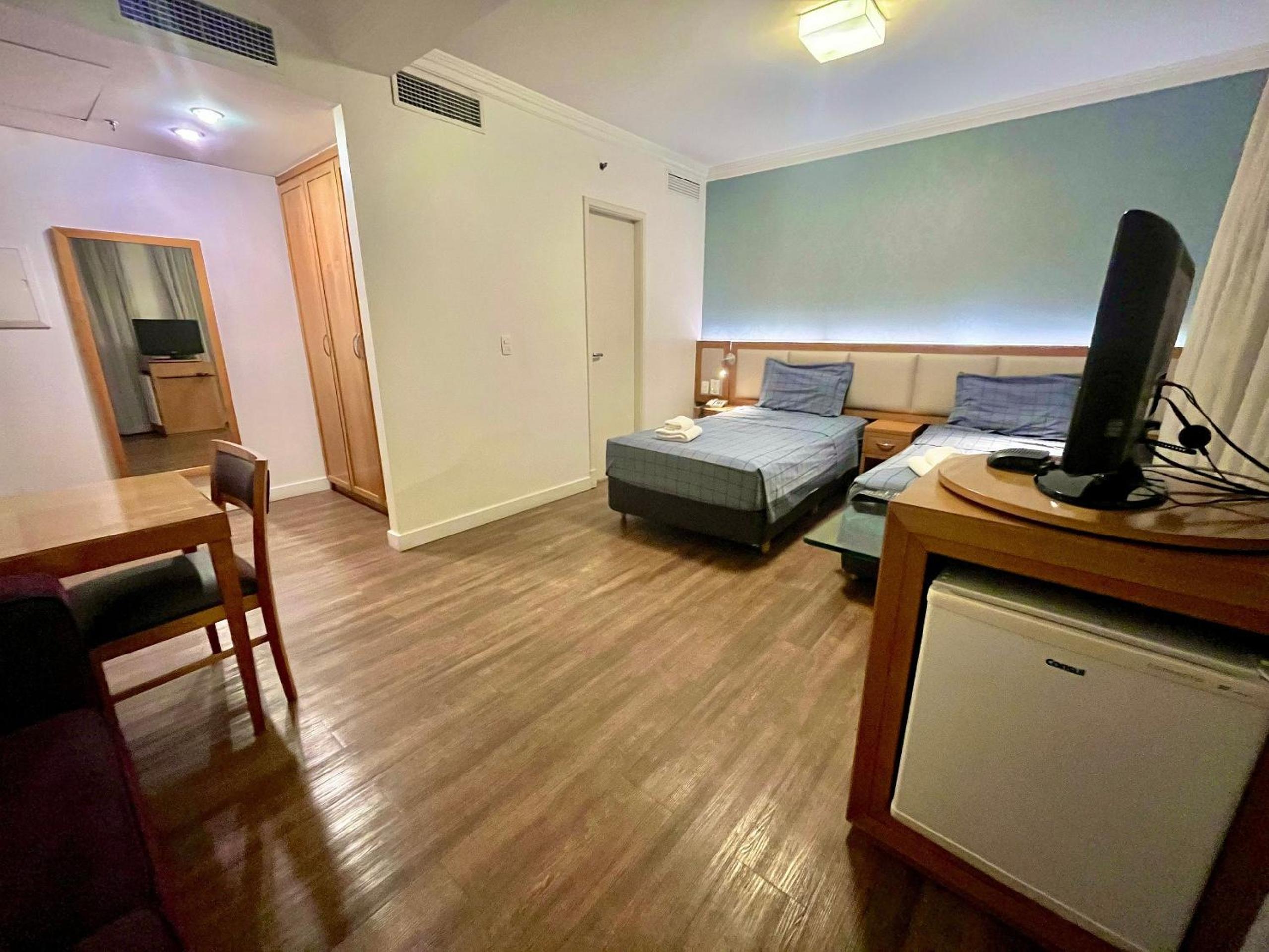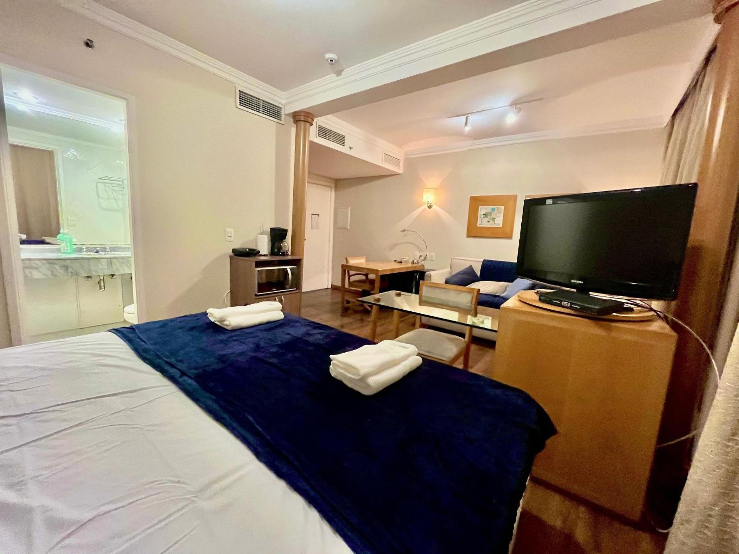 Outra situação que merece atenção é que, como o ar-condicionado não estava funcionando, percebemos que a equipe do hotel não atende diretamente o apartamento como ocorre em um hotel tradicional (hotel/flat). Dessa forma, desde a reposição de roupa de cama — que estava insuficiente para a quantidade de hóspedes — até qualquer outra demanda do apartamento precisa ser solicitada por mensagem pelo aplicativo Booking.