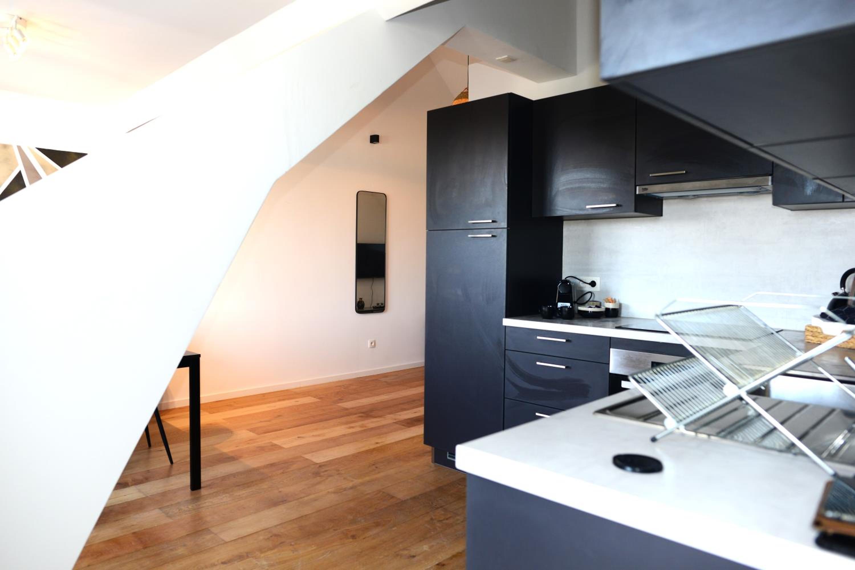 We liked the location. Well located at walking distance from various points of interest. The apartment was comfy with a good volume. It was clean. Good choice of complementary products (tea and coffee).