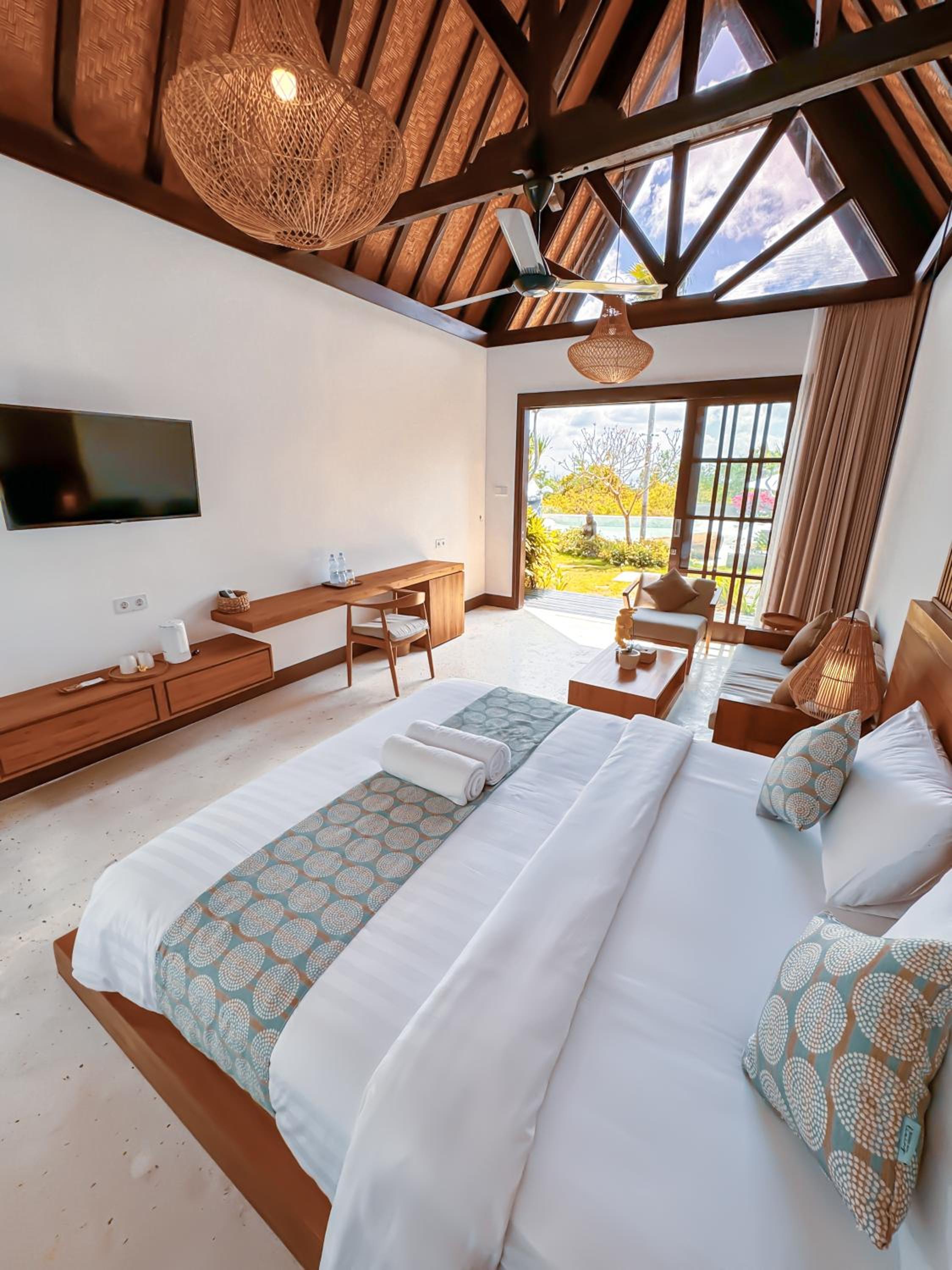 The place is quiet but in a good location to get around uluwatu area. The rooms are spacious and the bathrooms are open plan.