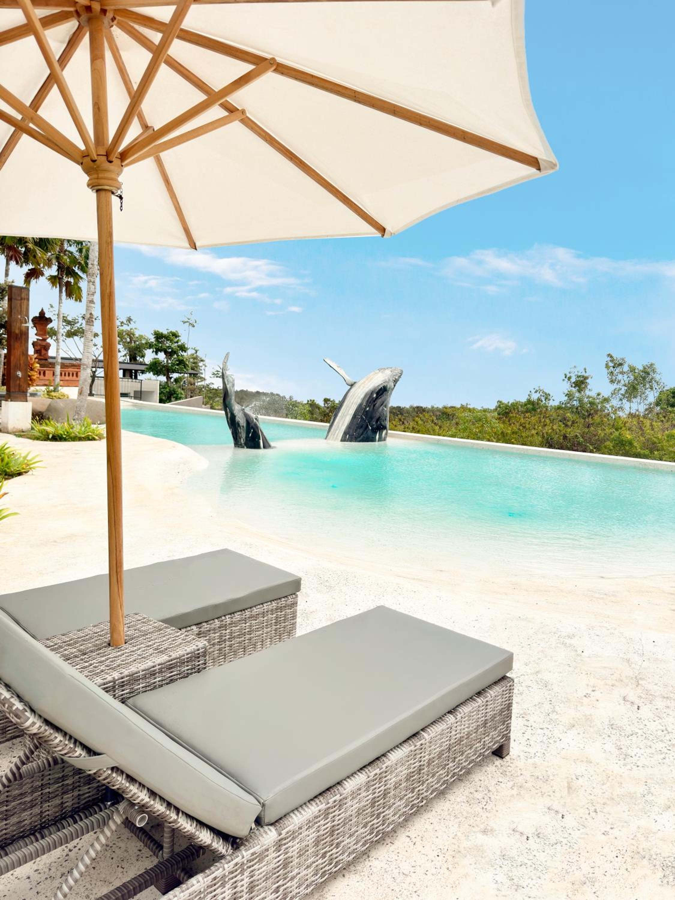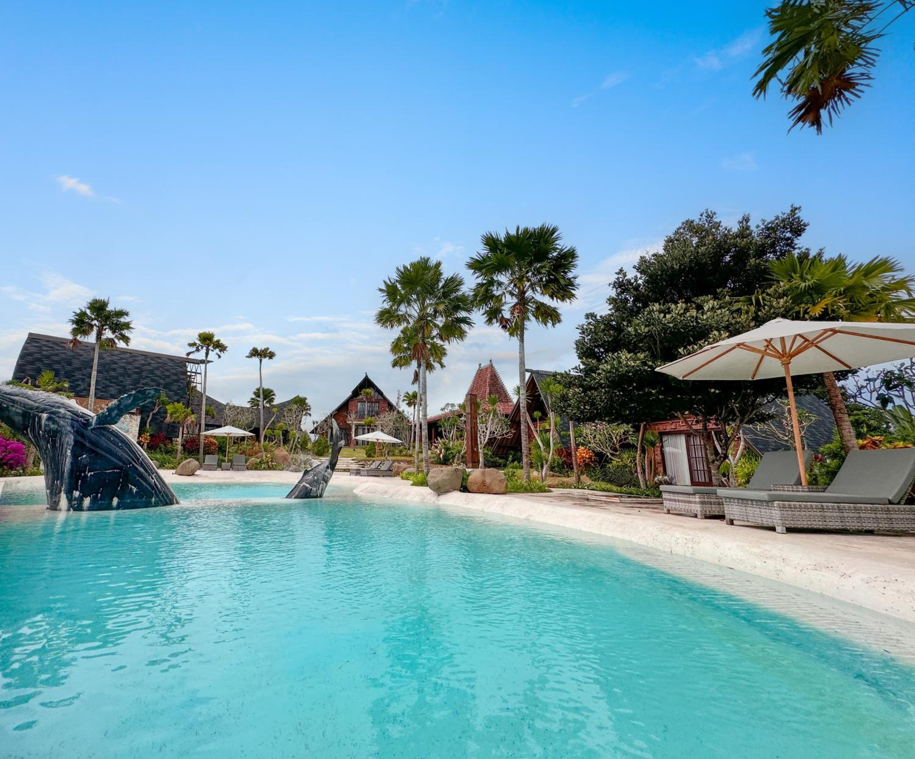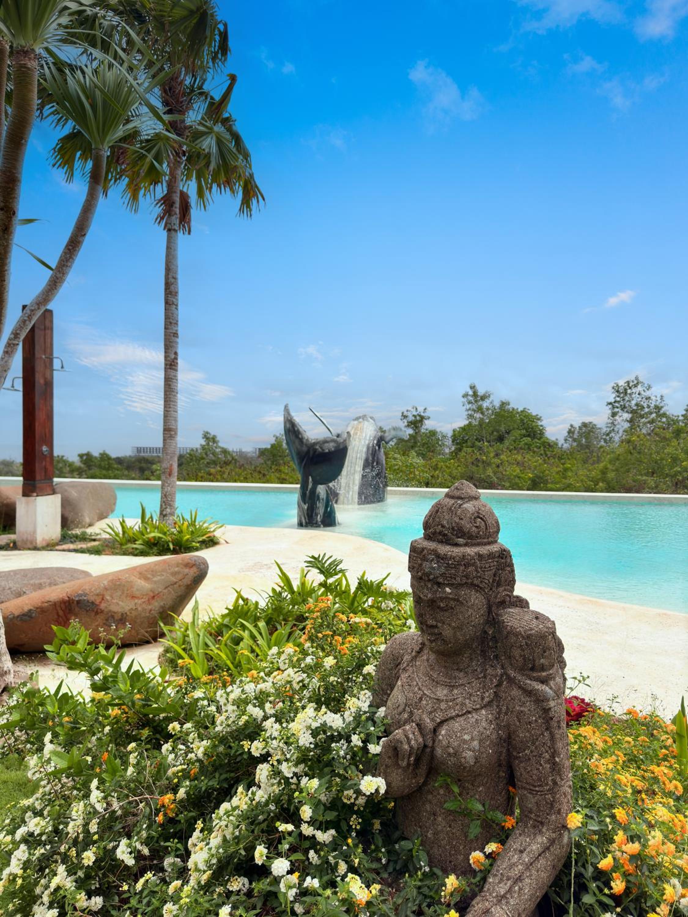 Nice pool despite the weird concrete whale in it.