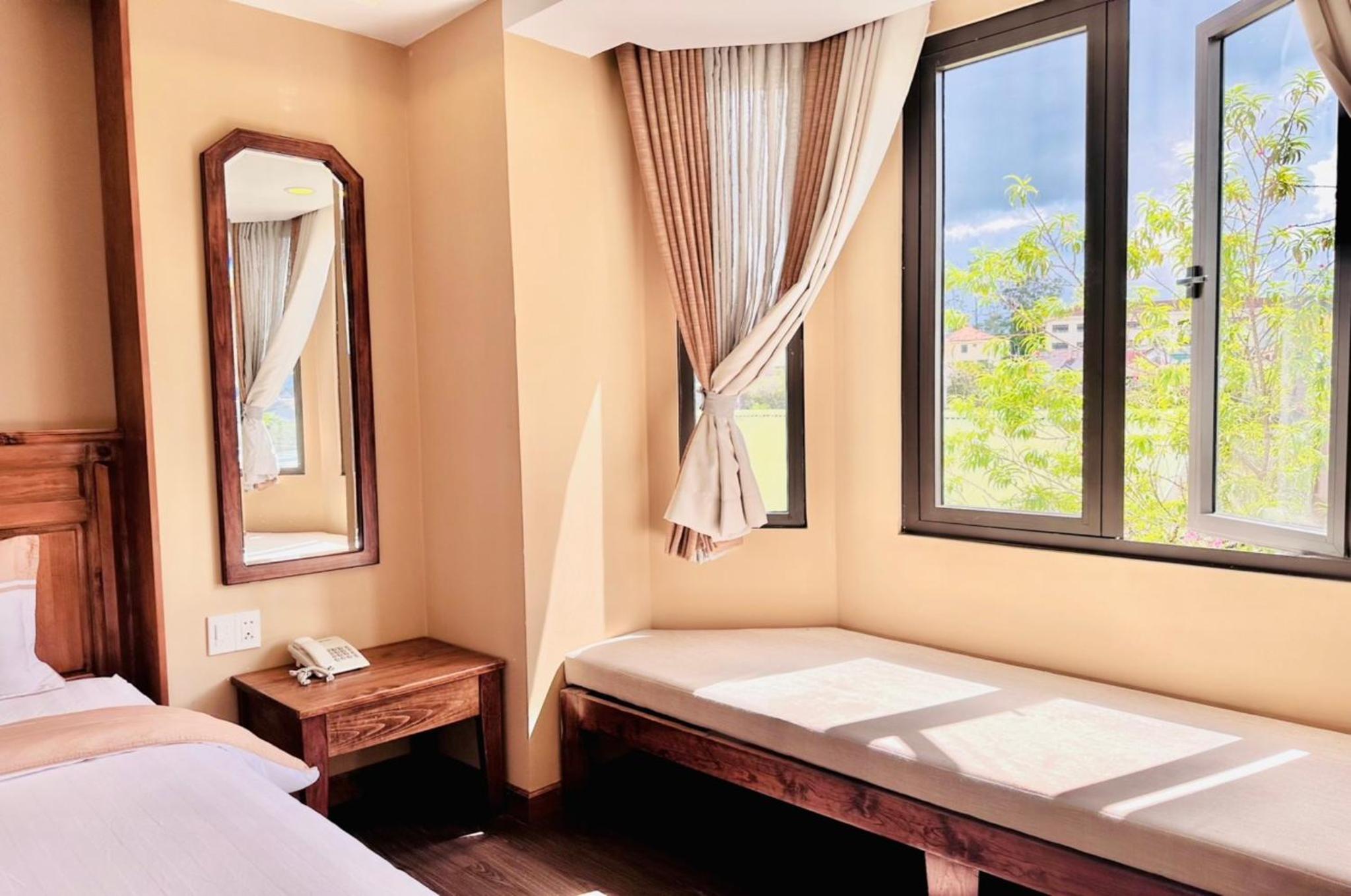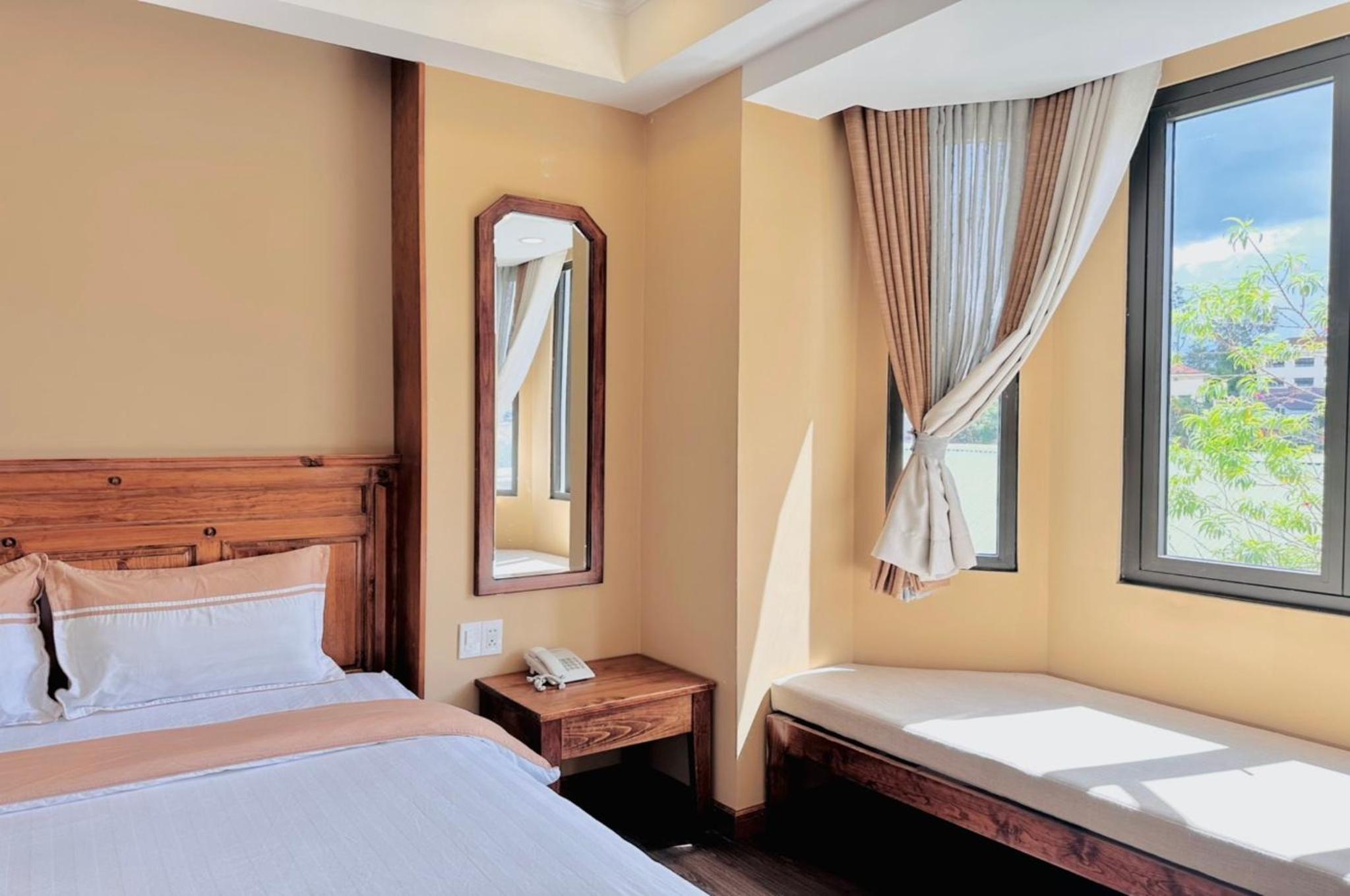 1. Tôi đặt phòng Dulex gia đình - 35m2 nhưng 1 phòng rèm không đủ che tối để ngủ, rất chói. Gọi cho lễ tân thì bảo hết phòng. Tôi cũng ráng ngủ nhưng không được đành phải đi xuống lễ tân với ý định trả phòng, lúc này lễ tân mới xếp cho tôi 1 phòng khác và đề nghị phụ thu thêm 300k/2 đêm vì phòng này rộng hơn. Tôi cũng hơi khó chịu vì bị đẩy vào thế như vậy nhưng vì muốn chuyến du lịch của nhà mình được vui vẻ nên tôi đã chấp nhận.