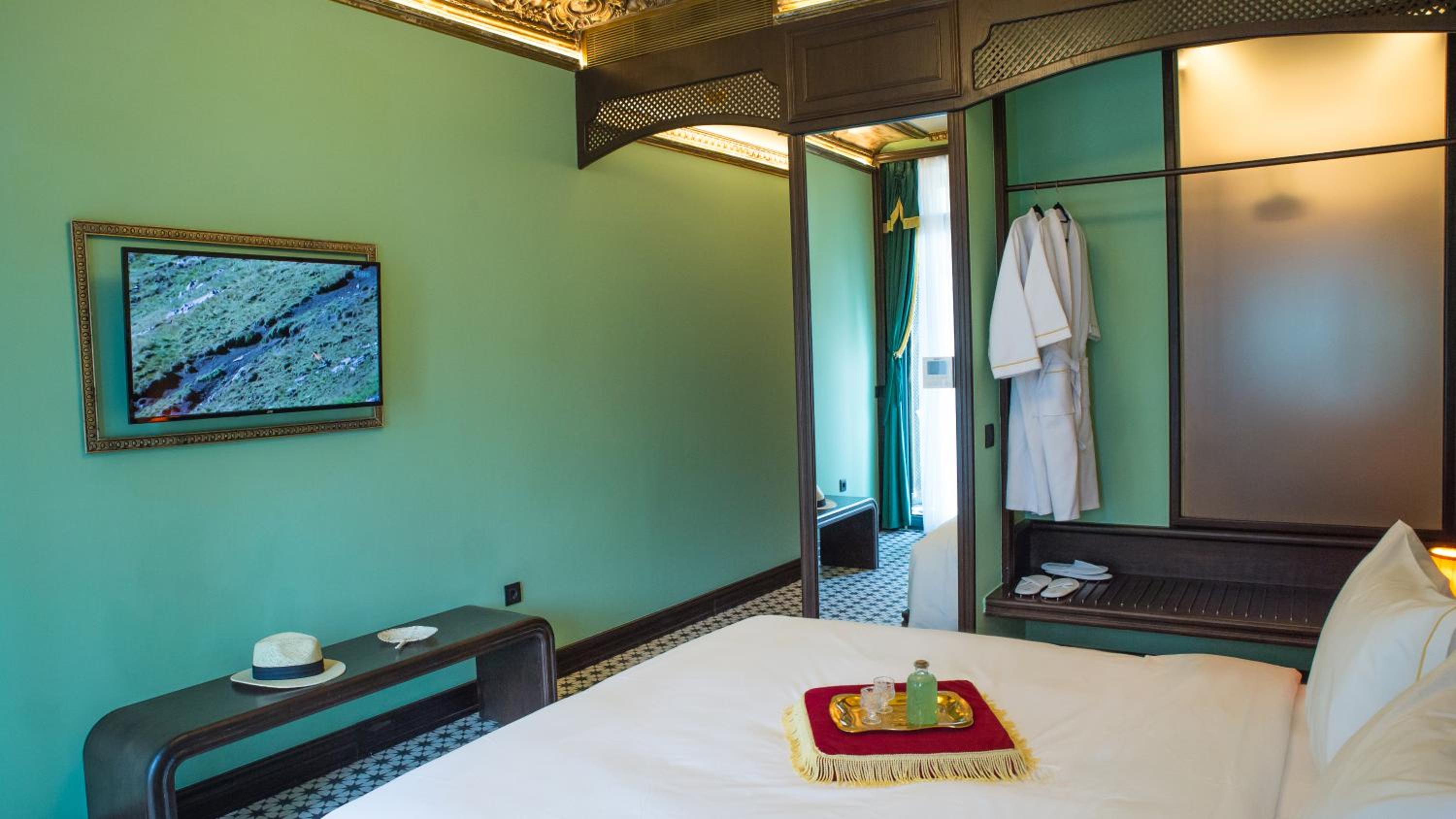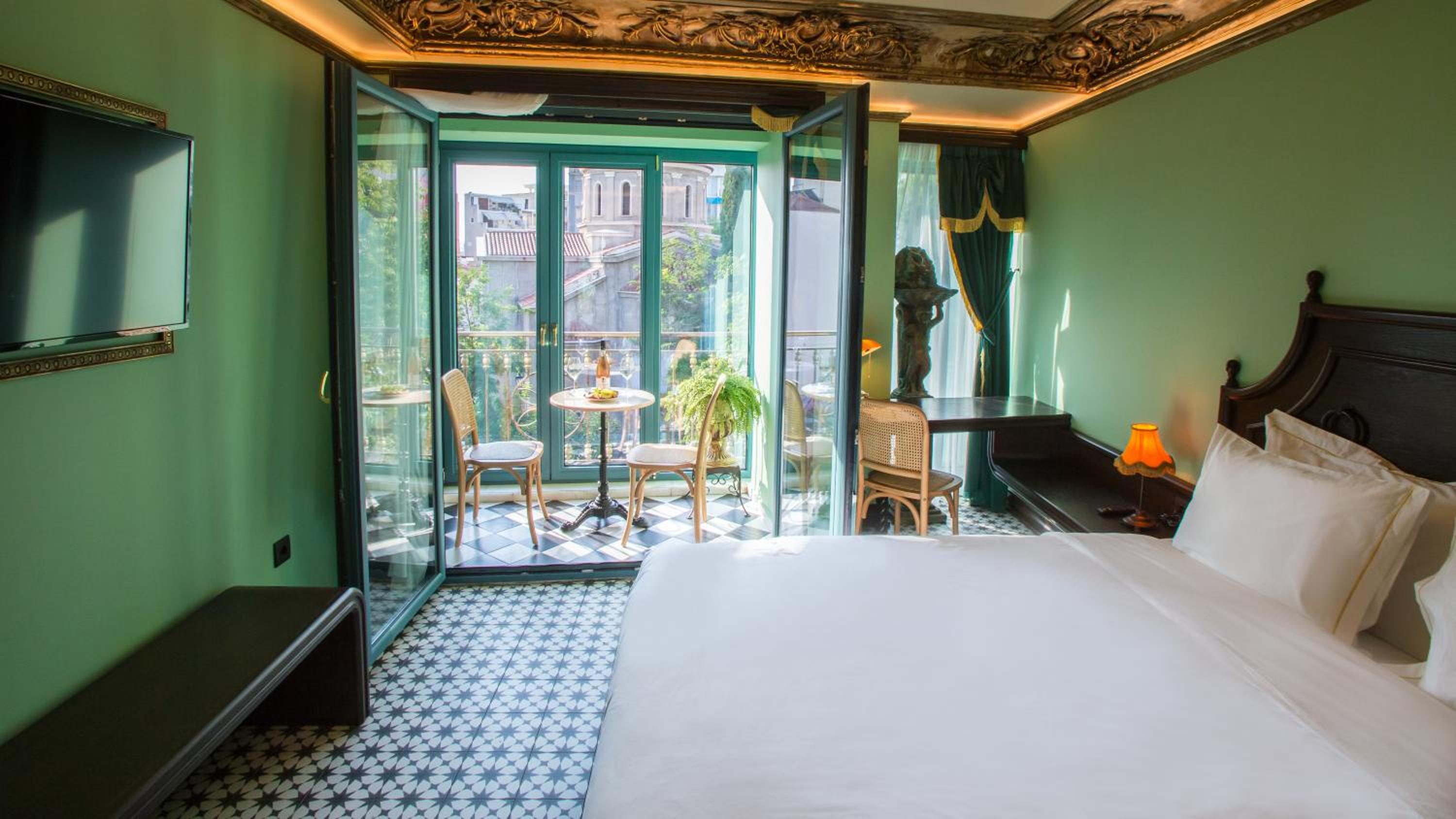 Each air-conditioned room at the hotel is meticulously designed, featuring modern amenities such as a flat-screen TV, minibar, and private bathroom, providing a relaxing sanctuary in the heart of Athens.