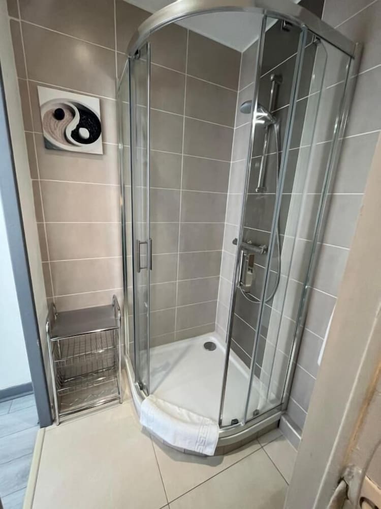 Arrived to a note on the door to call for entry code. Told to pick up key from board and let myself in. No welcome at all. Bathroom small and clean, bedroom just enough space for virtually the bed. Minimal hanging space, 1 hook on some misplaced bookshelf. The interior is drab and grey, badly needs updating. My departure was also faceless. Nobody on reception at most times