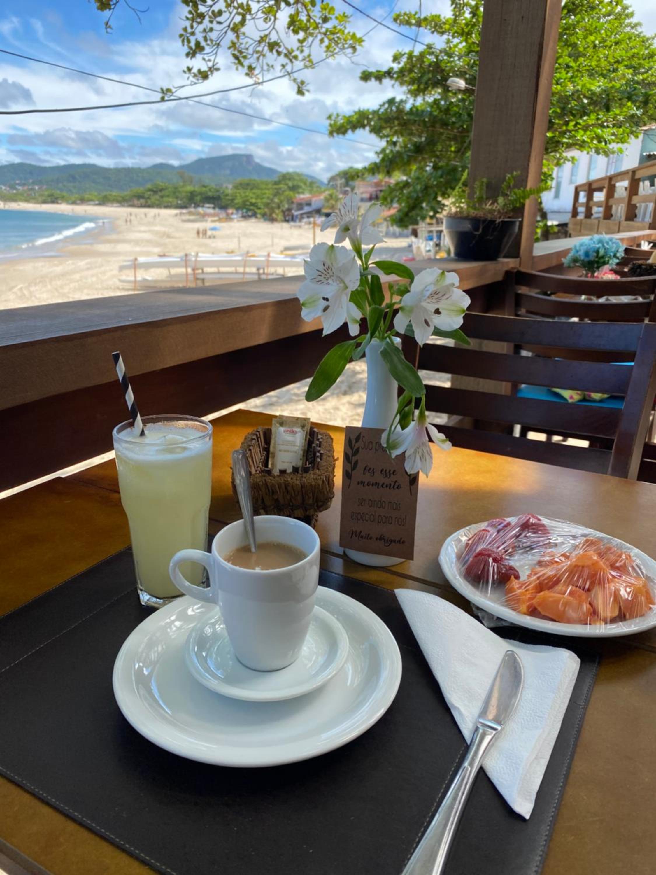 O astral e por ser pé na areia. Um bom café da manhã, justo.