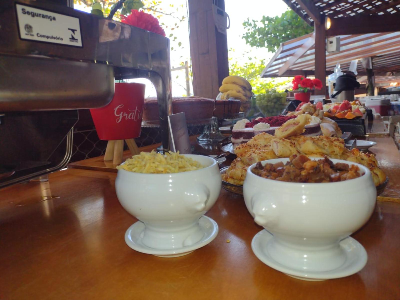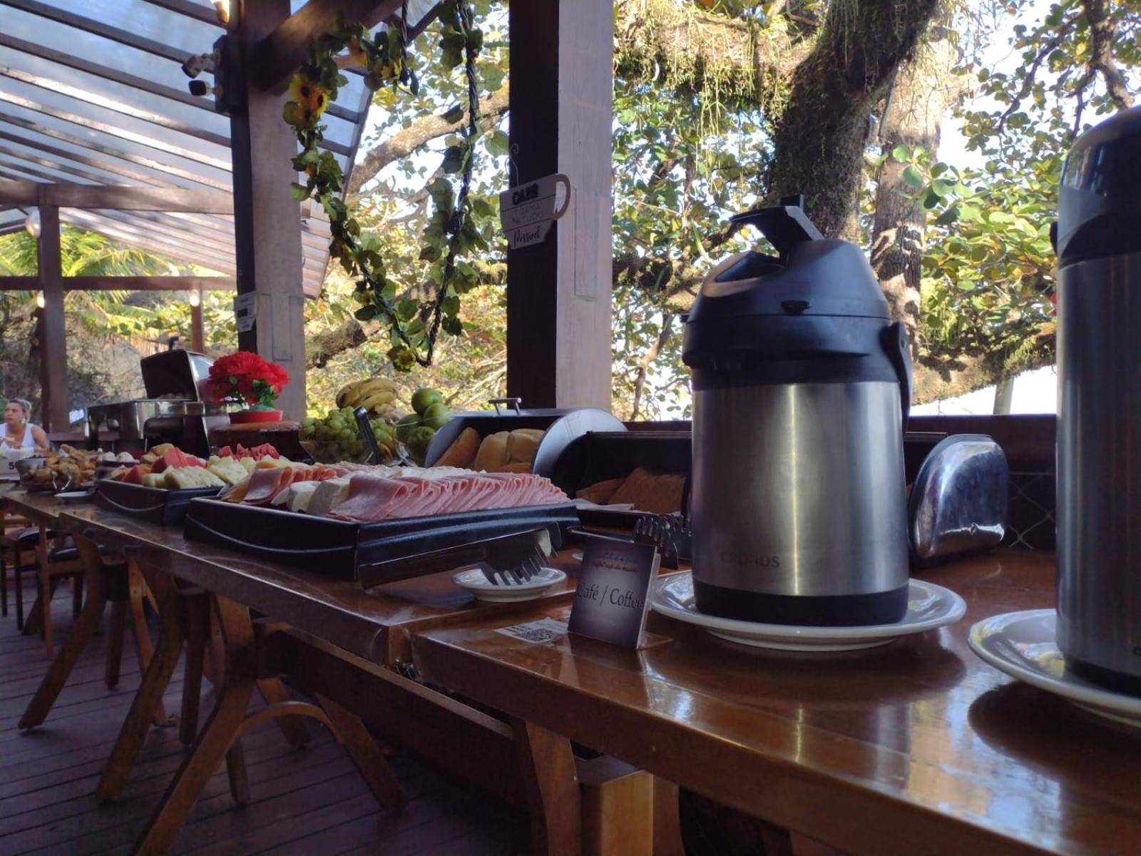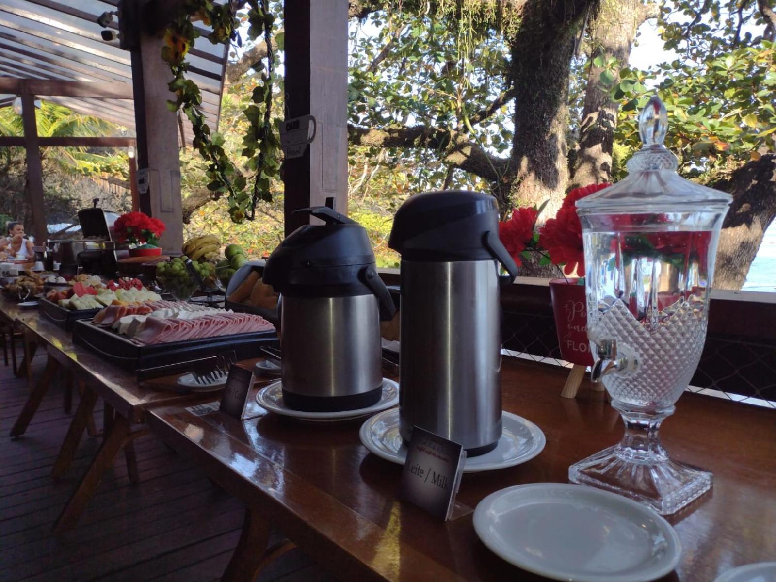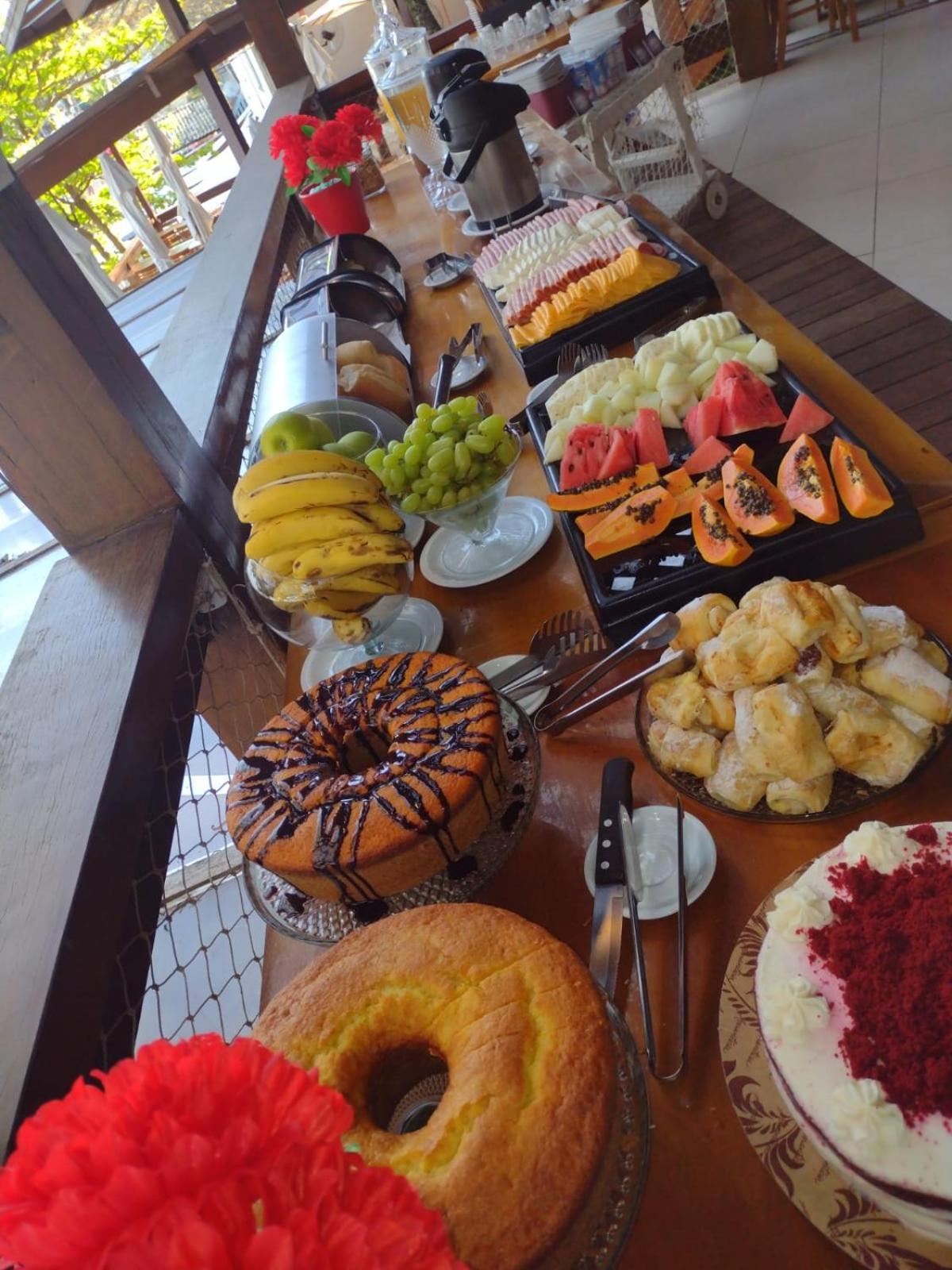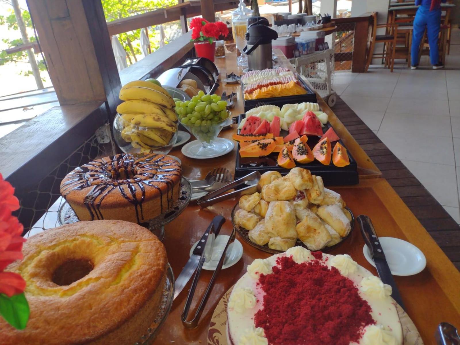 O café da manhã é bem servido. Também é muito agradável a localização pé na areia e ter a comodidade do restaurante ali e também de outros mais próximos. O atendimento é excelente!