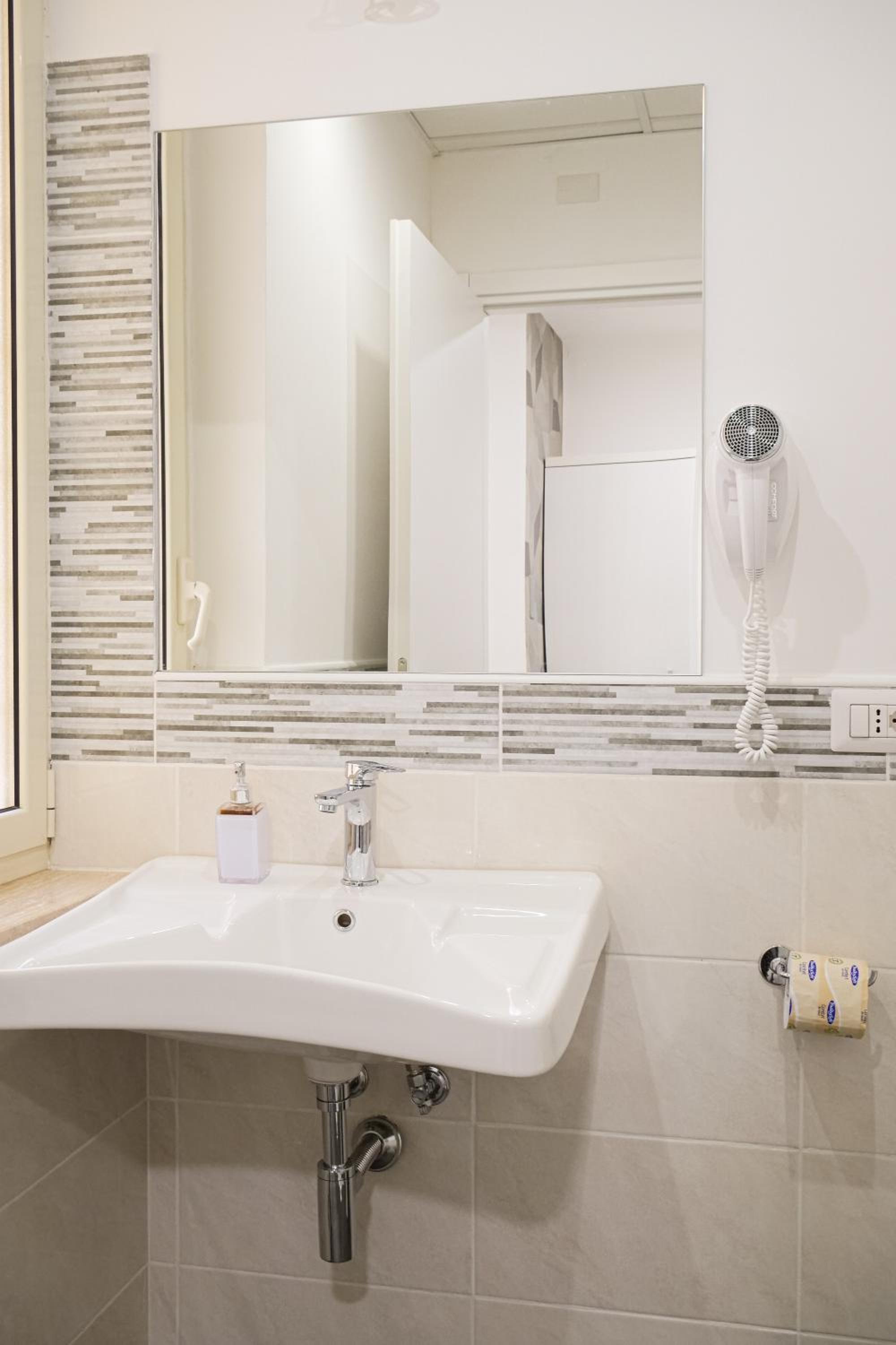 La posizione é super comoda, le stanze sono ampie e pulite, il bagno ha una doccia comoda. Nell'insieme é stata davvero una buona scelta!