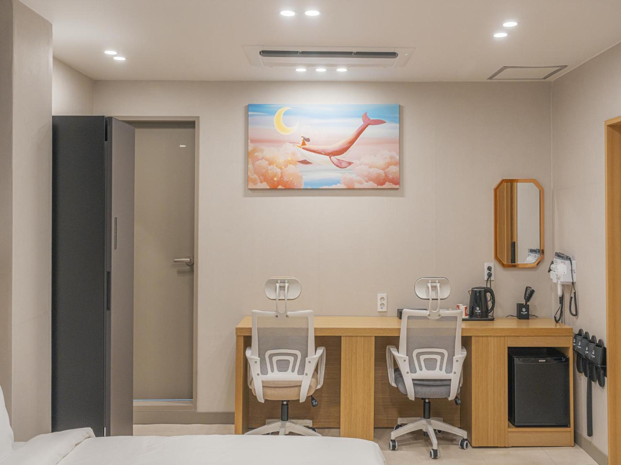 도착했을때 주차공간이 없고 호텔 앞에 협소한 장소에 주차하니깐 차키를 맡겨야 했다. 원래 예약한 방보다 좋은 방이라 주었는데 화장실 화장지도 2번 당기면 없어질 정도로 바꾸지도 않았고 욕조도 없고 물이 잘 안내려가서 역류했다. 방에 컴퓨터도 없고 그냥 여관이 였다. 출장이라 여러 호텔을 다녔는데 5만원 정도 호텔도 여기에 비하면 하이 컬리티이다. 심지여 여기는 6만원이 넘는 금액을 줬는데 너무하다. 다시는 안간다.