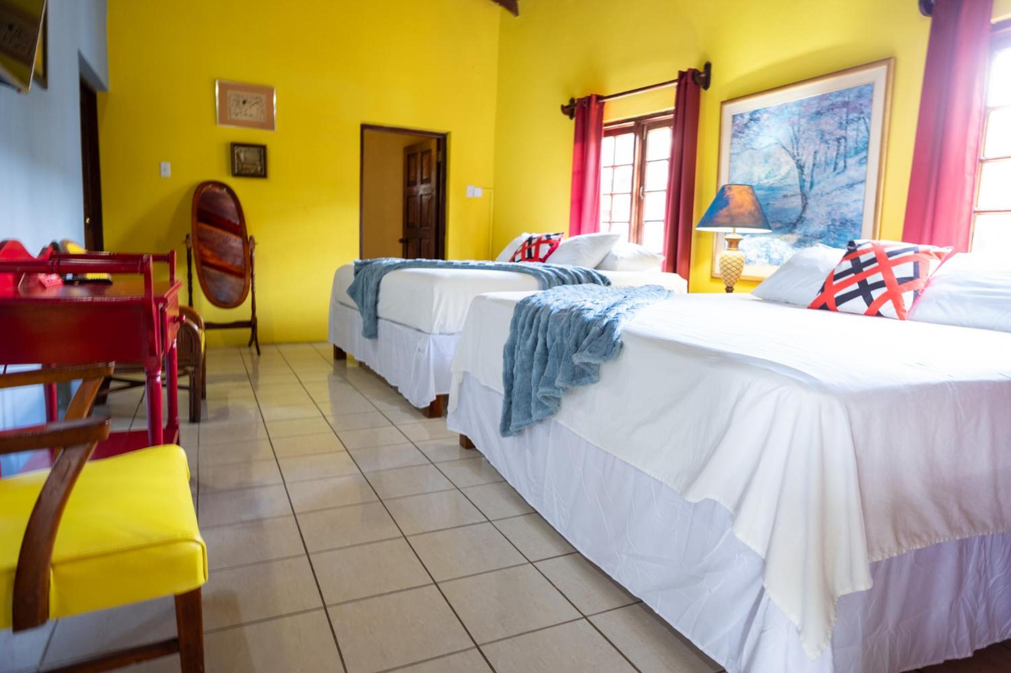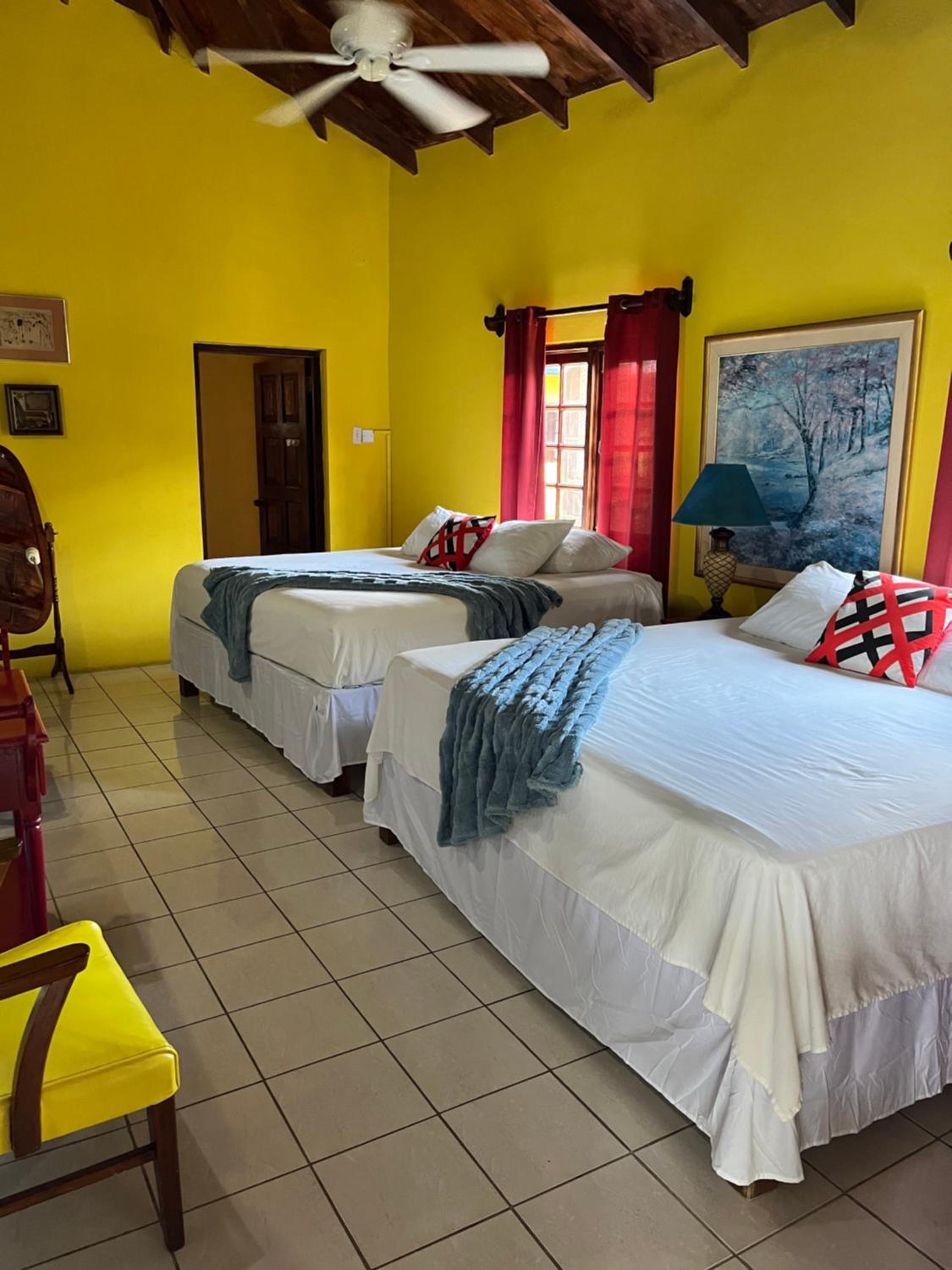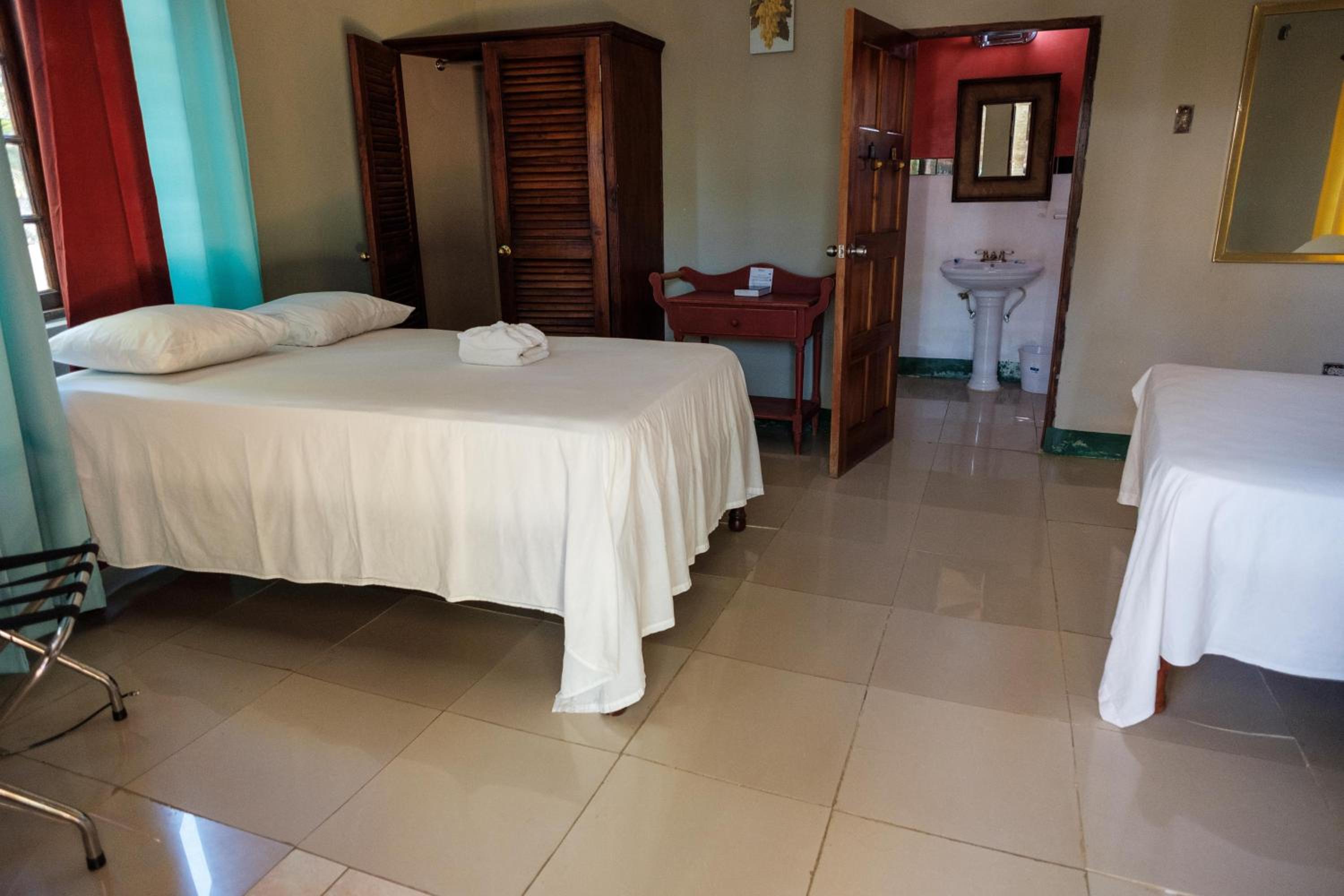 Full kitchen/restaurant and bar on-site. Room very large, king bed and queen bed. Walk in closet and big bathroom. Free mosquito repellent coils. Extremely friendly and helpful staff. Strong wifi with extenders throughout the property.