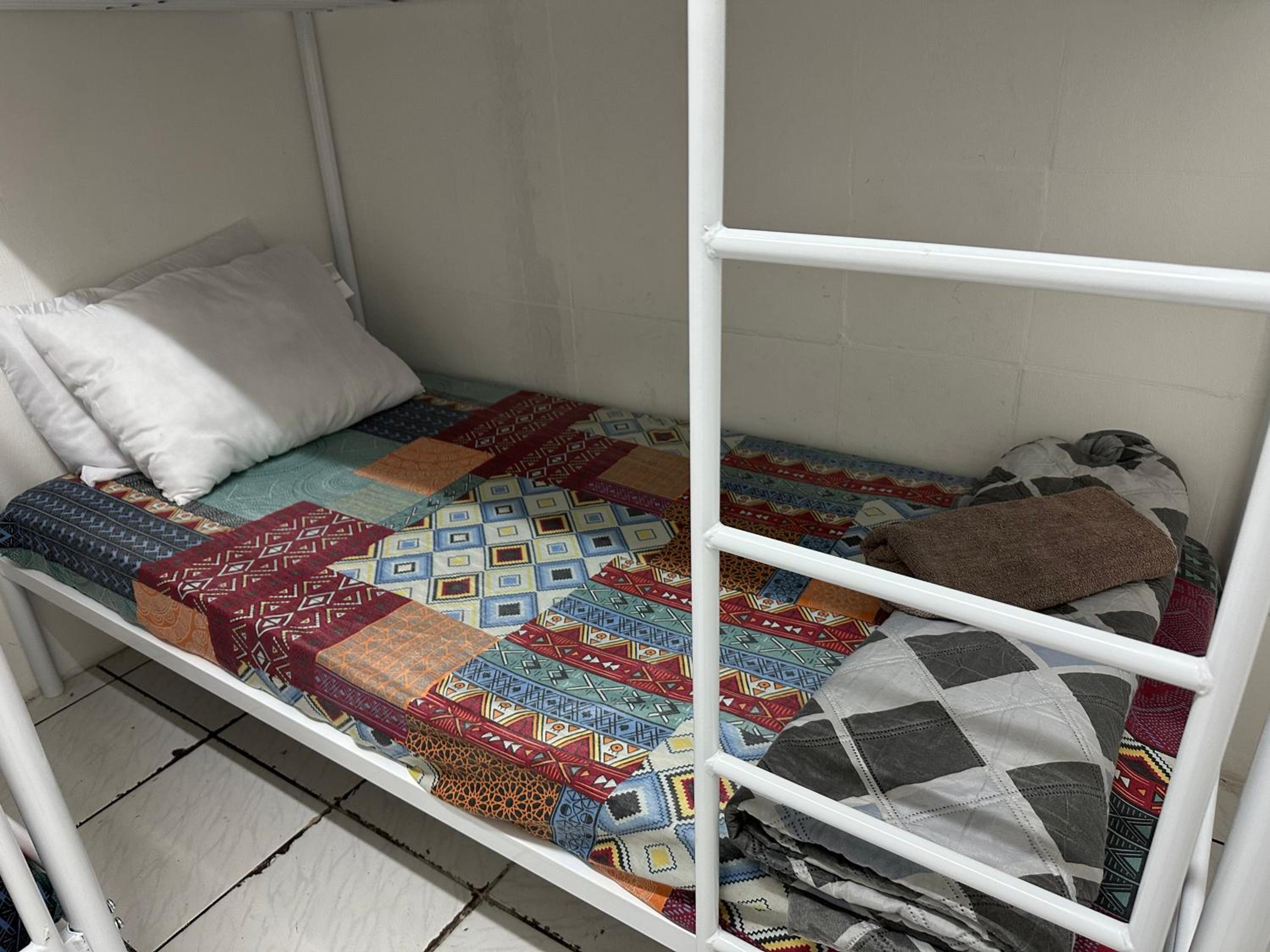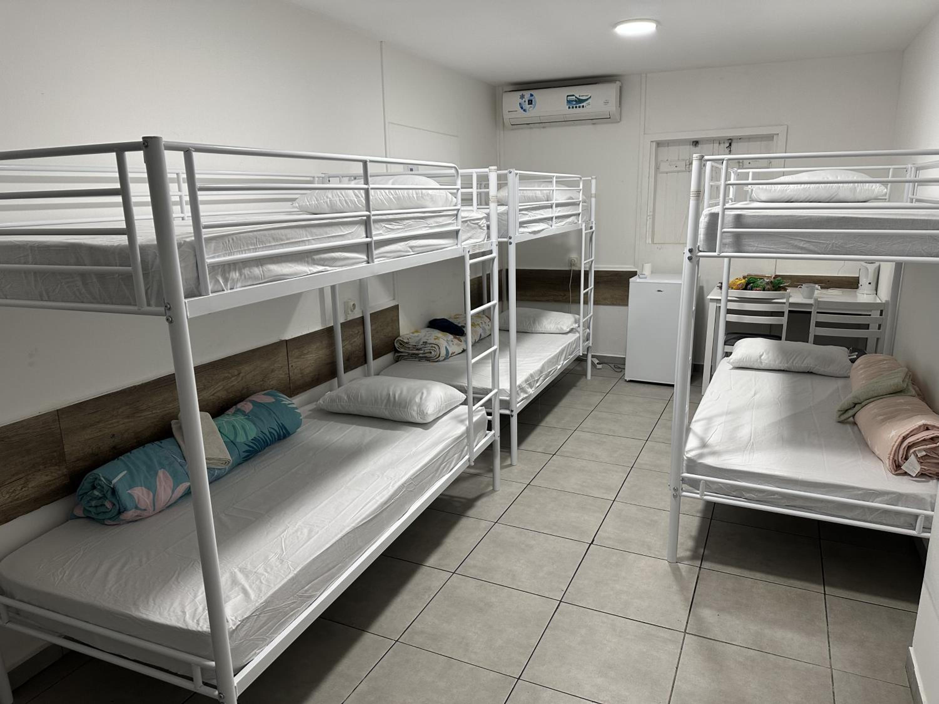 Lors de mon deuxième séjour le dortoir était plein et une odeur désagréable régnait. Pas d'aération avec la climatisation. La salle de bain est plutôt propre. Les lits en métal bougent énormément et à failli se renverser lorsque je suis montée. L'absence de rideau est dommage.