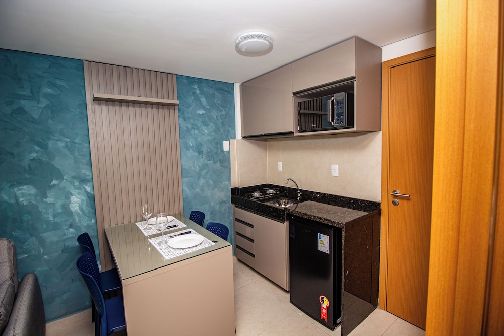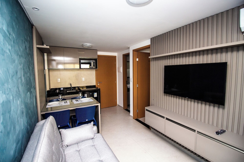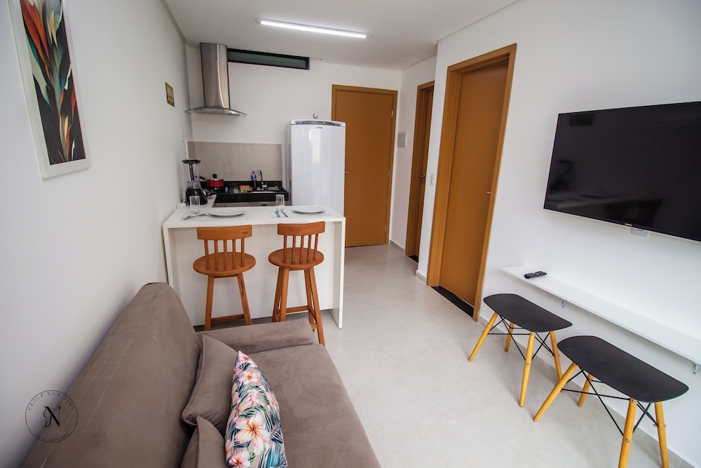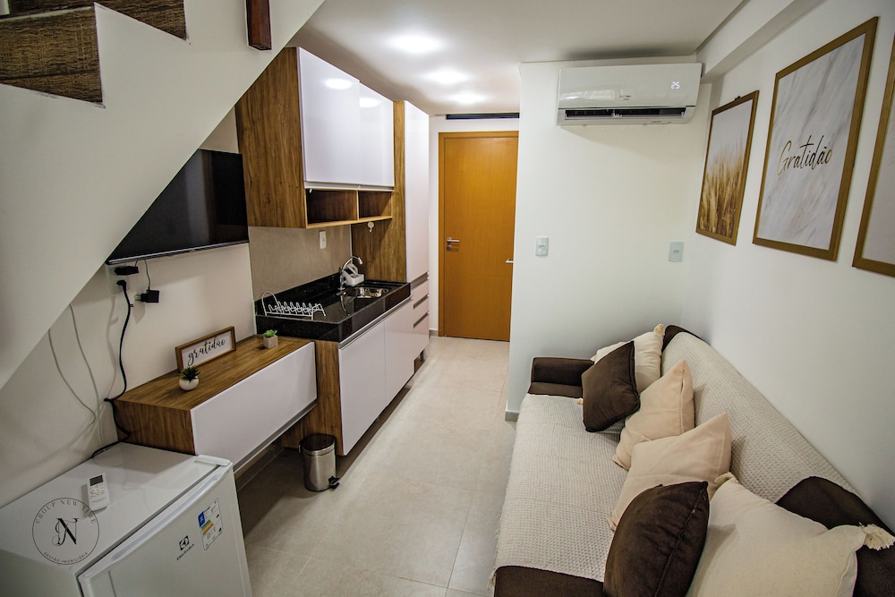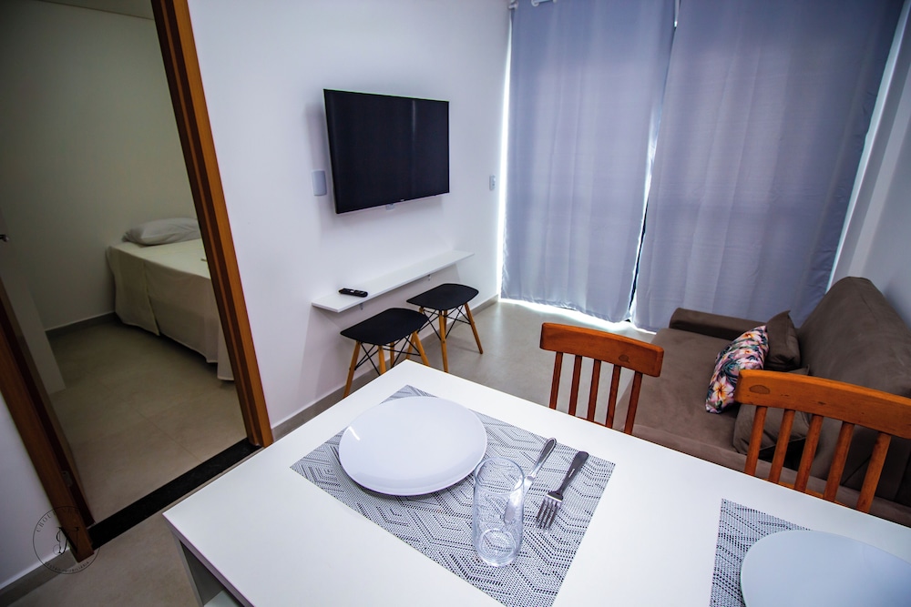 O flat é bem arrumado, tudo novo. O que deixou a desejar foi a água com cheiro de esgoto e o despreparo de funcionários para lhe dar com os hospedes. Do mais foi tudo bem com a estadia.