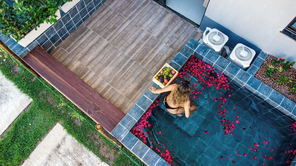Os quartos com piscina privativa deveria ter uma peneira de piscina, pois cai muito lixo e insetos na mesmo, encontrei algumas larvas na piscina.