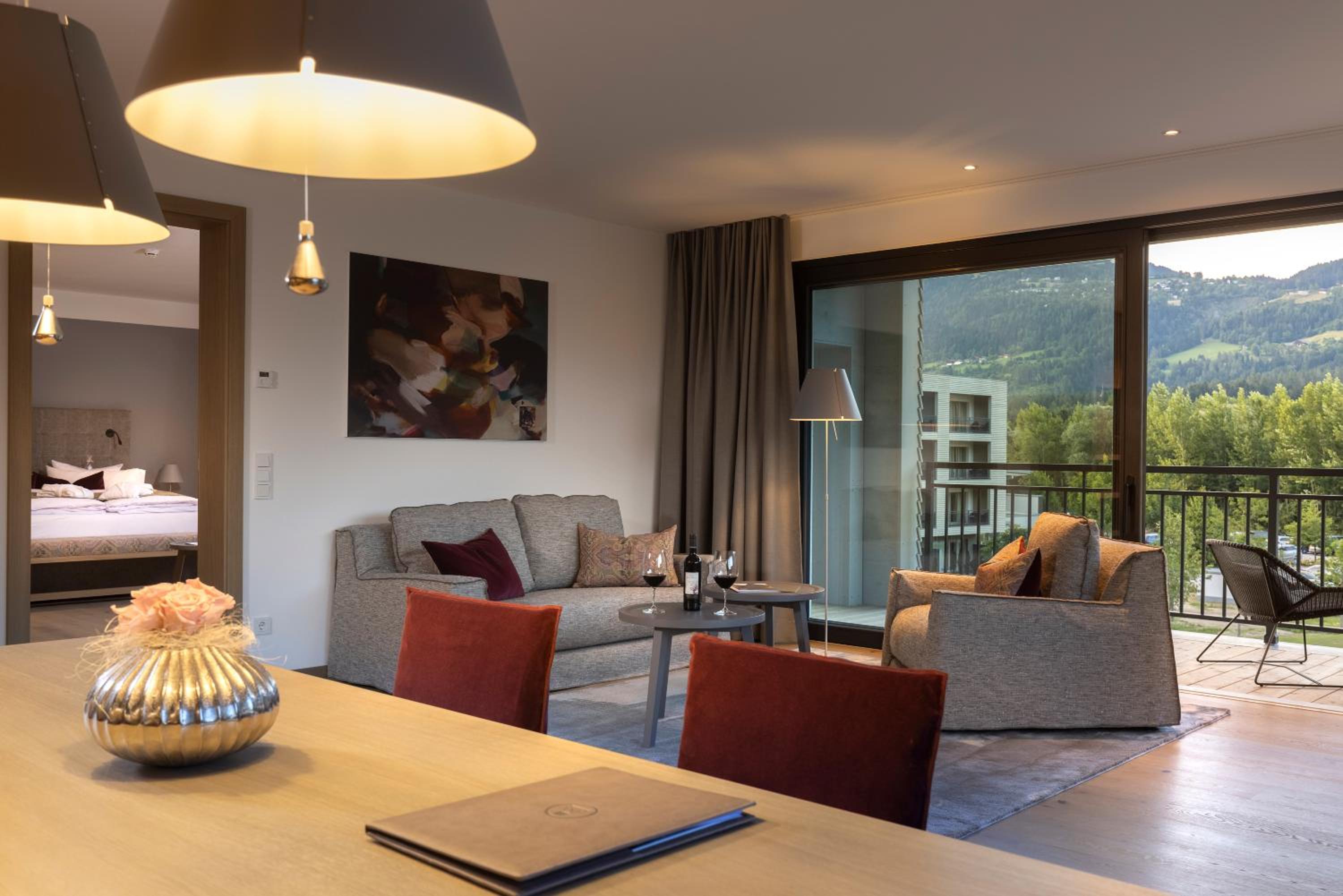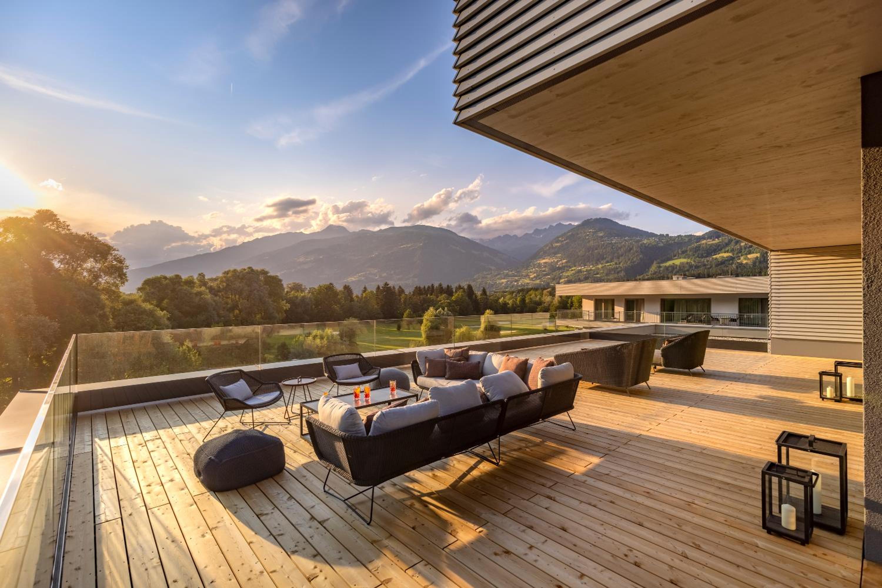 Experience unparalleled luxury at the 5-star Dolomitengolf Suites, nestled amidst the breathtaking Lienz Dolomites. Indulge in spacious suites with Italian design furniture, floor-to-ceiling windows, and modern amenities. Wake up to panoramic views of the golf course or the valley, creating a serene ambiance for your stay.