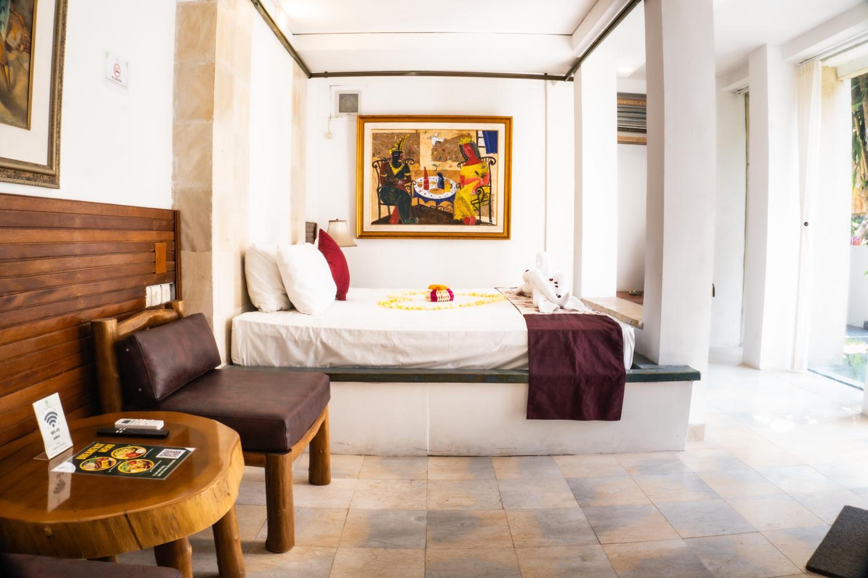 I spent two wonderful weeks at Alam Puri Art Museum and Villas. It is a beautiful and peaceful place where you can truly relax. My room was spacious and comfortable. Meals are always delivered to the room and are very tasty, as there is no restaurant on the property. The staff are very kind and always helpful, which made the stay even more enjoyable. What makes this place extra special are the wooden garden doors that stand open like gateways: you first step through one door onto a platform with art, and then through the next set of doors towards the swimming pool. A unique and atmospheric setting that adds so much to the experience. A place I would happily return to!
