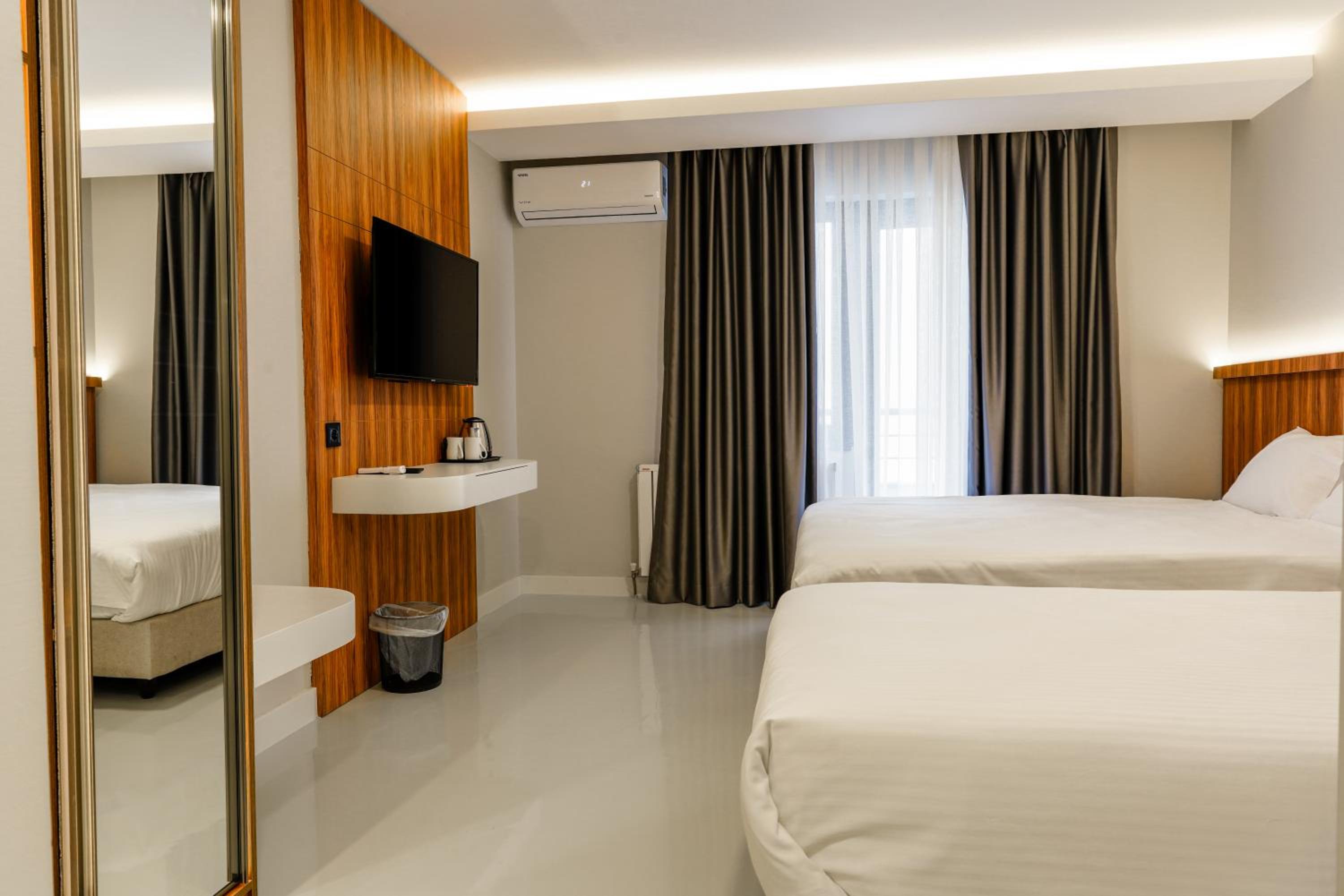 2 çift olarak 2 oda tuttuk. Birimizin odası tuttuğumuz oda değildi, odada yazılan imkanlar yoktu. (Kettle, ayrı oturma alanı vb.) ve fotoğrafta görünenden çok küçüktü. Balkon ve lavabo odanın içindeydi, perdeyle ve camla ayrılmıştı, konfor sıfırdı. Diğer odada ise lağım kokusundan ve gürültüden yakınlarımız uyuyamadılar. Otelin altında bar var gece 12ye kadar ses durmuyor. 1.kattaki odanın zemini sesten titriyordu. Odaları değiştirmek istedik reddettiler. Yalıtım yok yan odadaki sesler direk içerdeydi ve kahvaltı seslerine uyandık. Hayatımızda kaldığımız en kötü oteldi.