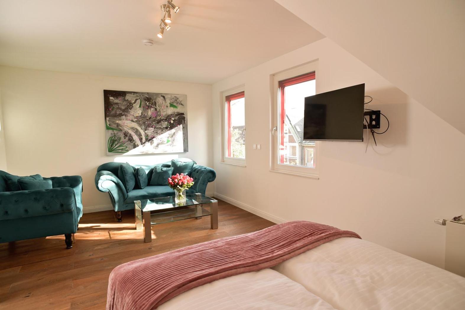Fantastische locatie. Wij kwamen voor de kerstmarkt en deze accommodatie ligt er echt vlakbij. Twee dagen van tevoren hadden we nog gebeld voor een extra bed omdat we met één persoon extra kwamen, en dat was geen enkel probleem. Goede bedden en geen last gehad van geluiden van de kroeg beneden. Daarnaast is het een ruim appartement met twee badkamers en een grote zithoek met tv. Zeker een aanrader!