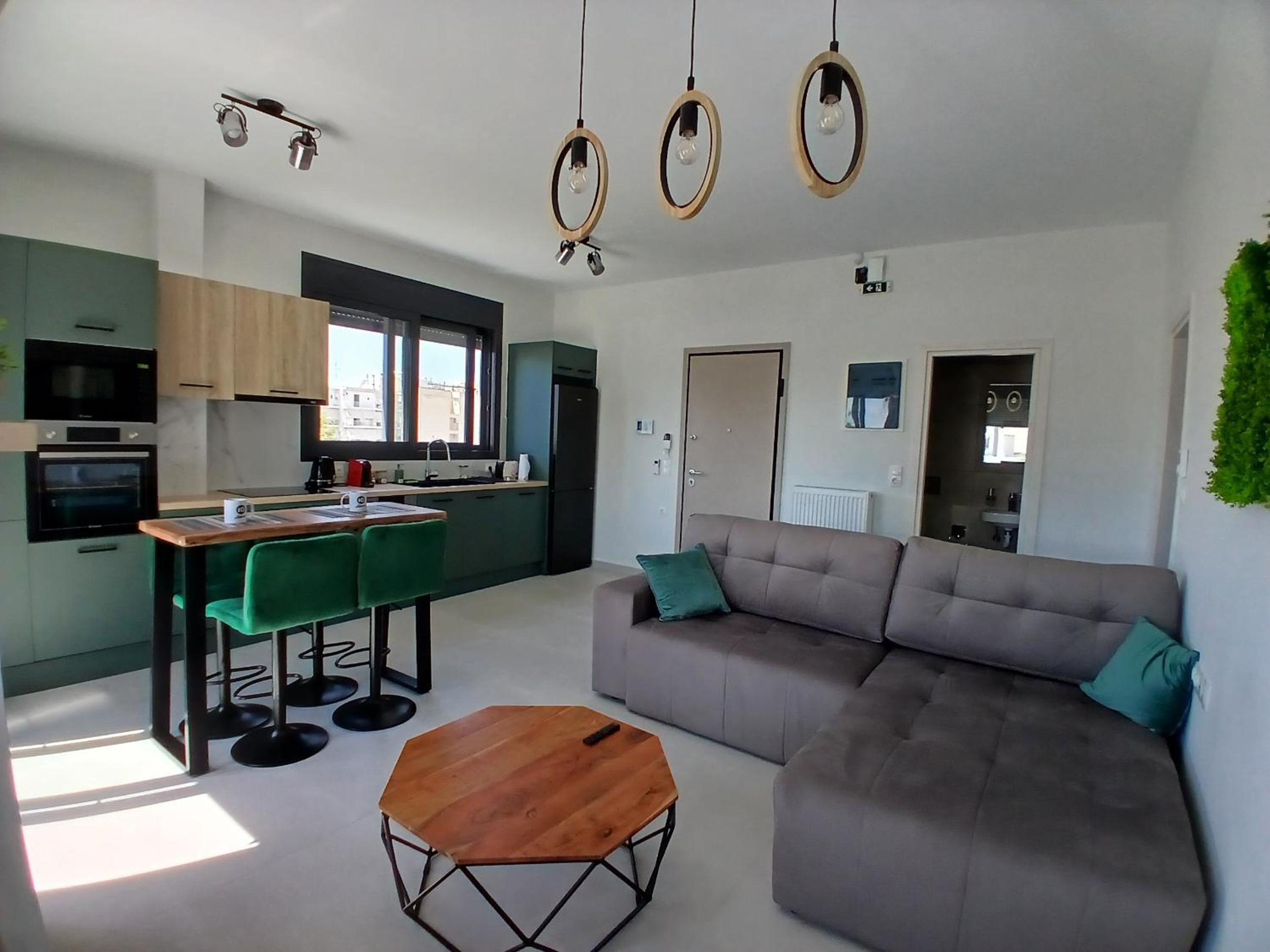 Very good location close to wonderful Niarchos center and park but also easy to access Akropolis/central Athens and the Riviera. Everything is brand new and comfortable. Parking spots an extra bonus. All in all, very pleasant stay