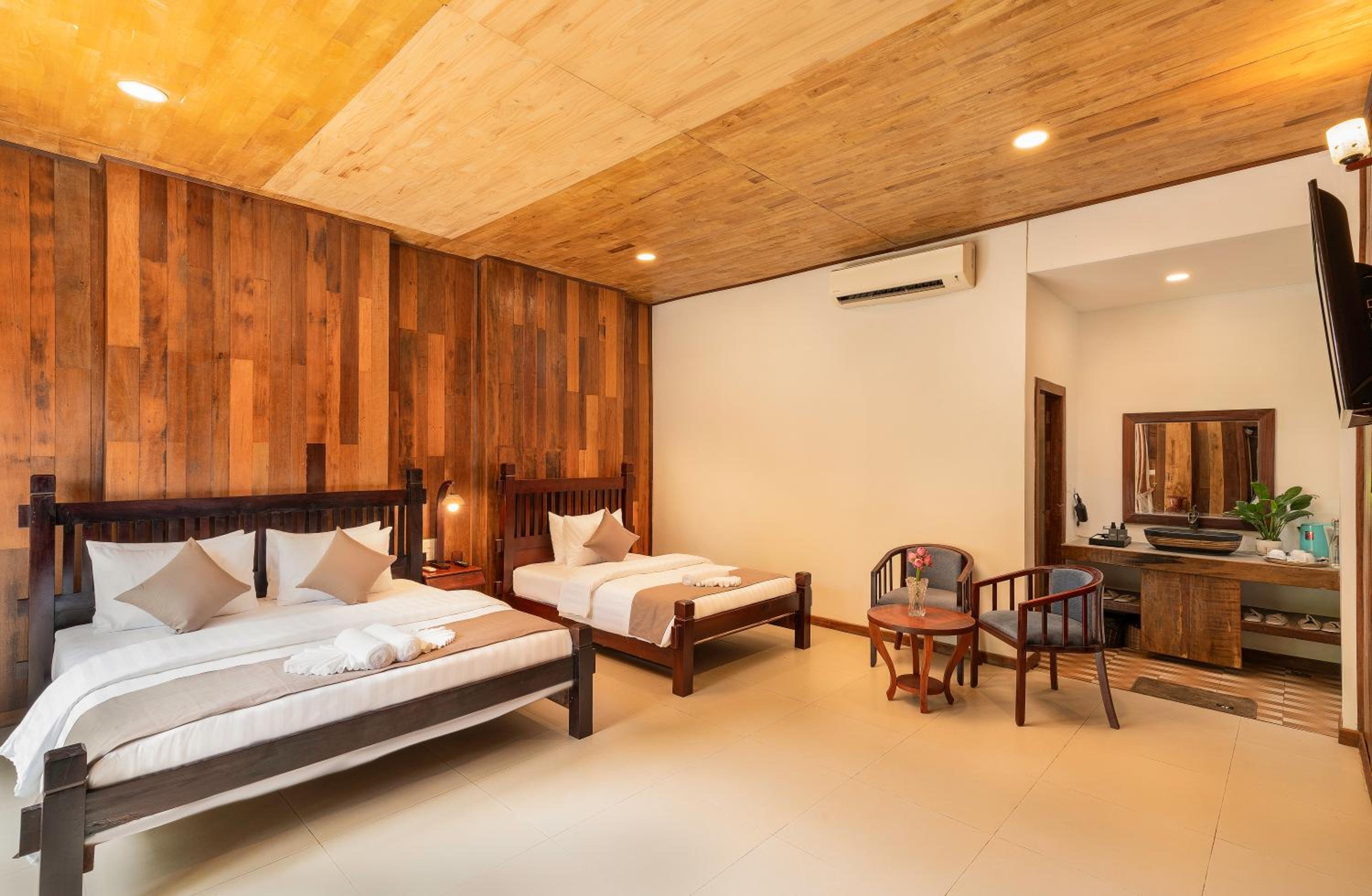 We spend a whole week here and it was incredible. The place is a renovated khmer house, super cosy, clean and comfortable. The room had everything you need, from a comfy bed, aircon, good nice linen, fridge. There is a shared kitchen and from time to time, the staff shared with us cake or some food. Free laundry as well. On top, the couple taking care of this accommodation, Ben and Sihui spend their free time building water pumps and helping with the development of local communities.
