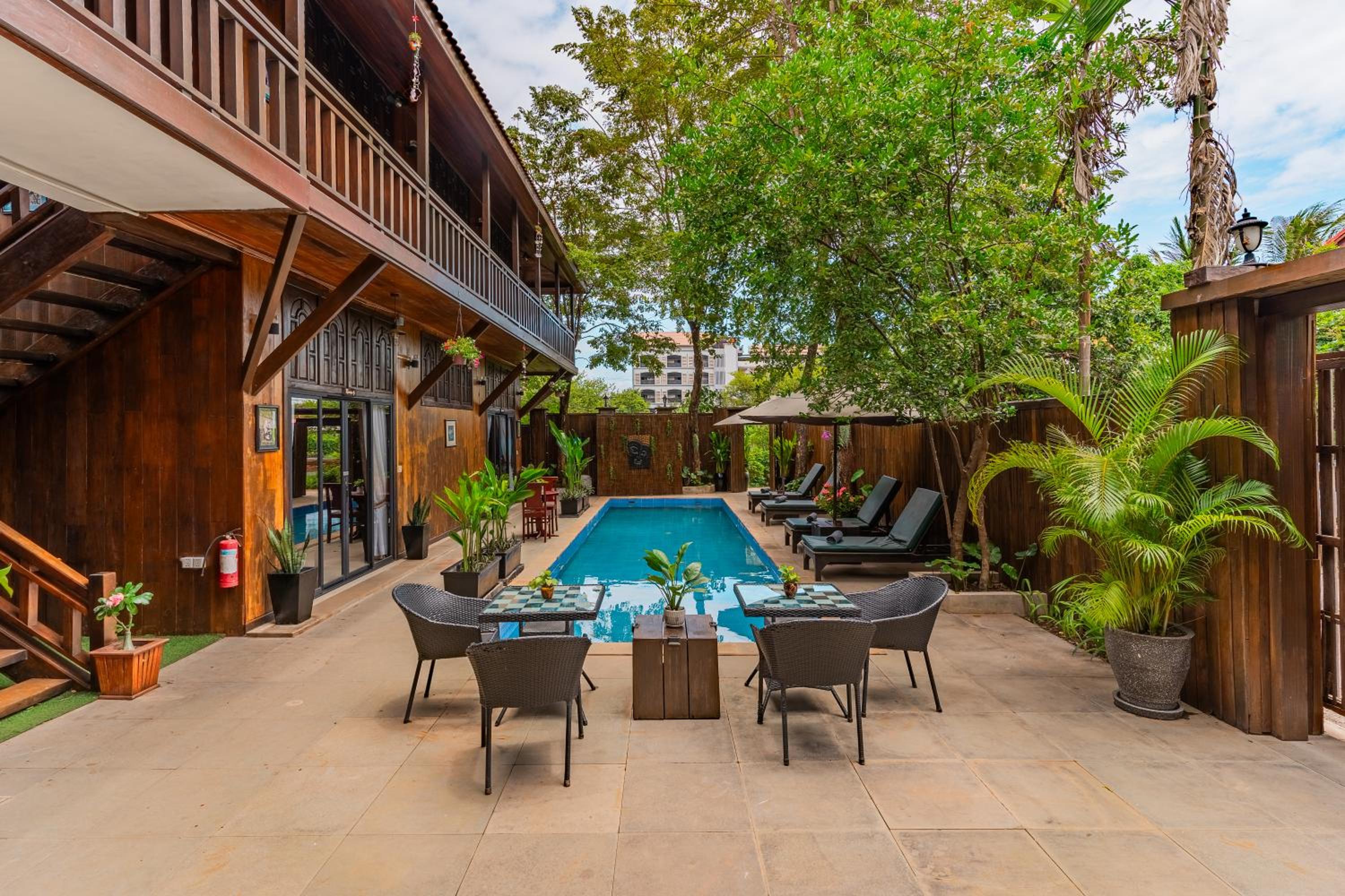 Quiet place, beautiful garden with the pool. Room is comfortable. The staff is helpful.