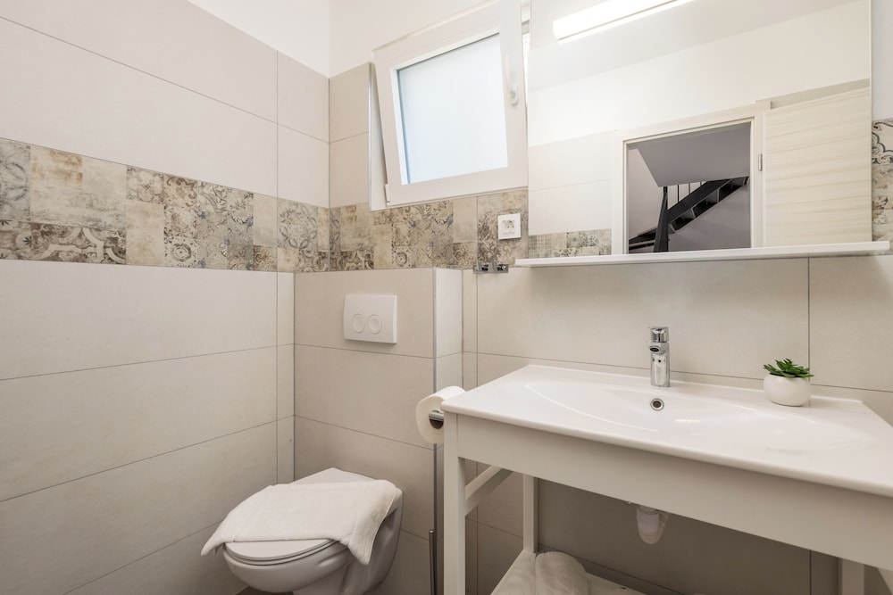 Pretty new ~70m2 house with 2 bedrooms and toilets 50m from Adrian sea. Good value with 100€/night for 4 people. April is offseason and most of the services were not open.