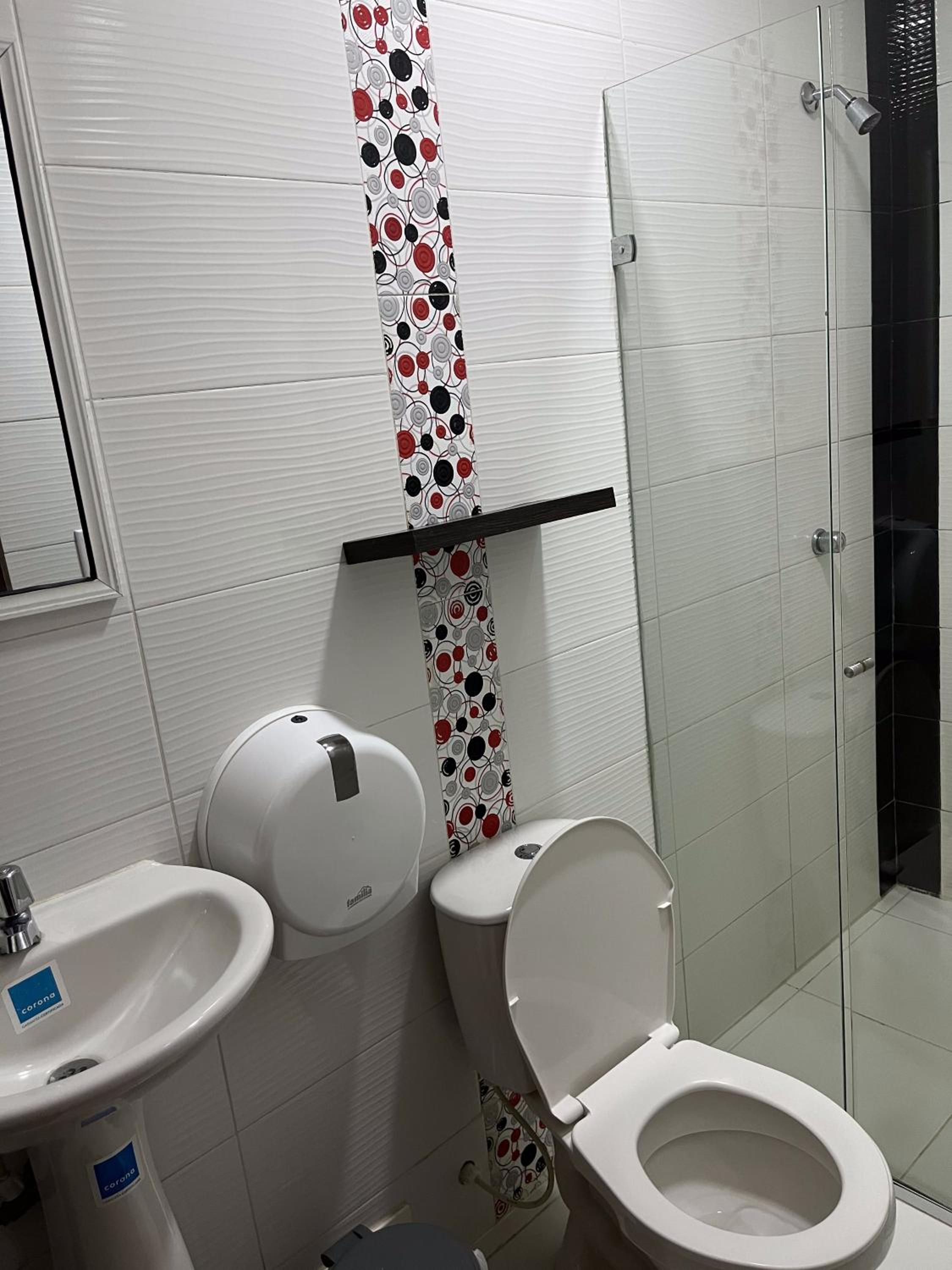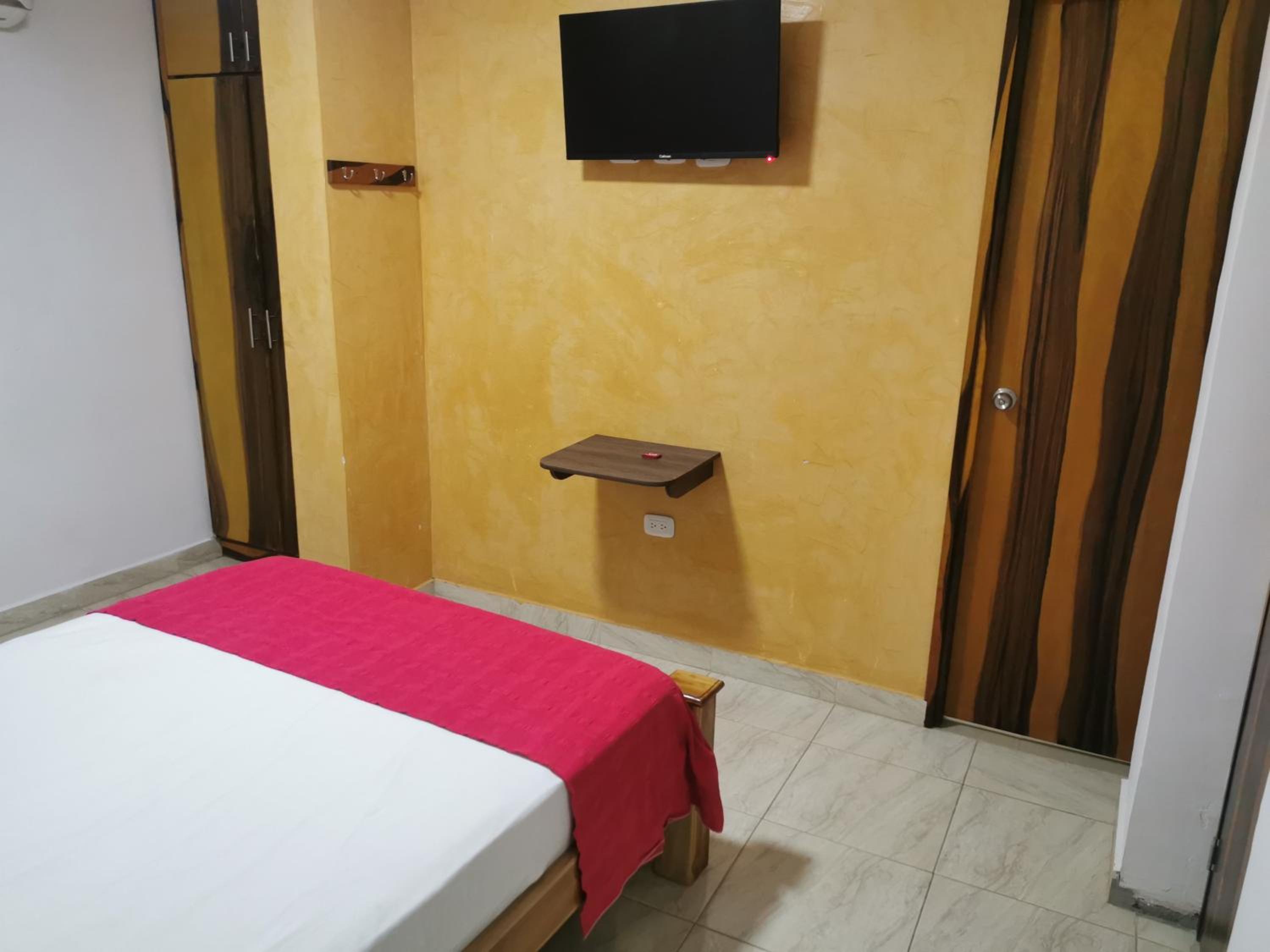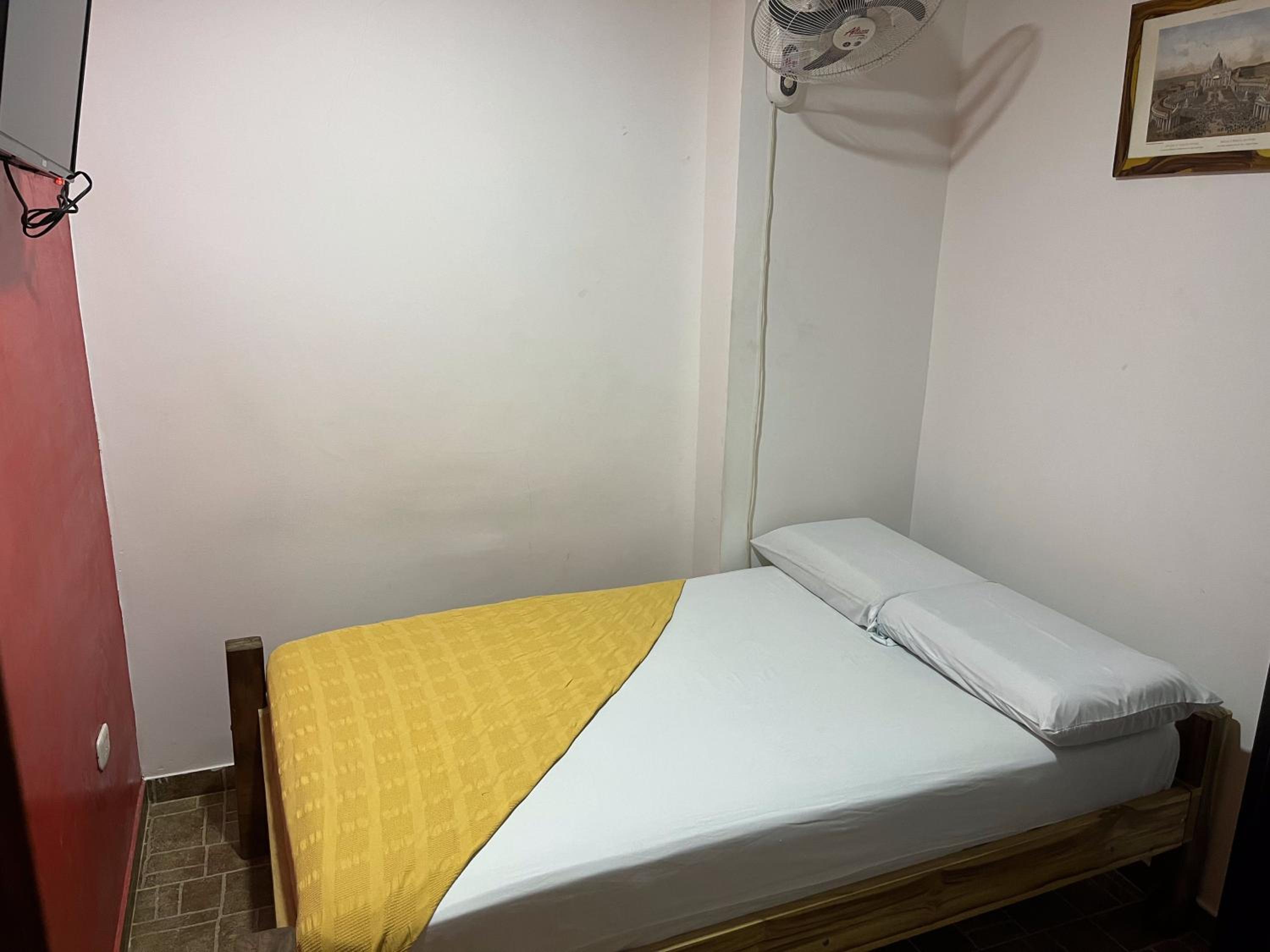 Había tv pero con mala ubicación, llegaba casi al techo y la cama esta al lado del tv, el tv no está enfrente d ela cama sino aun lado y pegado casi al techo, el baño pequeño y la letrina muy bajita, la ropa de cama deteriorada. Las toallas viejas y además que había una construcción, demoliendo un puente al frente del hotel , fue extremadamente ruidoso