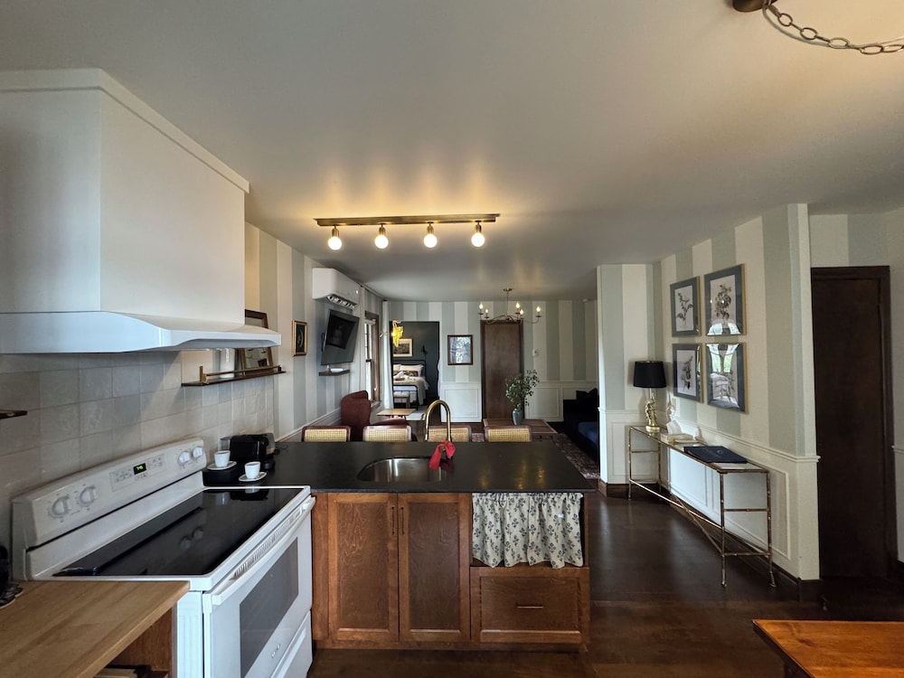 L’endroit est magnifique, mais malheureusement la propreté de ma chambre ( la plus grande suite) en plus sale salle de bain douche sale , four micro-ondes pas lavé, toast dans le four, draps pas changé, poils dans le lit 5 et plus et gérante aucun intérêt ce que dit le client et j’ai payé plus 800$ pour une nuit et me faire dire que je mentais quand avant j’ai régler la note et après je lui ai dit la condition de ma suite et elle fesait que laver son comptoir et me contredire, un gros zéro, et je n’ai rien demandé de dédommagement en plus.