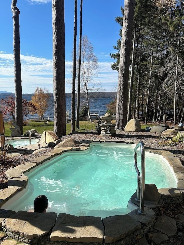 Spa de toute beauté, petit et intime, avec vue sur le lac.