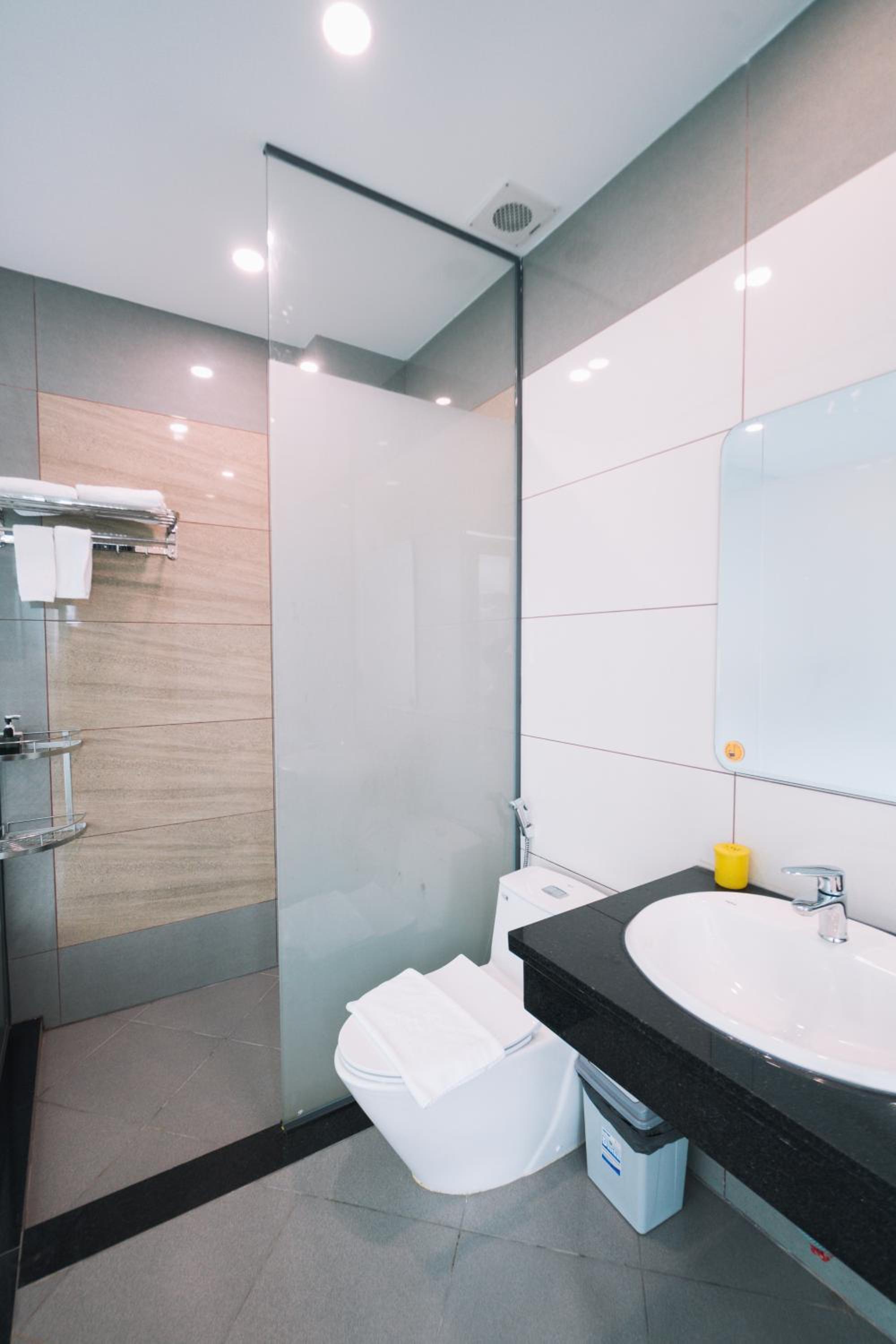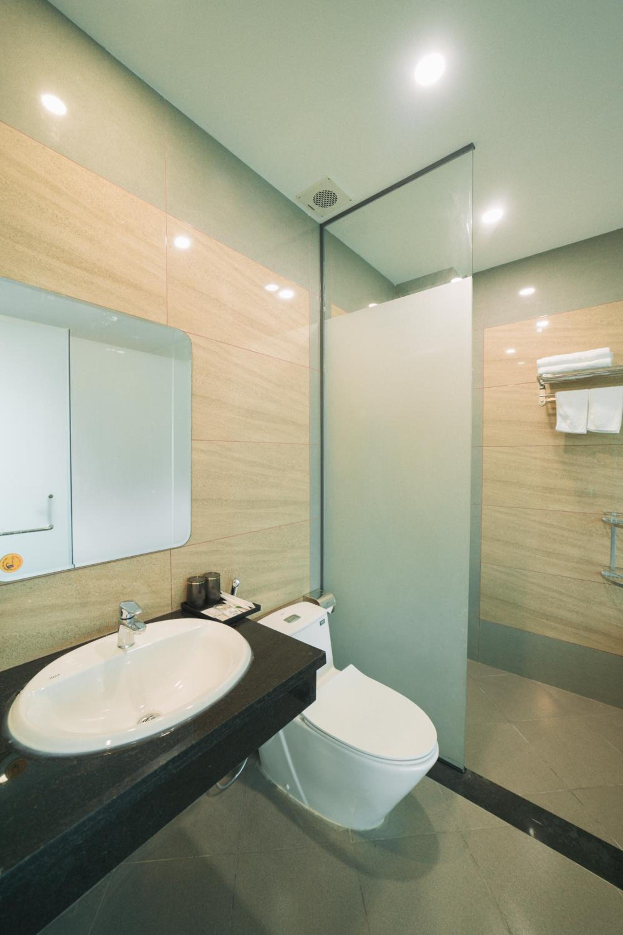 Each room at Greenview City Hotel is well-equipped with essential amenities such as a desk, TV, and private bathroom to ensure a comfortable stay for guests.