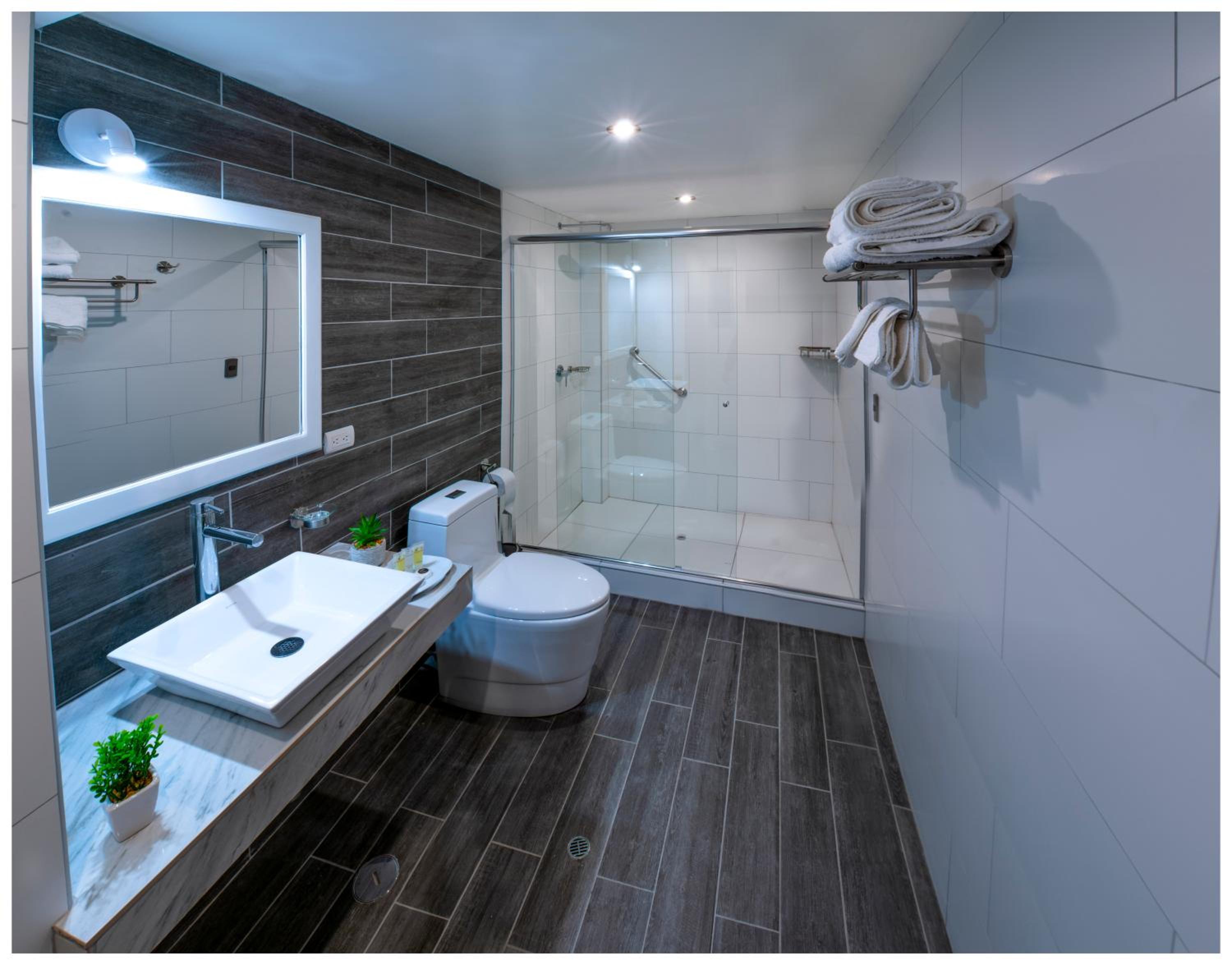 Modern, clean, unlimited hot water under high pressure, great complimentary breakfast, friendly courteous staff.