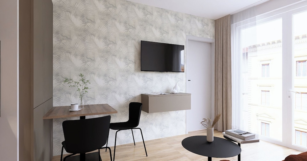 Brera Apartments are a brandnew property. There is still some construction going on, but the bother is negligable and the property is clean and well maintained. The staff is friendly and helpful. Although you do get checked in through a link in an email. The rooms are clean and comparable to hotel rooms in the USA. My room had a queen sized bed, kitchenette with refrigerator Nespresso coffee maker and a water cooker. There were also plates and utensils for two persons. It had a large smart tv that allowed you to connect to local and cable channels. Around the hotel are numerous shopping, dining and entertainment opportunities all within walking distance. The are shopping centers around the hotel. The train and bus stations are within 5 minutes walking distance. There are several parking garages by the hotel. The 24 hr parking fee that I paid was €7.50. I would rent there again.