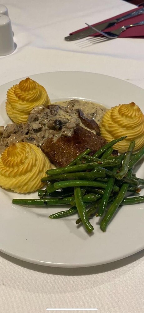 Our room was very good. Recently refurbished. Small carpark. Staff were all helpful and welcoming. Evening meals poor.